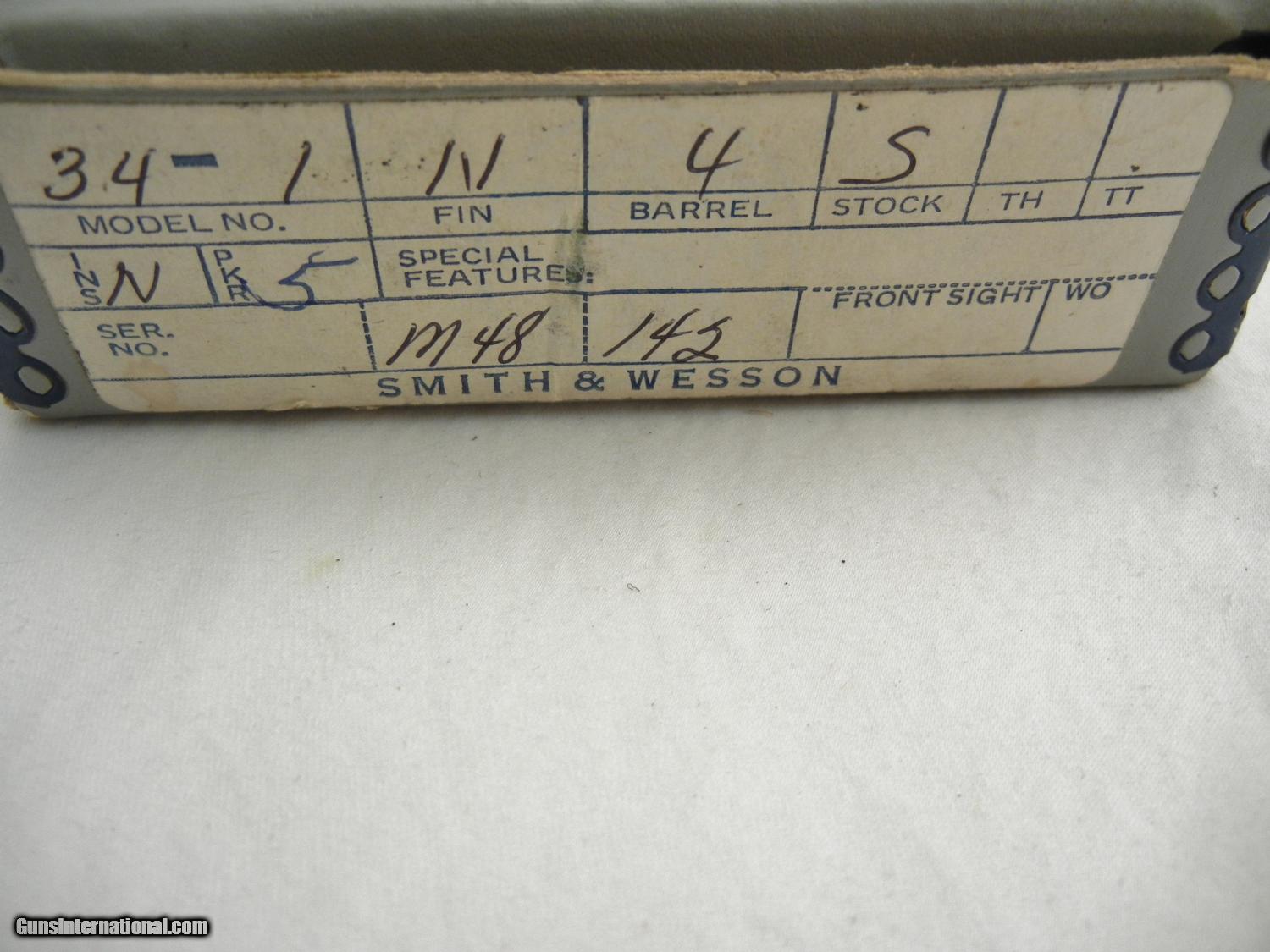 Description: This is a Smith Wesson 34-1 22 with a 4 inch barrel. This gun is 100% new in the box. Serial # is M48xxx. Buyer pays 35.00 shipping. Thank you. 33-16-5 SOLD |