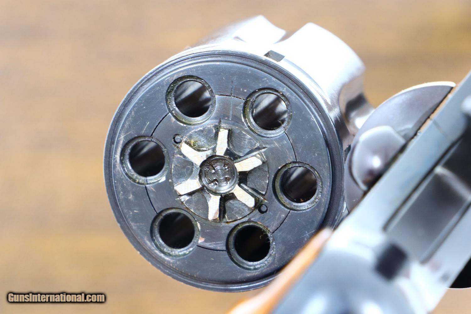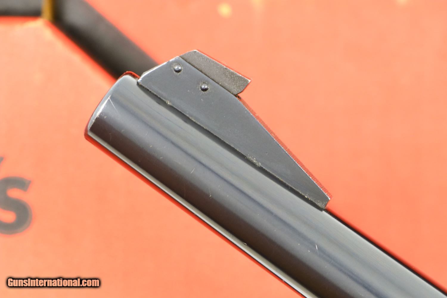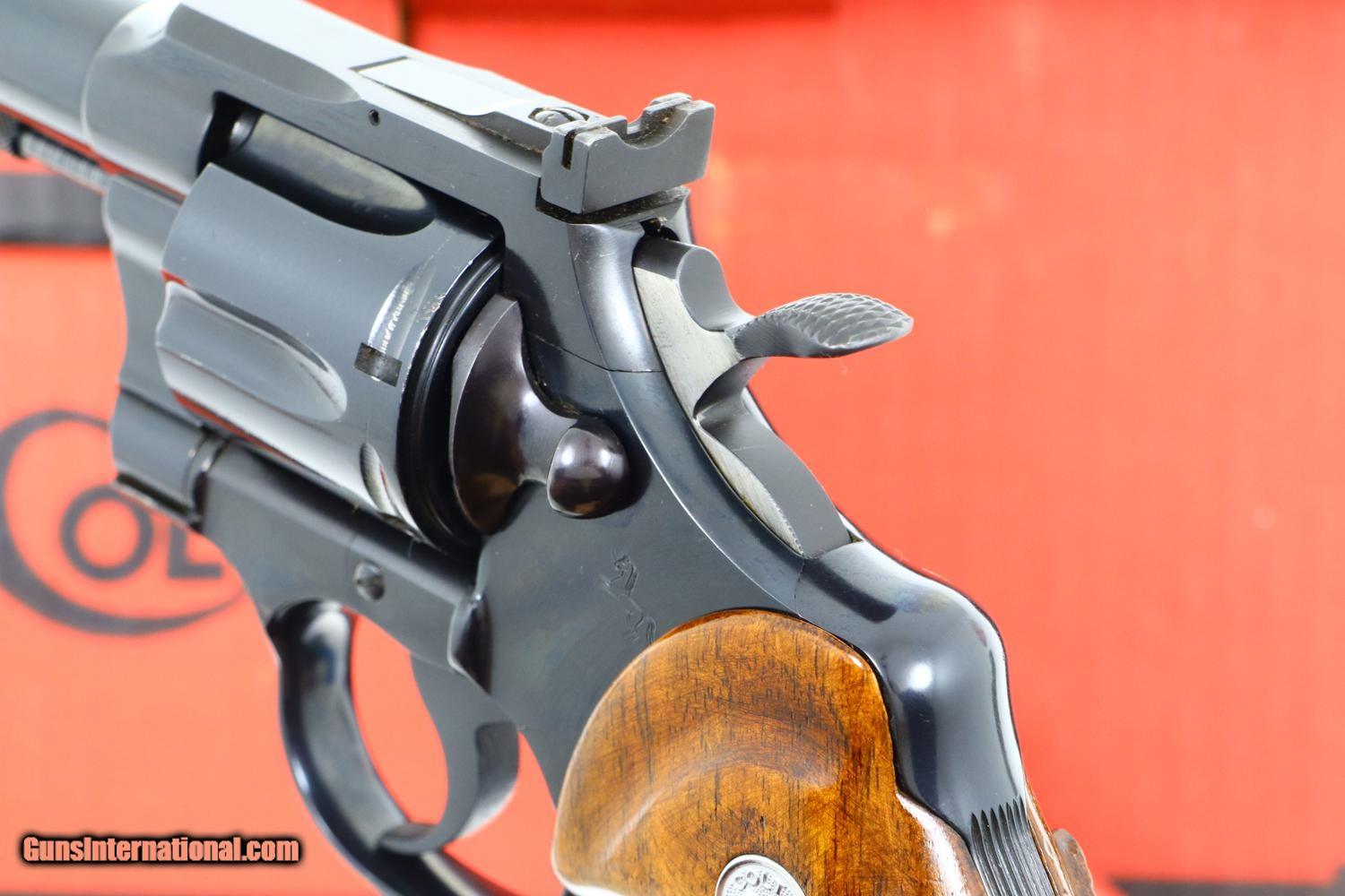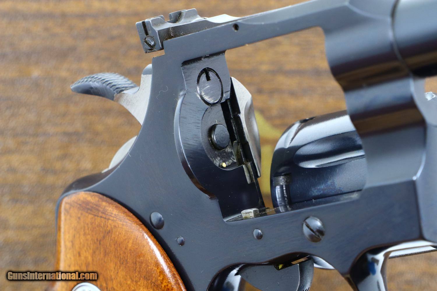 Description: Synopsis: Beautiful Colt, Officers Model Match, .22 LR Revolver, Boxed, 88778, FB00995 Description: Classic Colt Officers Model Match .22 LR Revolver, 6 shot, with 6” barrel having ramped patridge front sight and fully adjustable rear sight. Usual model and caliber marking on left side of barrel. Rampant Colt on sideplate. Colt address on right side of barrel. Matching SN on crane and frame. Semi beavertail hammer, grooved trigger, and full target grip with silvered Colt medallions. Complete in two piece woodgrain box with gold Colt name on top. End label has been removed. White wax penciled “936812” on bottom. No literature. Condition: Exc with crisp original salt blue. Sides of hammer nicely polished without oxidation. Grip with scattered light handling marks. Mirror bore. Perfect manual mechanics. VG box missing label with base wax penciled to a different revolver. No Literature. ~~Insured shipping fee of $55; most packages shipped using FedEx 2nd Day.~~ SOLD Manufacturer: Colt Serial Number: 88778 Caliber Info: 0.22 |
