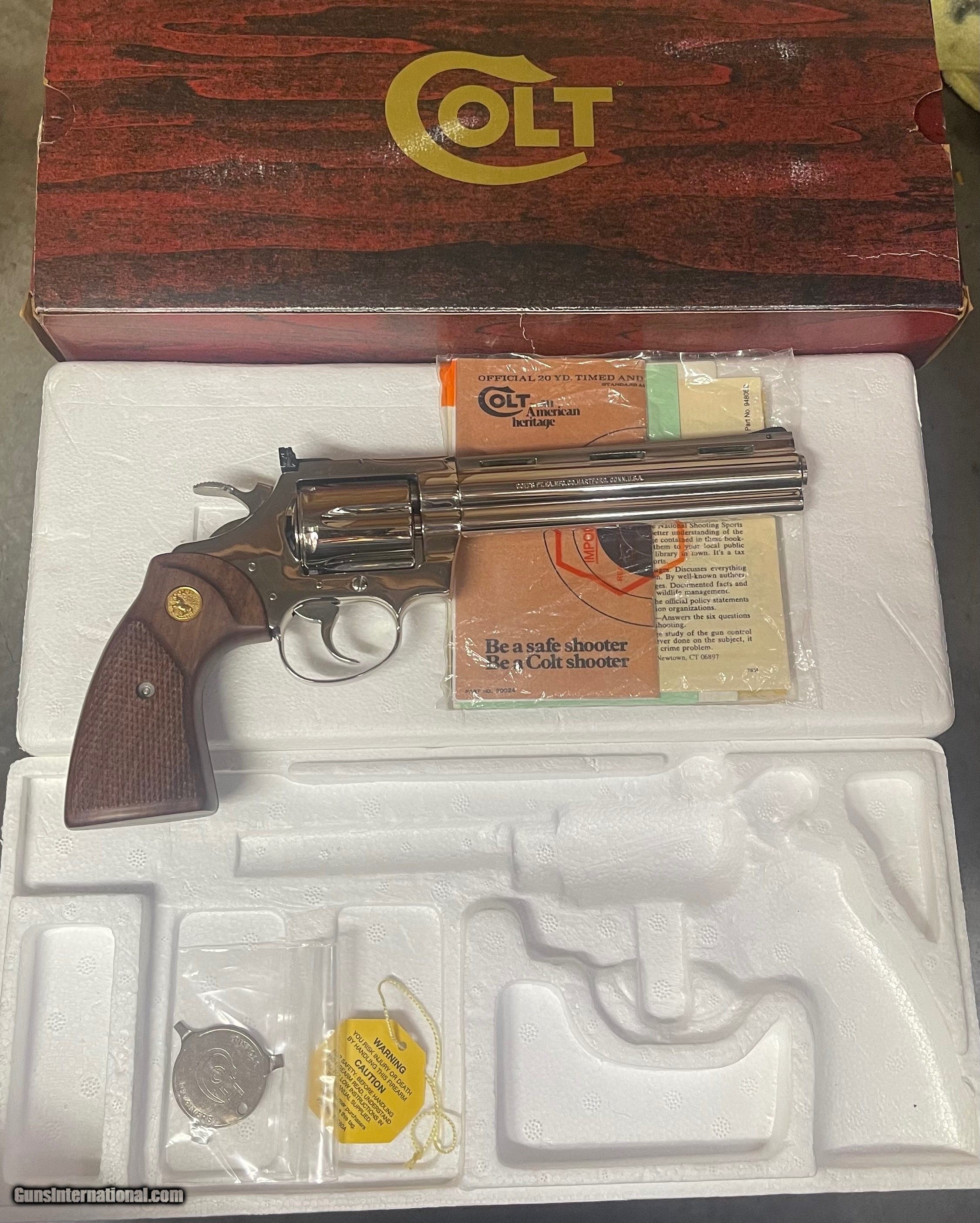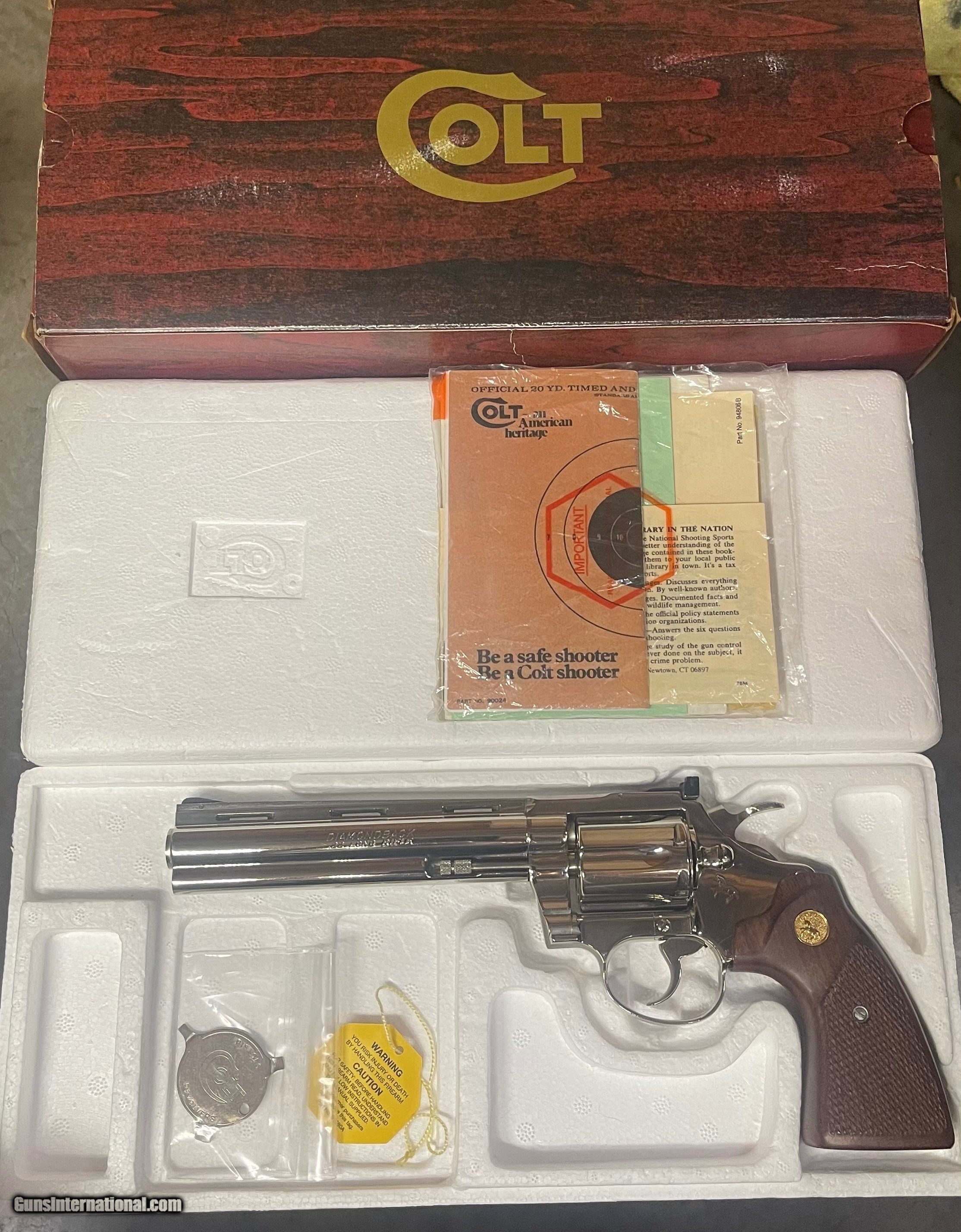 Description: Goodnight Irene! What a n incredibly beautiful Diamondback! This gun features a 6 inch ventilated rib barrel, targets sights, hammer, trigger, and custom grips. Rare nickel finish in this barrel length. Comes with a numbered box with papers dated 1979, and colt circular screwdriver. Gun shows very light signs of wear around the cylinder release and a light turn line on the cylinder. Still incredible beautiful gun. Please email with questions. Shipping and insurance included. Cards add 3% Manufacturer: Colt Model: Diamondback Barrel Length: 6 inch Condition: Used Metal Condition: Excellent Wood Condition: Excellent Bore Condition: Excellent Rib: Ventilated Finish: Nickel Sights: Target Manufacture Date: 1980 Case: Yes Item Location: 37075 Grips: Wood target Price: $4,950.00 Contact Seller |