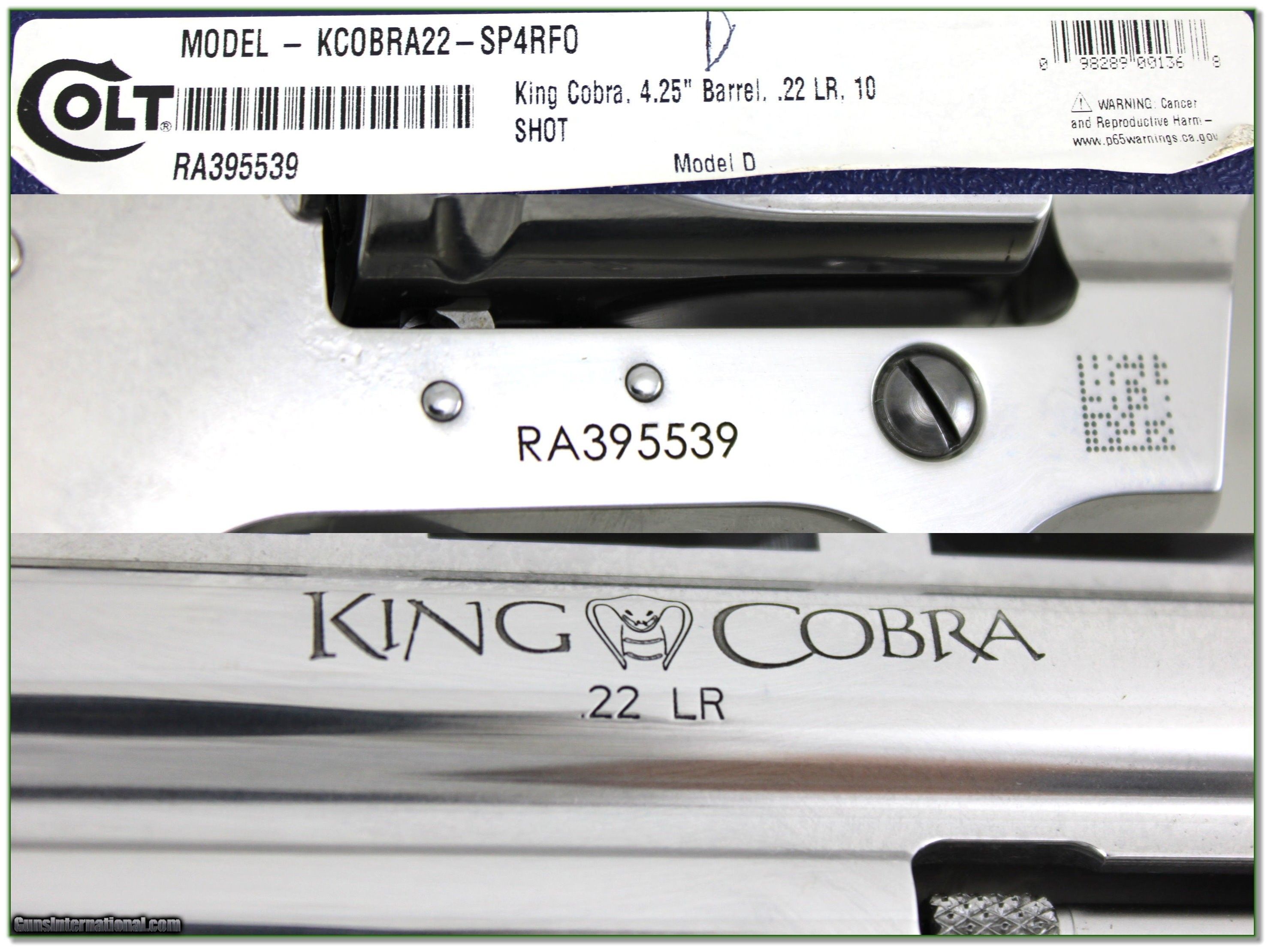 Colt King Cobra 22 LR Stainless 10 shooter like new