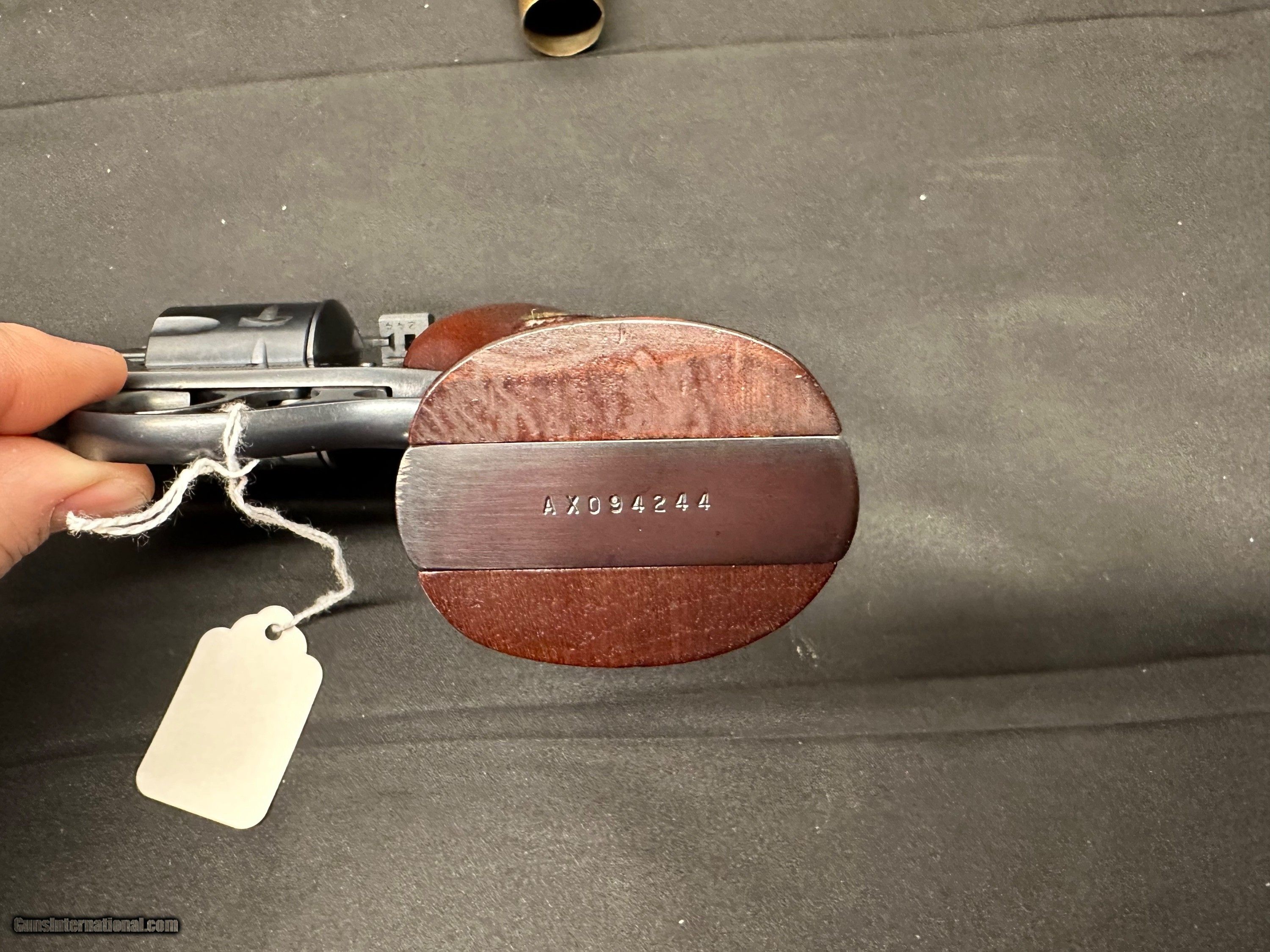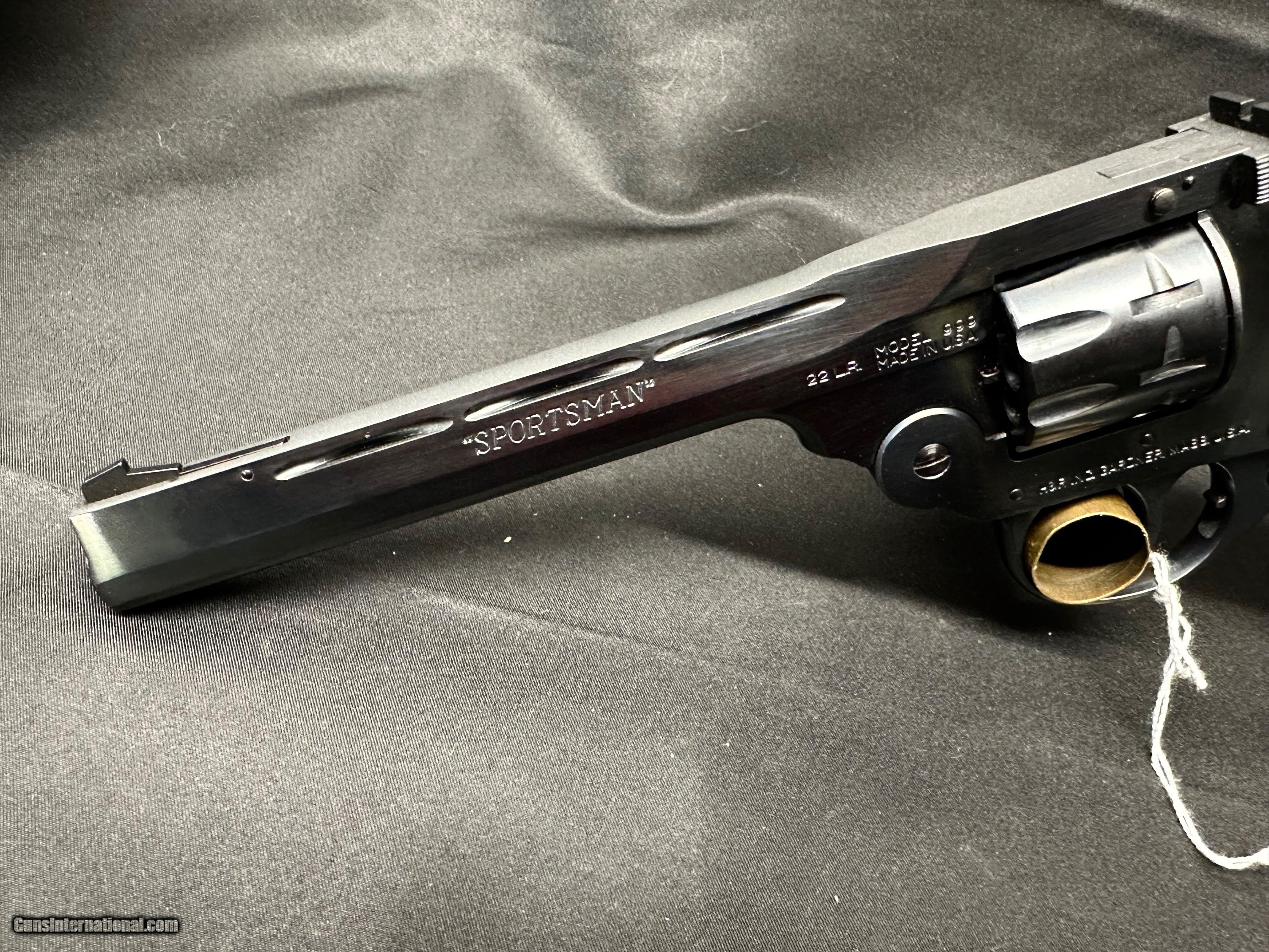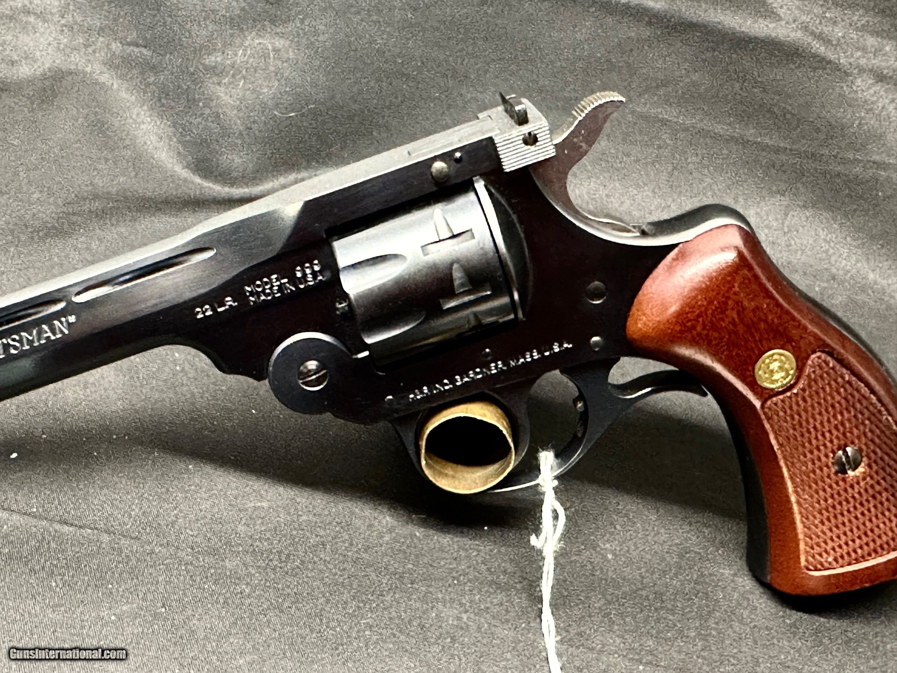 Description: This is a Excellent condition H&R Inc 999 Sportsman. Unfired no scratches, 9 rd .22LR revolver. If you are looking for a Sportsman 999 to collect this is one you won't want to pass up. Top break action. No shipping or Credit Card Fees Maine residents must add 5.5% sales tax SOLD Handgun Caliber: .22 Long Rifle Manufacturer: H&R Inc Model: 999 Sportsman Barrel Length: 6 Condition: Excellent Metal Condition: Excellent Wood Condition: Excellent to very small indents on the bottom of the left grip Bore Condition: Excellent Action: Single / Double action Top break Finish: Beautifully blued Item Location: Buxton Maine |