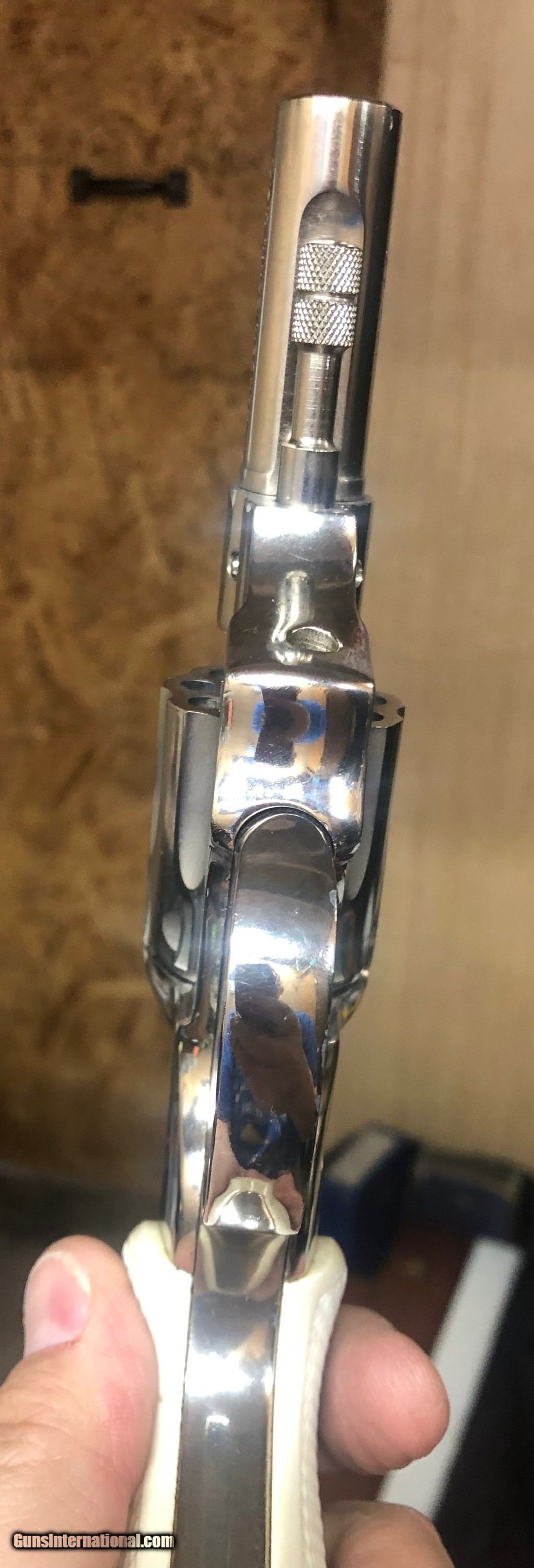 Description: This is one gorgeous sentinel. 22 lr, 3 inch barrel, nickel finish, and original white plastic grips. Gun has some scratches where the cylinder swing out. These guns don't have a spring to eject the shells and some try to close it with the extractor out. Other than that, super nice. Comes with a mark v non original box. Please email with questions. Shipping included (west coast add $75). Cards add 3% SOLD Manufacturer: High Standard Model: Sentinel Barrel Length: 3 inch Condition: Used Metal Condition: Excellent Bore Condition: Excellent Action: Da, sa Finish: Finish Sights: Fixed Item Location: 37075 |