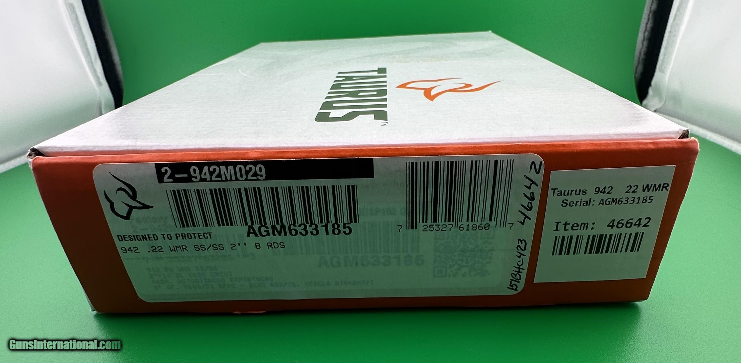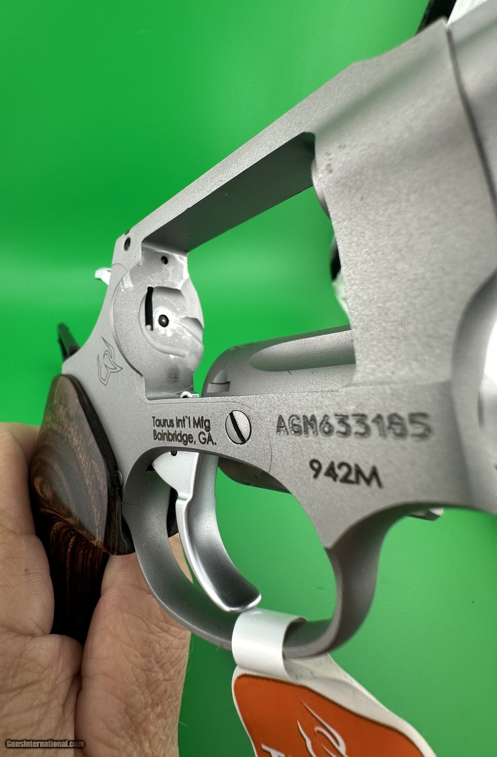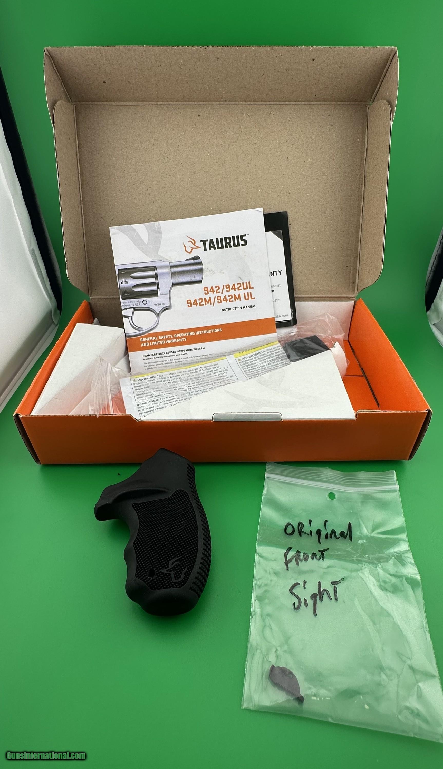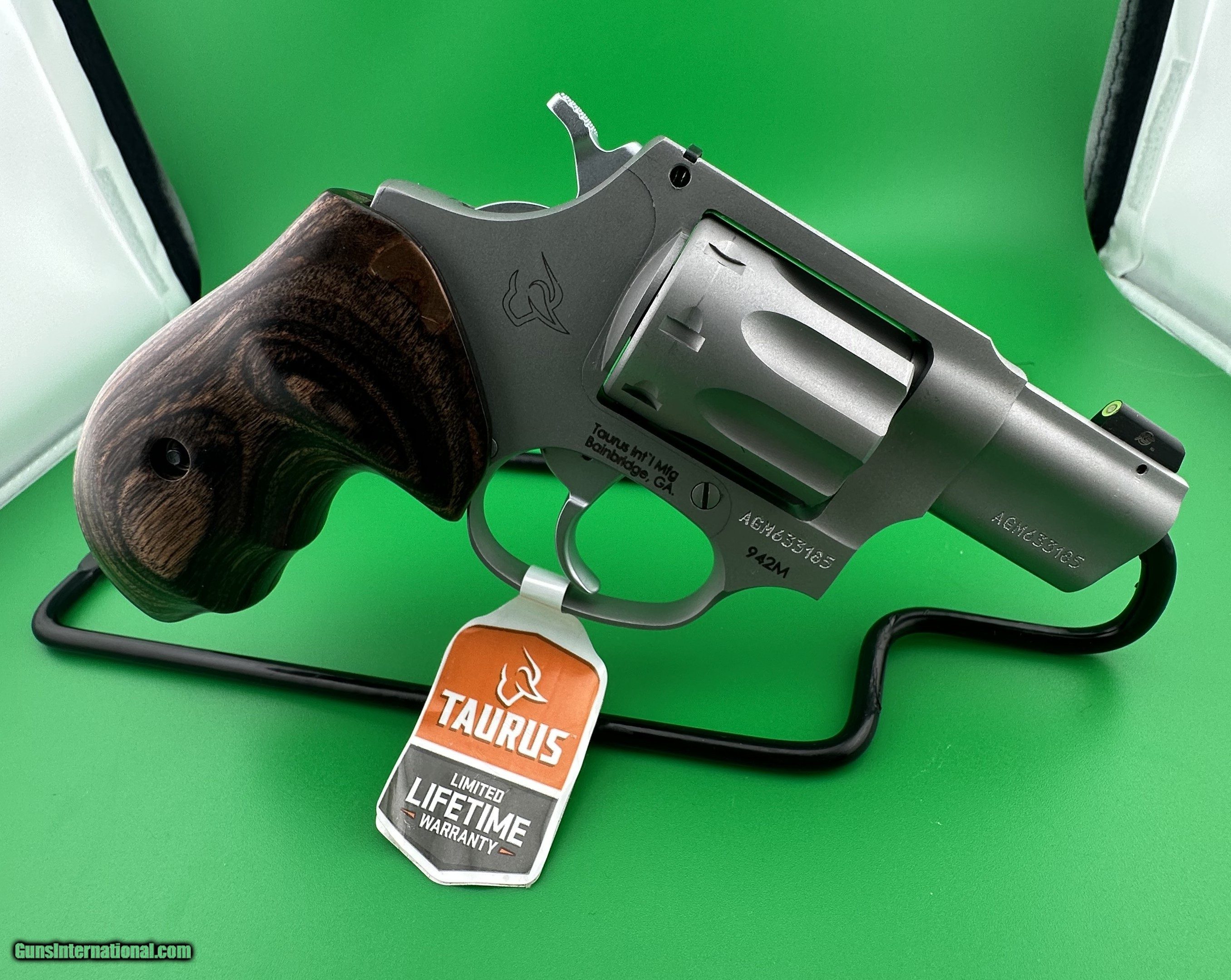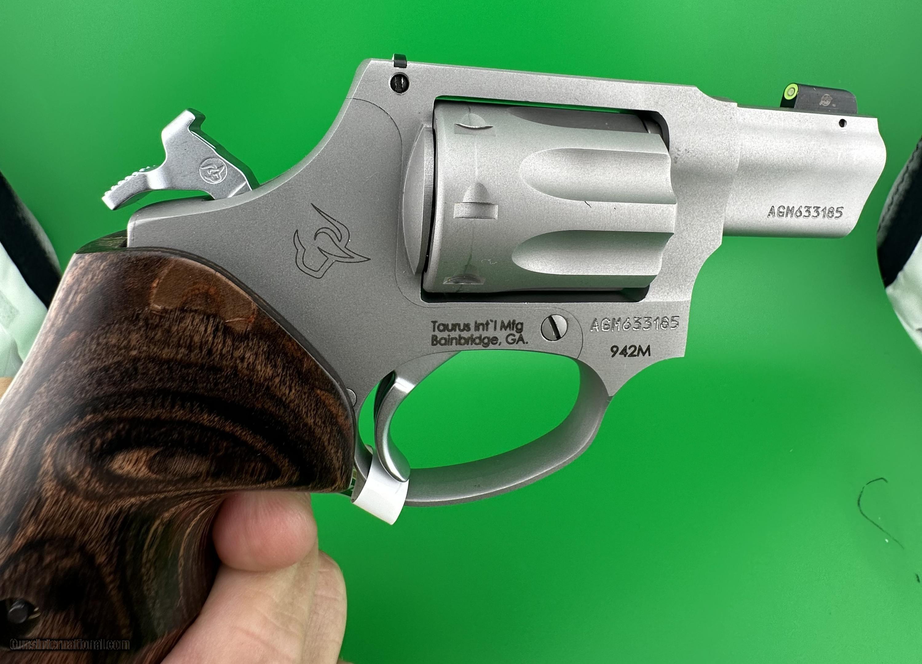 NIB-UNFIRED-TAURUS 942M- 2 INCH, STANLESS, .22WMR(MAGNUM), UPGRADED XS TRITIUM GREEN NIGHT SIGHTS & WOOD GRIPS. W/ BOX AND PAPERWORK