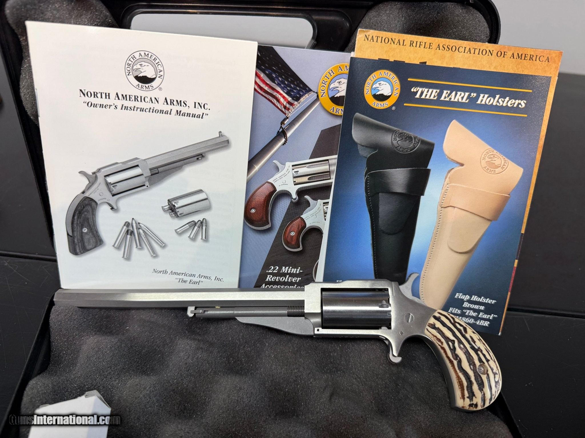 Description: Guns Listing ID: 587464 NAA THE EARL 22MAG 6\" STAINLESS 5 ROUND REVOLVER / STAG GRIPS NEW OLD STOCK / FACTORY BOX & MANUALS THANKS FOR LOOKING Manufacturer: NORTH AMERICAN ARMS Model: 1860 THE EARL Caliber Info: .22 WMR Condition: Used - Non-Certified Barrels: 6" BARREL Action: REVOLVER Finish: stainless Price: $385.99 Contact Seller |