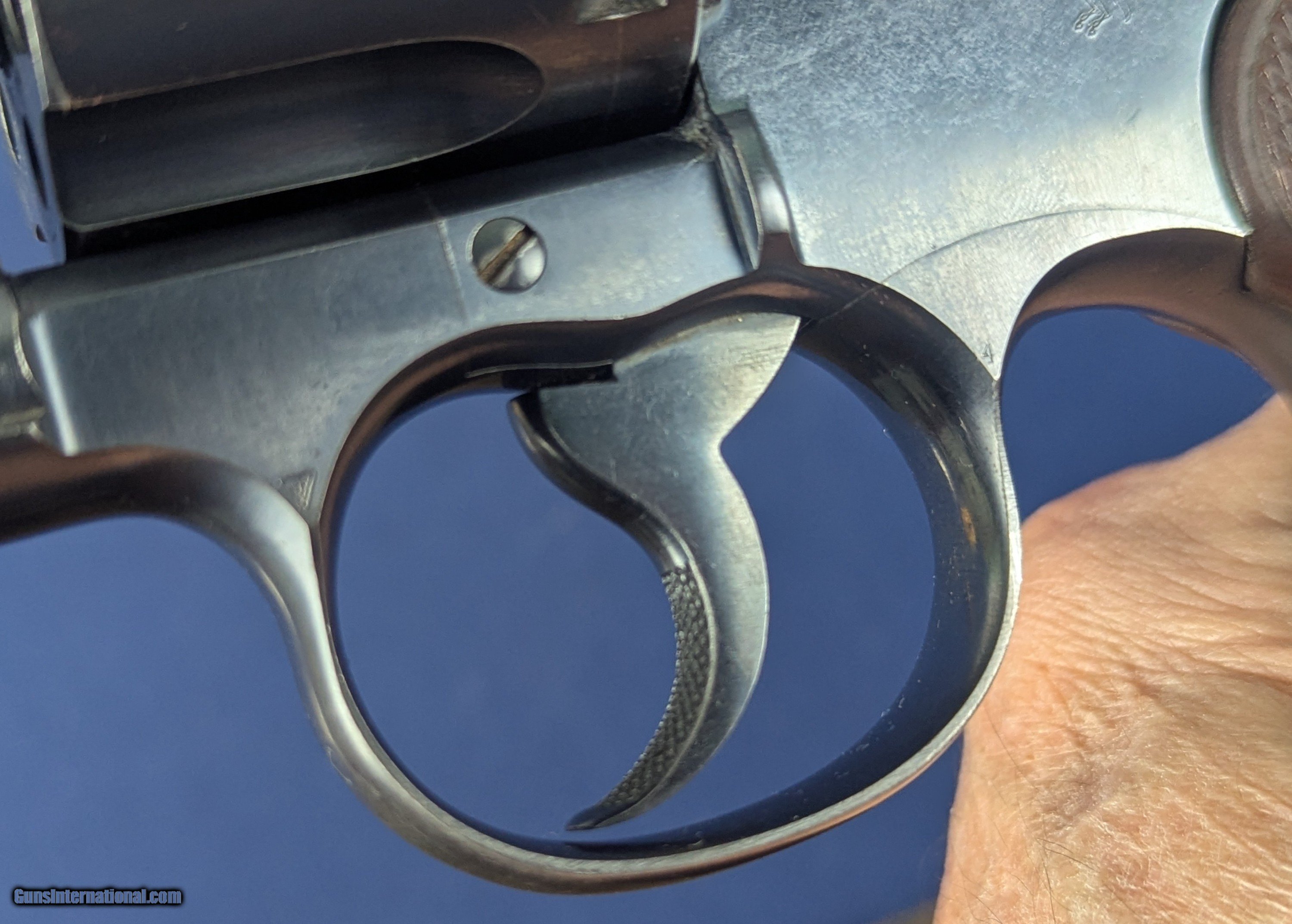 Description: Possible Employee Takehome Officer’s Model .22 W/Original Scarce Coltwood Factory Grips c.1937 Offered here and just acquired by us from a local estate in Connecticut is a very interesting original Colt Officer’s Model .22 revolver circa 1937. With our retail operation and gallery in Southport, CT and as the oldest dealer in the state we have acquired over our more than 5 decades in operation hundreds of unique firearms-prototypes, show guns, special editions and employee takehome specimens from Colt in Hartford, CT just 45 miles away. This appears to be one of them. Purchased from an individual who had an acquaintance who worked for Colt may have been a takehome piece – for a couple of reasons. First, a description of the revolver. This is an Officers Model .22 revolver serial number 17470 with a 6” barrel. The specimen was manufactured circa 1937. Aside for one flaw in the finish the revolver is near 100% but we will explain later. Second, the revolver is equipped with original Colt factory “Coltwood” grips which should be important to Colt collectors. Coltwood was the name Colt gave to a synthetic grip material it developed and used primarily in the 1940s–1950s. It was a phenolic/plastic material (similar to Bakelite or reinforced phenolics) rather than real wood. The term Coltwood was Colt’s own marketing name — essentially a plastic designed to resemble wood grain but be cheaper and more durable than traditional wood. Coltwood grips were commonly factory-installed on many Colt revolvers produced in this era — including Official Police, Detective Special, Cobra, and other medium and small frame models before being phased out in the 1950s. Early Coltwood grips often had a multi-colored, wood-grain appearance (orange/black/brown swirl) meant to mimic wood. Later Coltwood was often a solid brown plastic as manufacturing shifted, and some of these later grips are known for shrinkage issues over time due to the resin aging. This appears to be the case with this specimen. Now in the post war years Colt utilized left over parts as well as grips which may be the case with this slightly earlier Colt model. Now, regarding the “flaw” in the revolver which is in the inner grip strap near butt of gun. It appears as a “scrape” of sorts with a loss of finish. Very unusual which may account for it being a specimen offered to an employee (at a lower price) and left the factory a bit later than 1937 -and with some takehome Coltwood grips. Now all this may be supposition as the owner from whom we obtained the piece acquired it decades ago and does not remember the individual’s name who may have been a Colt employee. But as is an excellent conditioned vintage Colt Officer’s model with MINT CONDITION scarce Coltwood grips. L549 Thanks for your bid. Shipping for this item is $42 however final shipping amount is based upon geographical area. Handling is $18.00 for longarms only. We gladly accept money orders, bank checks and personal checks. Credit card orders (VISA AND MASTER CARD ONLY) charged 3.95% additional for use. PLEASE CALL DALIA AT 203-257-5256 TO GIVE CREDIT CARD INFORMATION. Also, please vview our at hansenguns. Click on "Online Catalog" and see All OF OUR ITEMS LISTED CONSECUTIVELY on or search online on that site with the ID “lope”...... OFFERED ONLINE AND AVAILABLE IN OUR RETAIL GALLERY IN SOUTHPORT, CT. Visit us also on Facebook at ://facebook/hansenguns/?fref=ts. We also own and/or operate Hansen Cartridge Co. and the Ruger Collectors Assc.(RCA). Hansen & Hansen wishes to expedite each order received, however we ship 80-100 items weekly, therefore orders paid by money orders or bank checks are cleared for shipping 5-7 days after deposited funds show in our account. Shipping date is scheduled ONLY AFTER VERIFICATION TAKES PLACE AND FFL/C&R IS RECEIVED (IF APPLIES). This is 5-7 days after WE receive order by mail - NOT customer date mailed and postmarked and after credit card funds are posted. Credit card orders exceeding $500 must be cleared through customer’s bank before shipping. Personal checks are accepted but orders are held UP TO 3 WEEKS after deposit of funds before items released for shipping. IF you have special instructions or require overnight or expedited shipping please advise at time of ordering and we will gladly prioritize shipping FOR AN ADDITIONAL CHARGE. THIS IS OUR POLICY and we encourage you to PLEASE READ AND UNDERSTAND OUR POLICY BEFORE . We would be pleased to answer ANY questions by phone (our toll free number is 1-800-571-7337 or e-mail cwlopiaol Curio/Relic: Yes Handgun Caliber: .22 Long Rifle Price: $1,275.00 Buy Now Contact Seller |