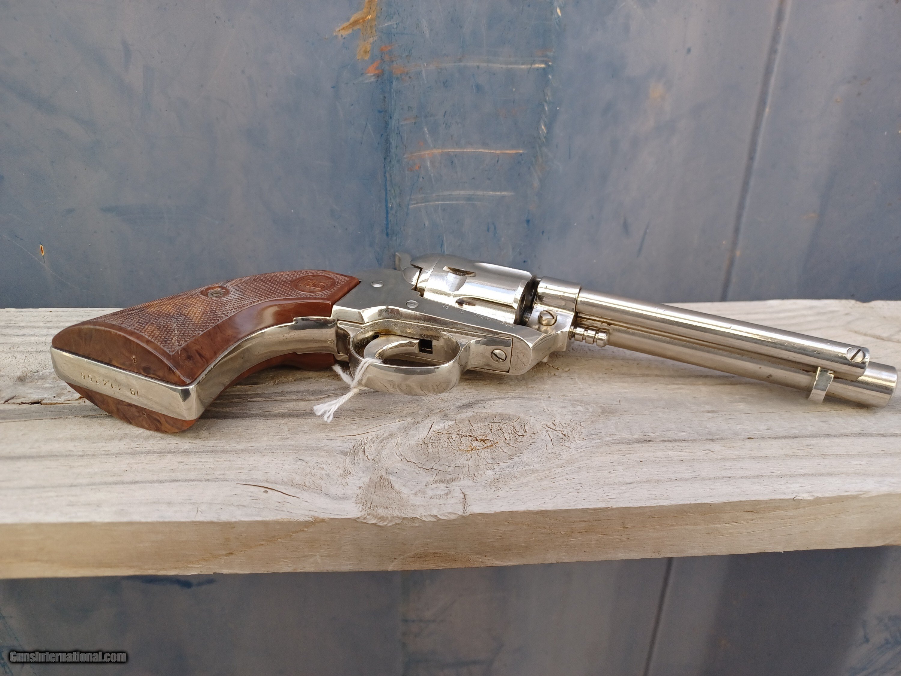 Description: Here is a classic Rohm RG 66 chambered for 22 Long Rifle. This revolver was likely made in the 1960's to capitalize on the national cowboy craze. The finish is nickel and is in great shape. The action funcrions fine with no known issues. The action has 4 clicks and a frame mounted firing pin. Nice revolver in good condition. Thanks for looking! $25 shipping Please call with any questions. Please click the BUY NOW button to purchase this item. We are required to charge 8.25% for Texas residents. There is a 3.5% fee if paying by credit card. Handgun Caliber: .22 Long Rifle Manufacturer: Rohm Model: RG 66 Serial Number: IB114756 Barrel Length: 4.75 Condition: Good Metal Condition: Good Wood Condition: Good Bore Condition: Good Price: $225.00 Shipping: $25.00 Buy Now Contact Seller |