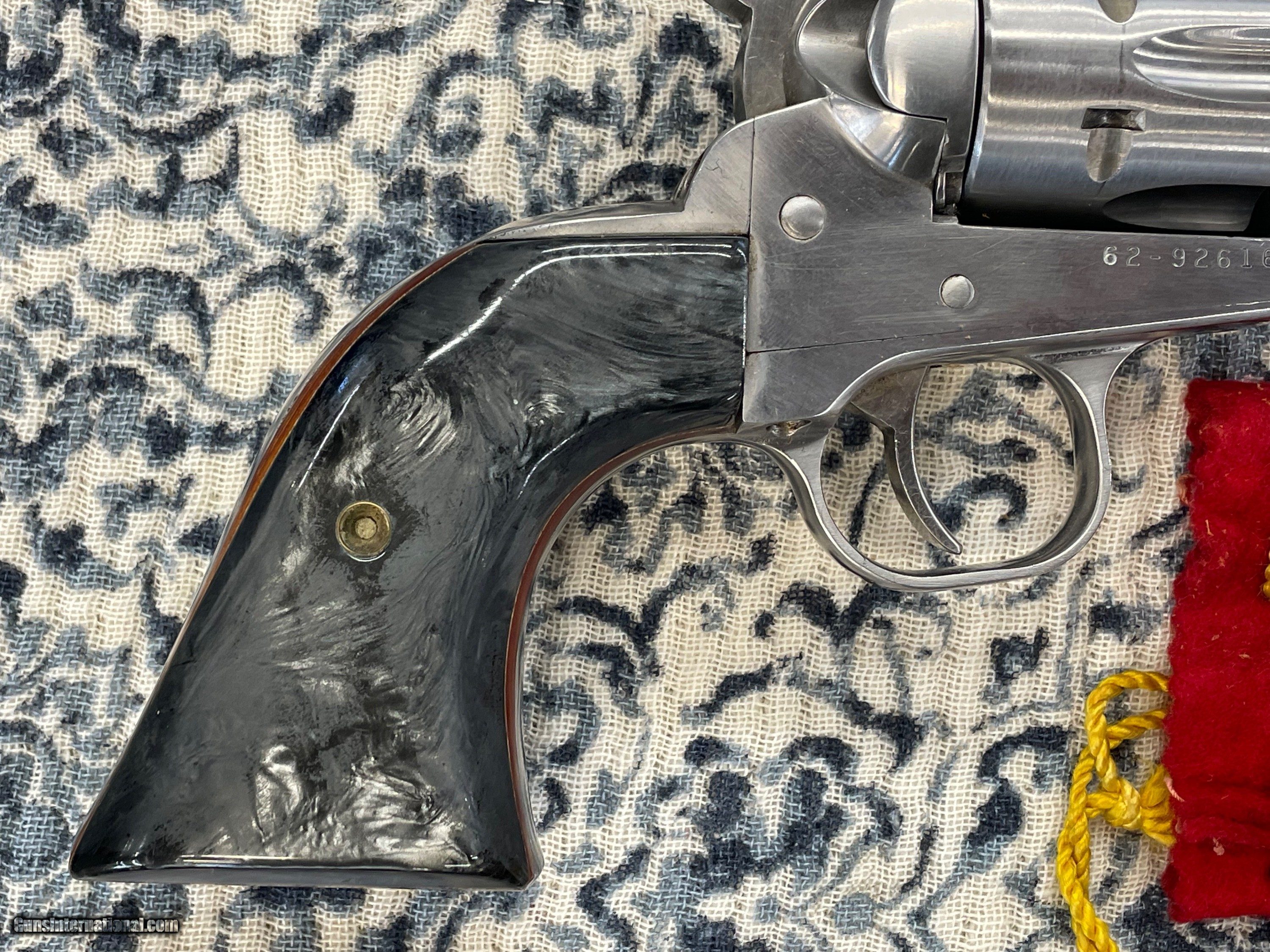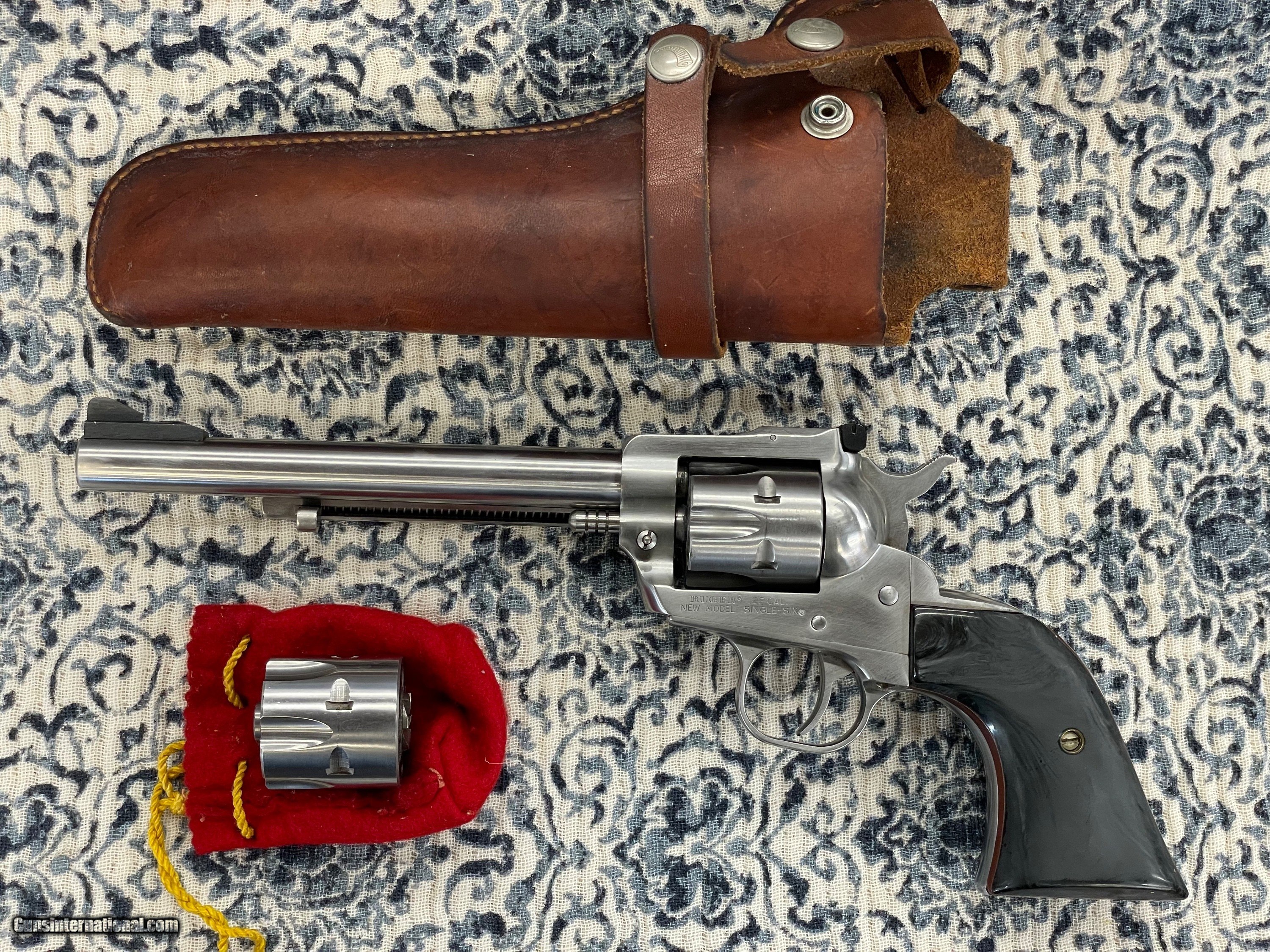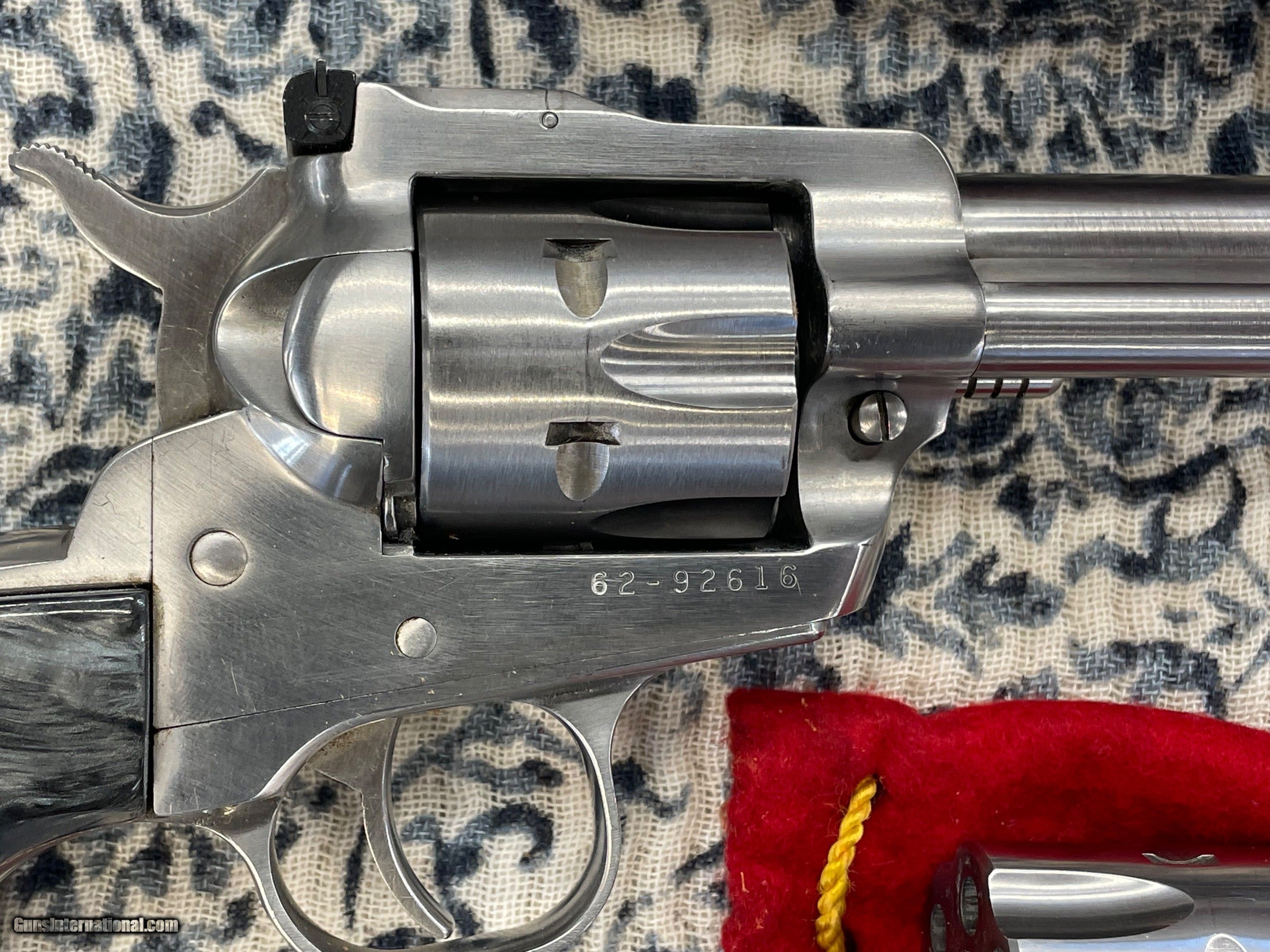 Description: Ruger New Model Single Six .22lr cylinder & .22 mag cylinder 6.5" barrel. Excellent condtion. s/n 62-92616. production year: 1976 Comes with leather Hunter holster Manufacturer: Ruger Model: New Model Single Six Barrel Length: 6.5 Price: $550.00 Shipping: $30.00 Contact Seller |