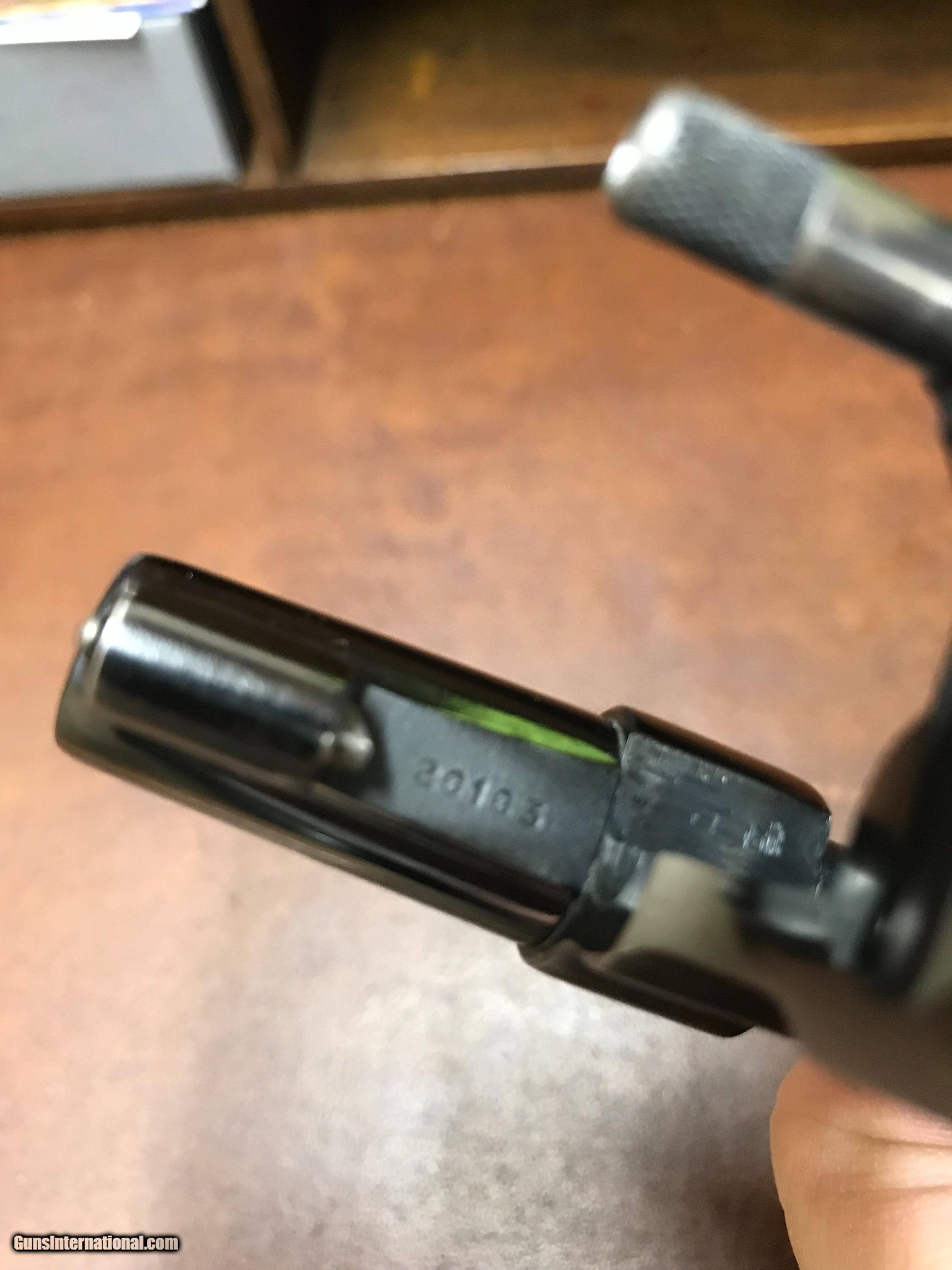 Description: A rare piece indeed! A pre 34! This one is in fine shape. 1 7/8ths barrel, blue finish, original numbered diamond grips, short grip frame, target adjustable sights. Light wear on the cylinder and backstrap. NO BOX! Please email with questions. Shipping included. Cards add 3% SOLD Manufacturer: Smith and Wesson Model: Pre Model 34 Barrel Length: 1 7/8ths Condition: Used Metal Condition: Excellent Wood Condition: Excellent Bore Condition: Excellent Action: Double Finish: Blue Sights: Target Manufacture Date: Circa 1956 Item Location: 37075 |