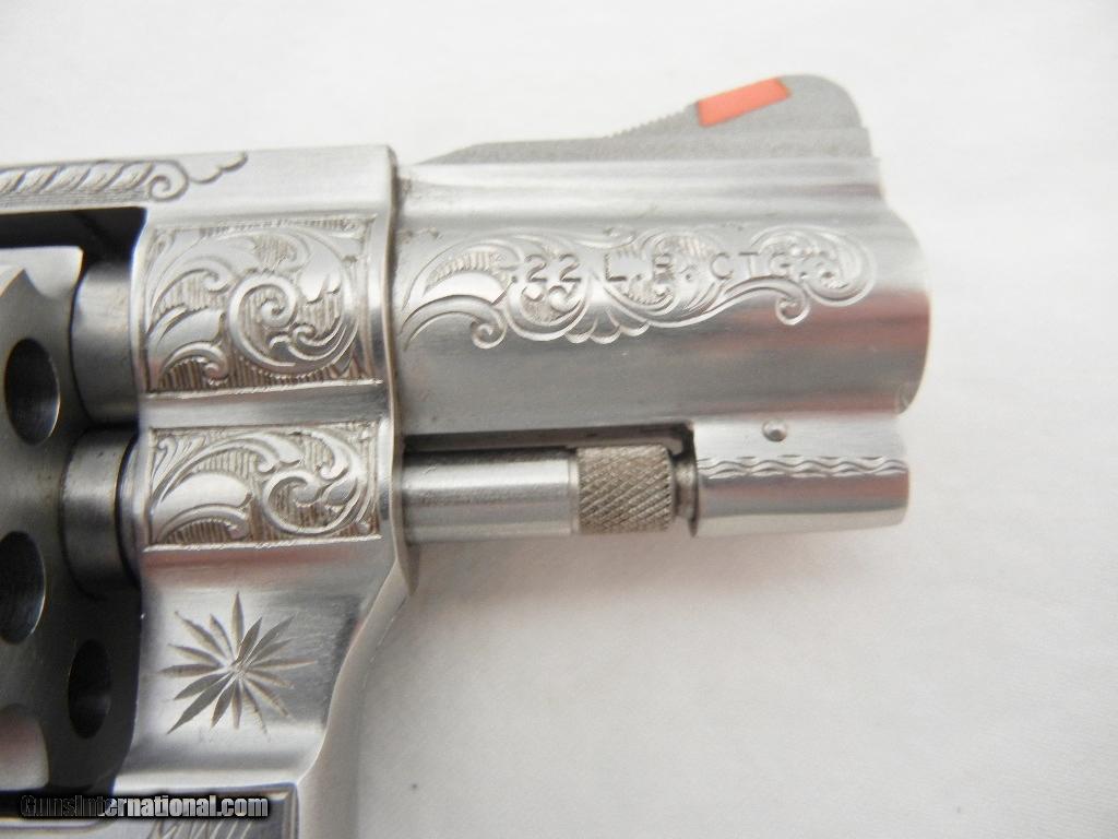 Description: This is a Smith Wesson 63-3 22 with a 2 inch barrel. This gun is custom engraved. Engraver singed MWD. Gun is 99%+ in the box. Serial # is BDY10xx. Buyer pays 35.00 shipping. Thank you. 34-20-7 SOLD |