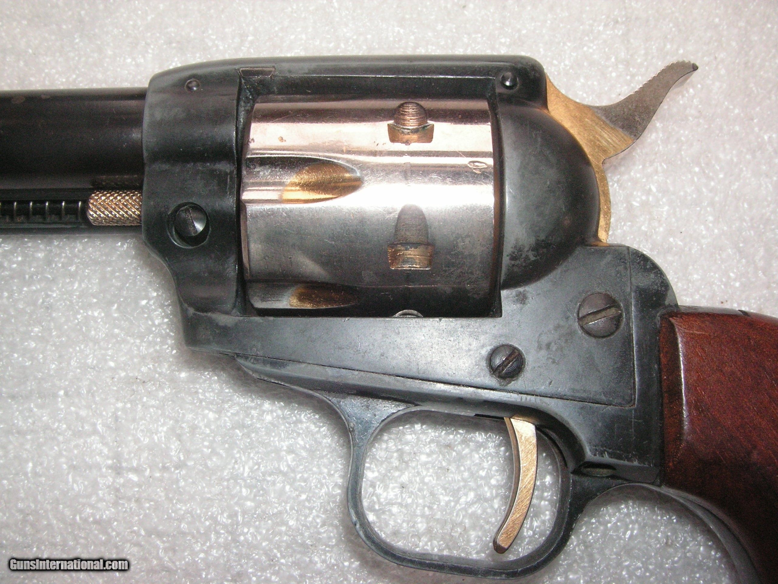 Description: SEE THE PICTURES OF WESTERN DUO CALIBER ,22 LR IN VERY GOOD CONDITION WITH BRIGHT AND SHINY BORE BARREL. PRICE $175 PLUS $35 SHIPPING/INSURANCE. Manufacturer: Western Duo Model: .22 magnum Serial Number: F03318 Barrel Length: 5.5 IN Bore Info: shiny & bright Condition: very good Metal Condition: 85% finish Wood Condition: very good Bore Condition: shiny & bright Grips: very good Price: $175.00 Contact Seller |
