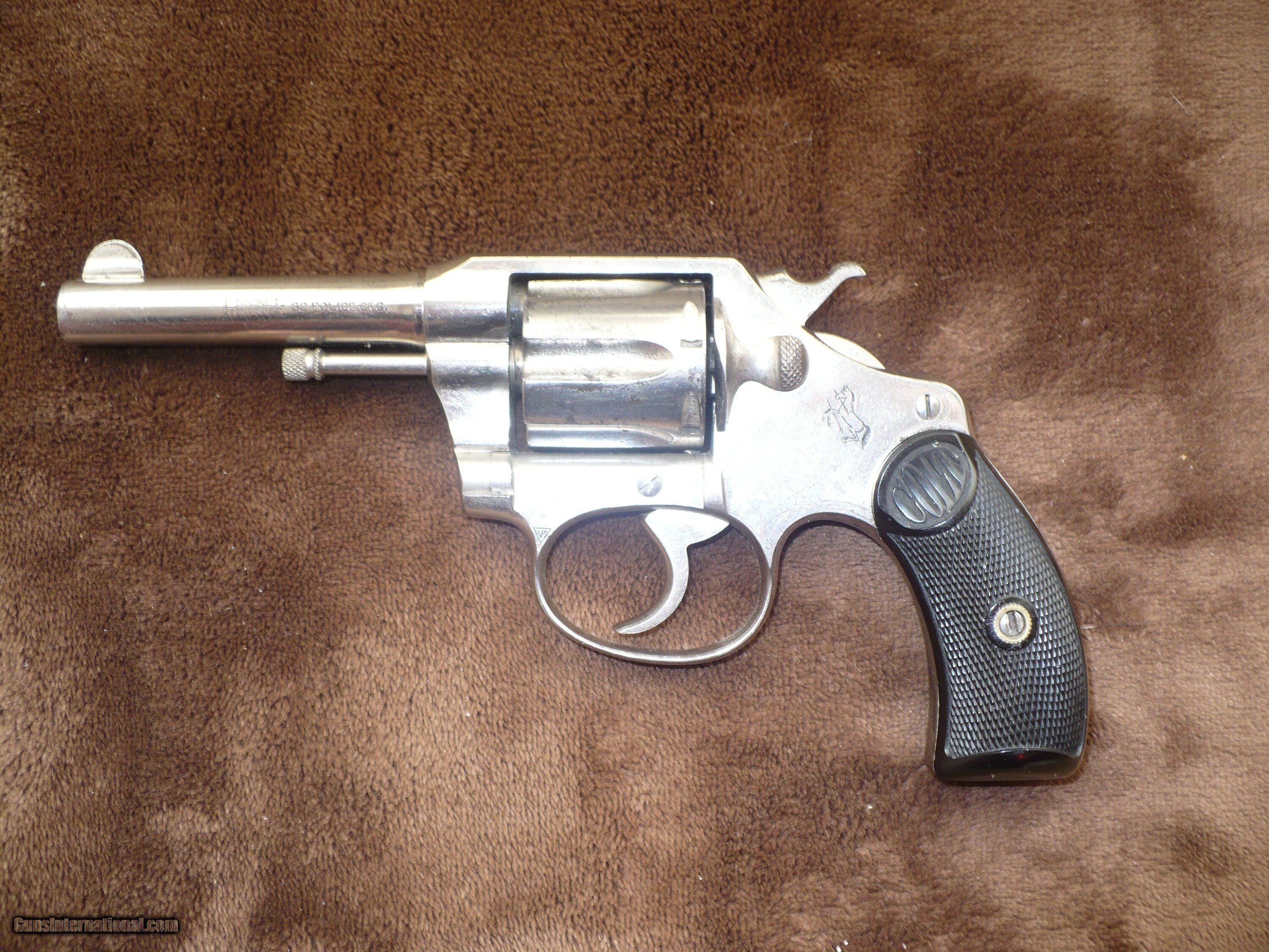 Description: Colt Pocket Positive .32 Police Cal. Listed is a Colt Pocket Positive Revolver in .32 Police Cal. The Pocket Positive was the same revover as the New Pocket with the addition of Colt's new "Positive Safety" feature. The Positive Safety was a steel bar that retracted down inside the action as the trigger was pulled and allowed the hammer to move forward and fire the cartridge. This added an additional layer of safety to the Colt rebounding hammer that made it safer. The Pocket Positive with its Positive Safety finalized the design that Colt would use up until 1969. This 3 1/2" nickel Pocket Positive is a 1st issue with a last patent date of 1905 that was manufactured in 1914 with serial number 68484. Price is $1700 plus $65 shipping Check, money order Please note same as cash layaway available, please call to discuss SOLD Curio/Relic: Yes Handgun Caliber: .32 S&W Long (.32 Colt New Police) Manufacturer: Colt Model: Pocket Positive Serial Number: 68484 Barrel Length: 3 1/2 Condition: 75% + or - Metal Condition: good Action: single/double Finish: nickel Sights: fixed Manufacture Date: 1914 Item Location: Farmington, New Mexico |