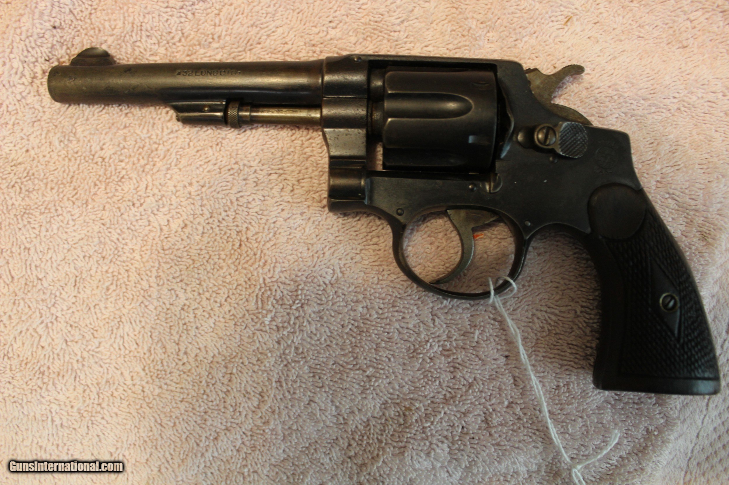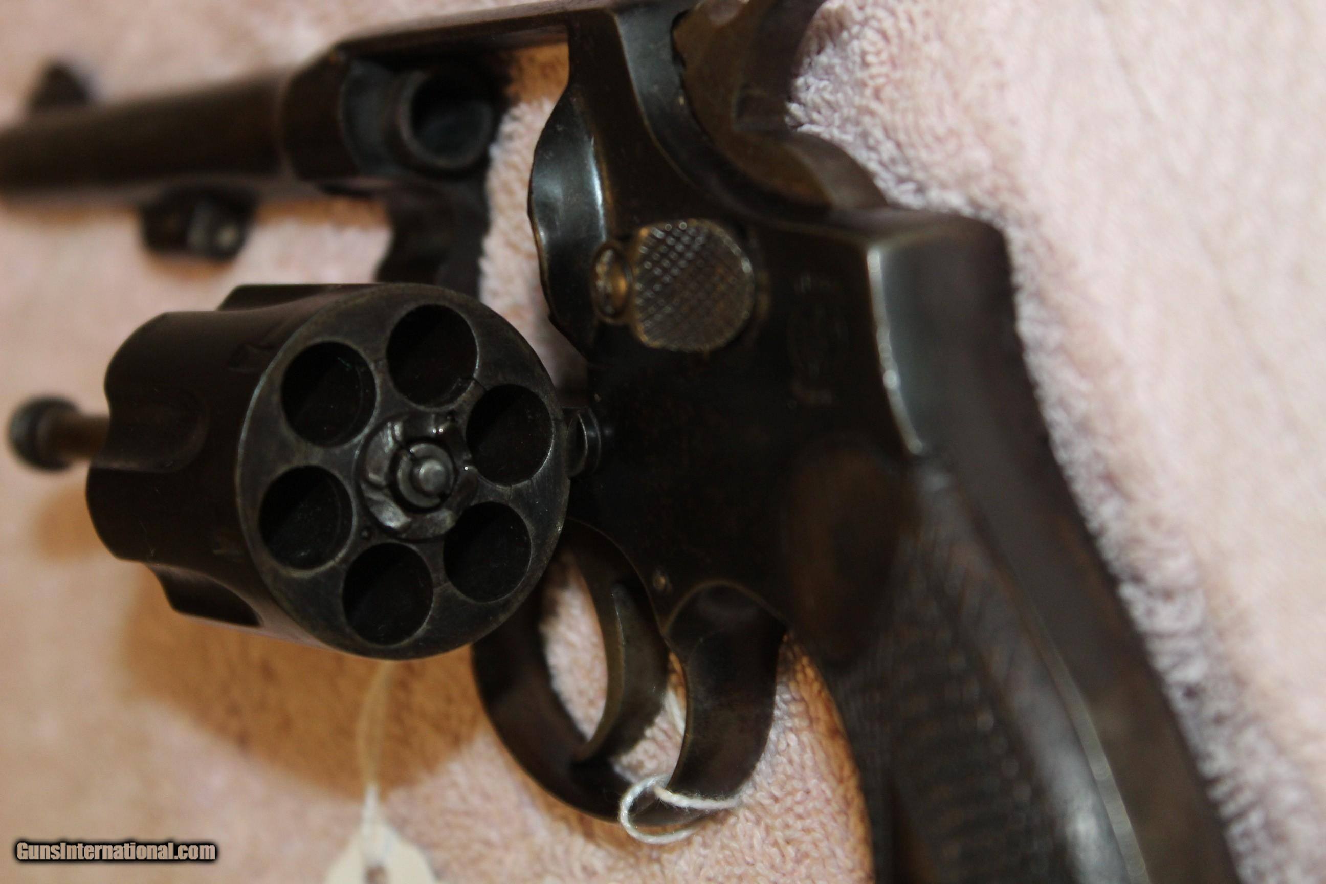 Description: Eibar. 32 long. 4 1/4" barrel. Double action. Locks up tight. Checkered walnut grips very good. Blue finish 75-80% C&R OK.. Check or M.O. only SOLD Curio/Relic: Yes Handgun Caliber: .32 S&W Long (.32 Colt New Police) Manufacturer: Eibar Barrel Length: 4 1/4 Condition: Good |