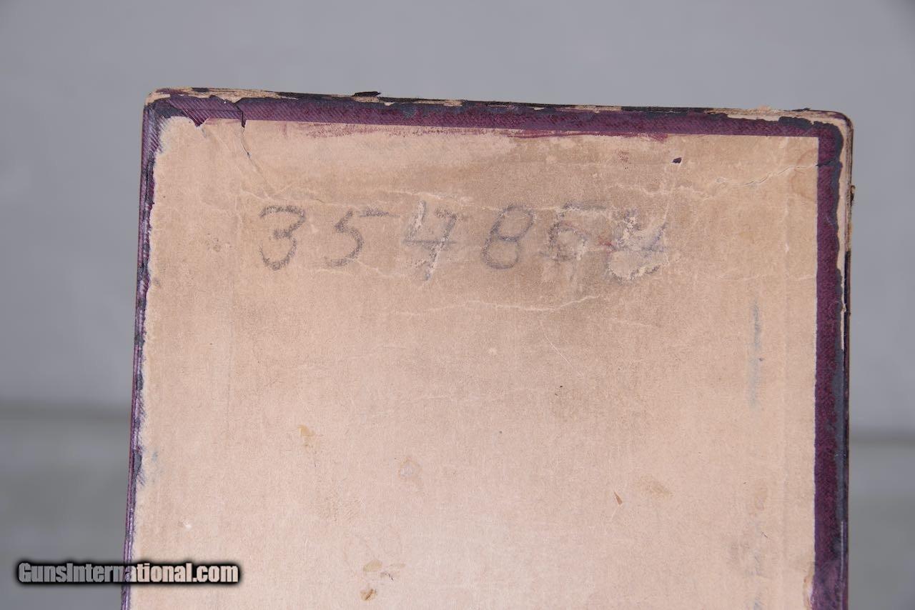 Description: 1932 Colt Pre War SAA chambered in 32–20 with a 5.5 inch barrel and factory blue/color cased finish. Per the included Colt archive letter it was shipped September 29, 1932 to Cícero, Illinois. Also included is the original box numbered to the gun. This is a collector grade single action. The numbers match on the frame and grip frame. The cylinder is numbered 79 versus 54 on the frame. The finish is an extremely high condition. The original bluing still retains all of its deep dark shine throughout. The leading edges are all crisp and the straps are perfect. As seen in the photos there is only the very slightest of superficial handling and overall the finish rates 99%. The bore is bright and shiny with strong lands and grooves. All four clicks are crisp and the lock up is tight. It is wearing an old set of carved ivory grips with an eagle on the left panel and a steer head on the right panel. This is a very nice and complete 91-year-old package. SOLD Curio/Relic: Yes Manufacturer: colt Model: saa |