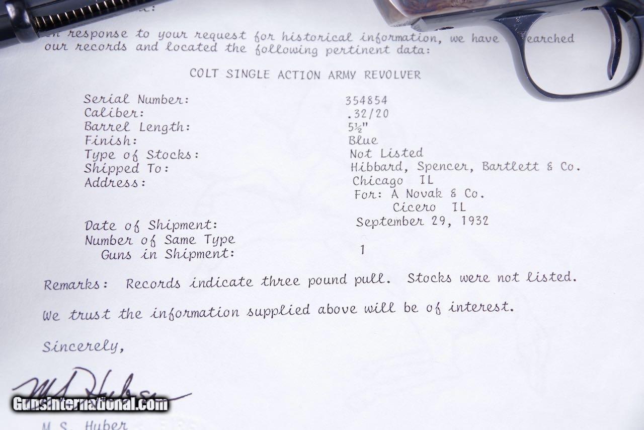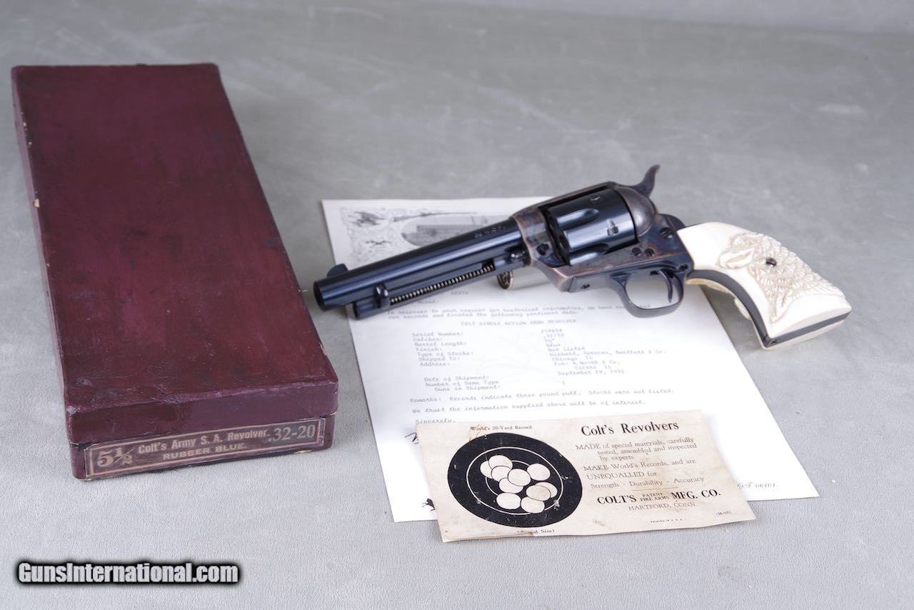 Exceptional 1932 Colt Pre War SAA 32-20 5 1/2'' Blue/CC Carved Ivory with Original Box