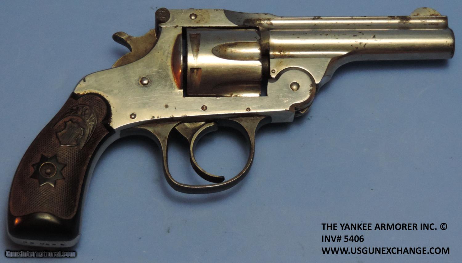Description: Inv. 5406 Forehand Arms Comp. 6 shot, Caliber .32 Long, Serial Number 2830XX. I don't usually offer these little utility guns, however it was part of a divorce settlement. So for someone who might need something to keep on the boat, upon the lodge or just for utility purposes it may be just right. The nickel plate remaining is at least 90+%. There is just some of the usual scattered flaking. The gun has all the original factory parts and seems to function properly. The grips show no wear and are not chipped or cracked. The bore does show some graying but does have more than adequate well defined rifling. Something very basic you can throw in your back pack and feel secure. $125. Including shipping. To purchase this firearm or if you want to request more information contact us at: Email ckgunsymail Phone 201-512-0002 Cell 201-575-6838 FAX 201-215-4759 We accept most major credit cards. Prices shown are Discounted 3% for Cash or Check. The buyer must be familiar with all the laws governing the purchase and the ownership of firearms in their own city and state. The Yankee Armorer, Inc is not responsible for any failure to comply with or observe these laws. The Yankee Armorer, Inc will only ship after full payment and receipt of all required documents. Shipping: Add $35.00 for handguns, $45.00 for long guns. New Jersey buyers are subject to a 7% sales tax. The Yankee Armorer, Inc offers a 3 day inspection period with full refund upon return of intact firearm and in the original condition. The Yankee Armorer, Inc offers a no interest lay away program - 25% down; 25% in 30 days; 25% in 60 days; and full payment in 90 days. Any violation of this policy is subject to restocking and forfeiture of all payments. Any variation from this policy must be agreed to in advance. Unshipped Cancelled sales are subject to a 20% restocking fee. Be advised that all firearms sold by The Yankee Armorer, Inc. or the Gun Exchange, LLC (SELLER) are sold as collector’s items. They have not been fired or tested for safety and must be examined by a license gunsmith prior to use. By purchasing any item from the (SELLER), you are agreeing to hold the (SELLER) free from any damages or lawsuits of any nature. Any item left for transfer or storage will be charged to $25.00 per month, per item from the day of its receipt. Any variation from this policy must be agreed to in advance. Store hours 10:00 am to 5:00 pm Tuesday -Saturday. It's always best to call for appointment. Store 201-512-0002, cell 201-575-6838. SOLD Curio/Relic: Yes |