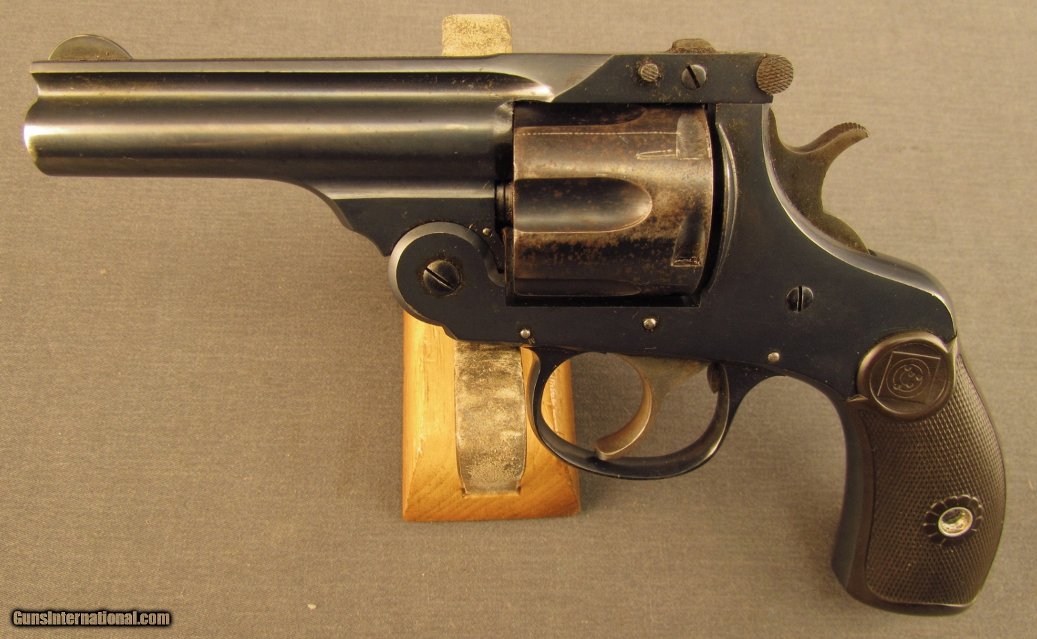 Description: This H&R is the .32 cal, 5th variation of the second model with 5 patent dates, Oct 4, 87 may 14 and Aug 6, 89, April 2, 95, and April 7, 96. This variation was intended for black powder cartridges and was produced from 1897-1904. Serial numbered under the grips on the left frame, scratch numbered on both inside grips and under the top strap with a letter "G" prefix G21769. 3 1/4" round ribbed barrel with the bright bore showing a few light pits. Over 90% original blue finish with thinning on the cylinder and at the muzzle. Black hard rubber target grips show light wear. Reference 13th edition Blue Book Pg 851 (second model). FFL or C&R SOLD Curio/Relic: Yes Manufacturer: H&R Model: 2nd Serial Number: 31769 Caliber Info: .32 S&W Gauge Info: .32 S&W |