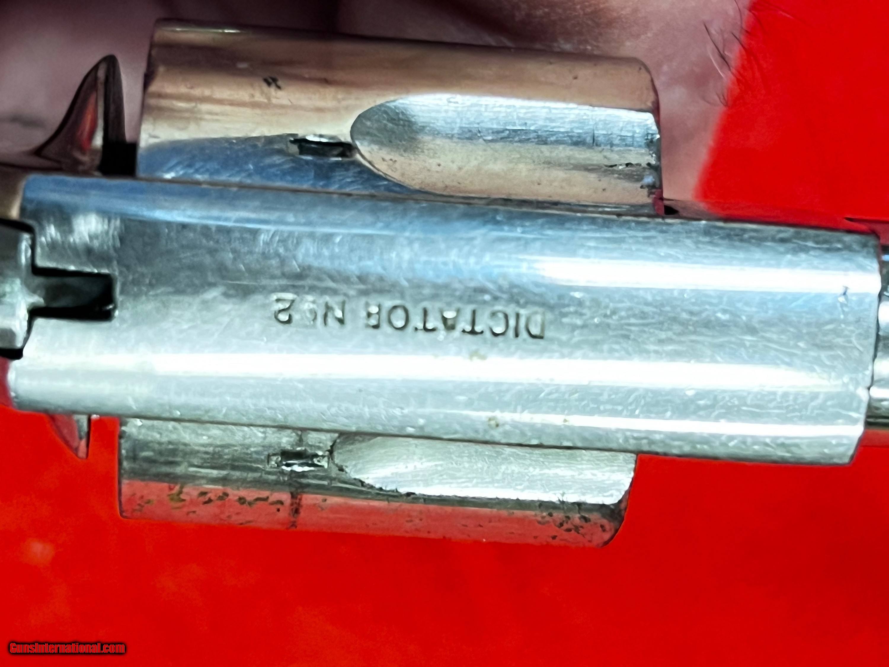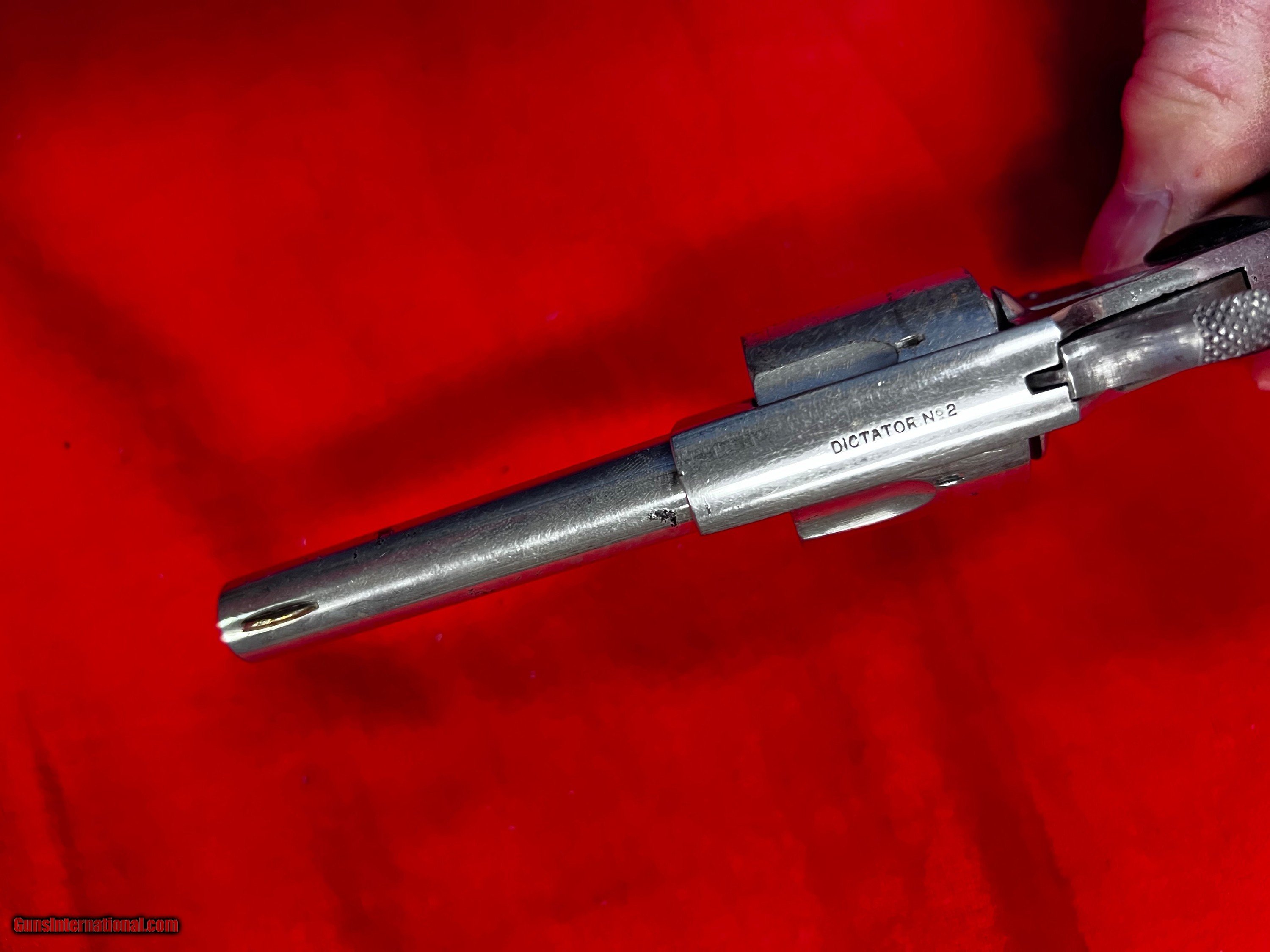 Description: Good antique H&A Dictator #2 .32 rf sear holds hammer back but hand or hand spring is broken cylinder will not advance on its own SOLD Antique: Yes |