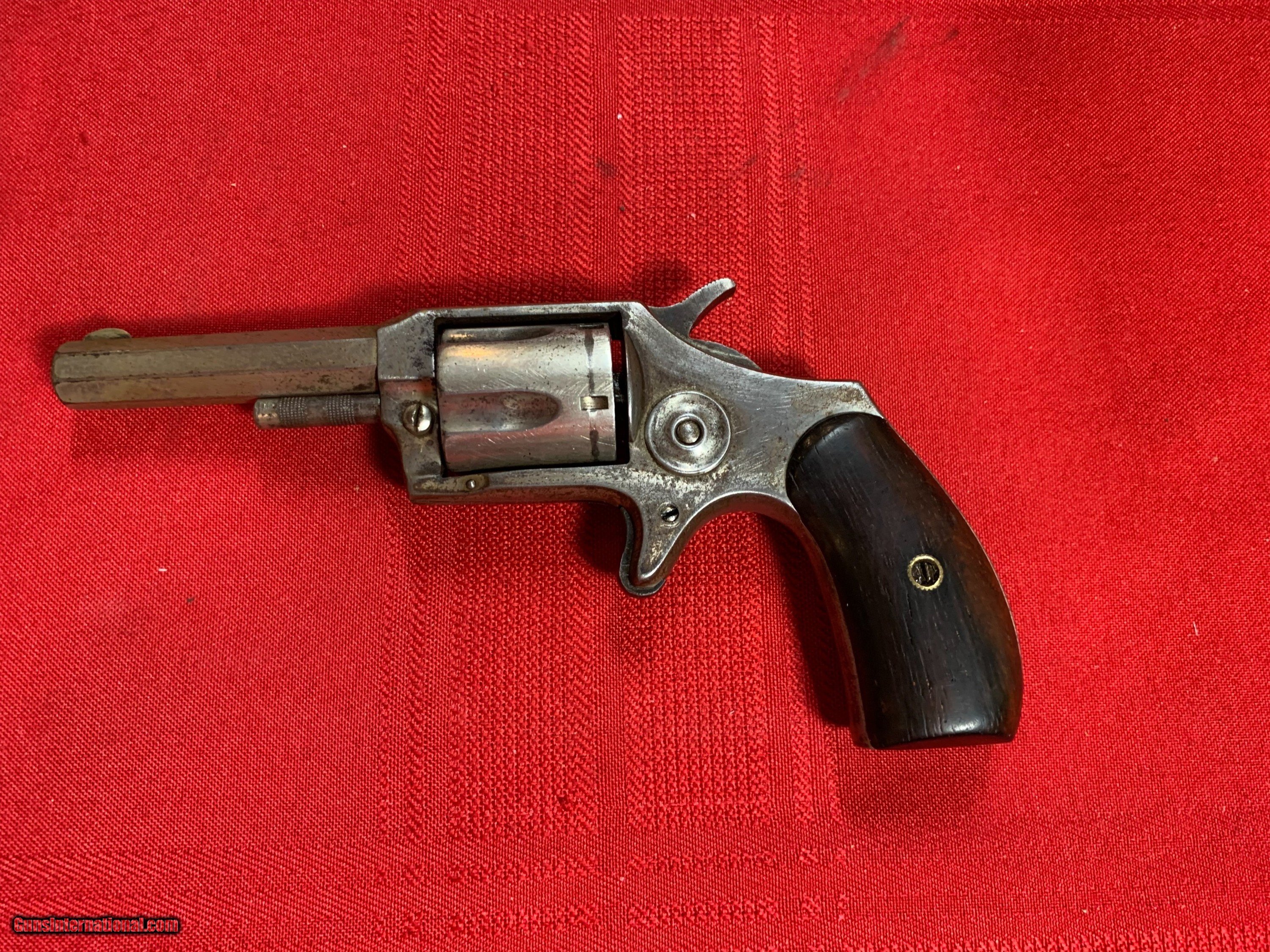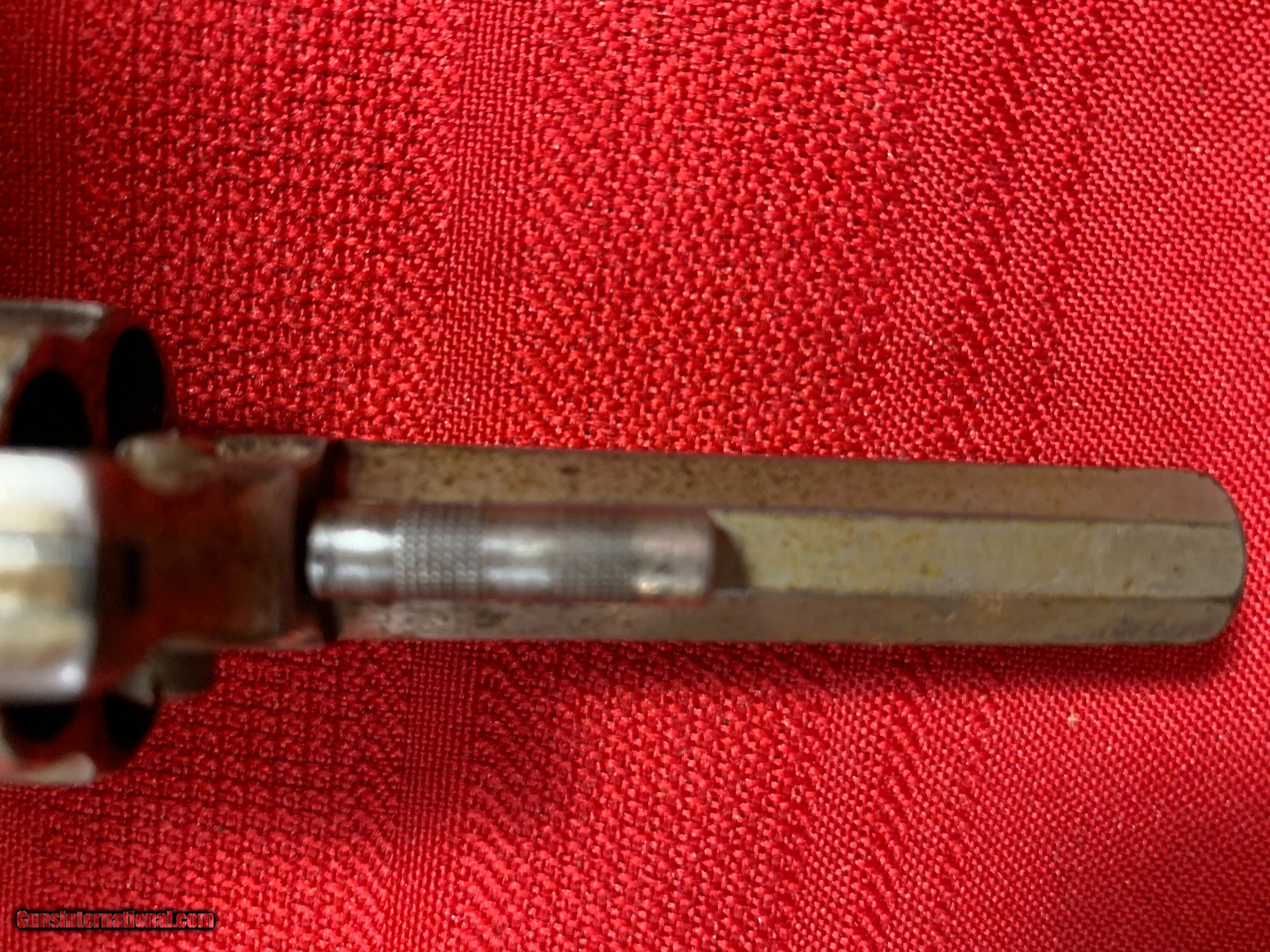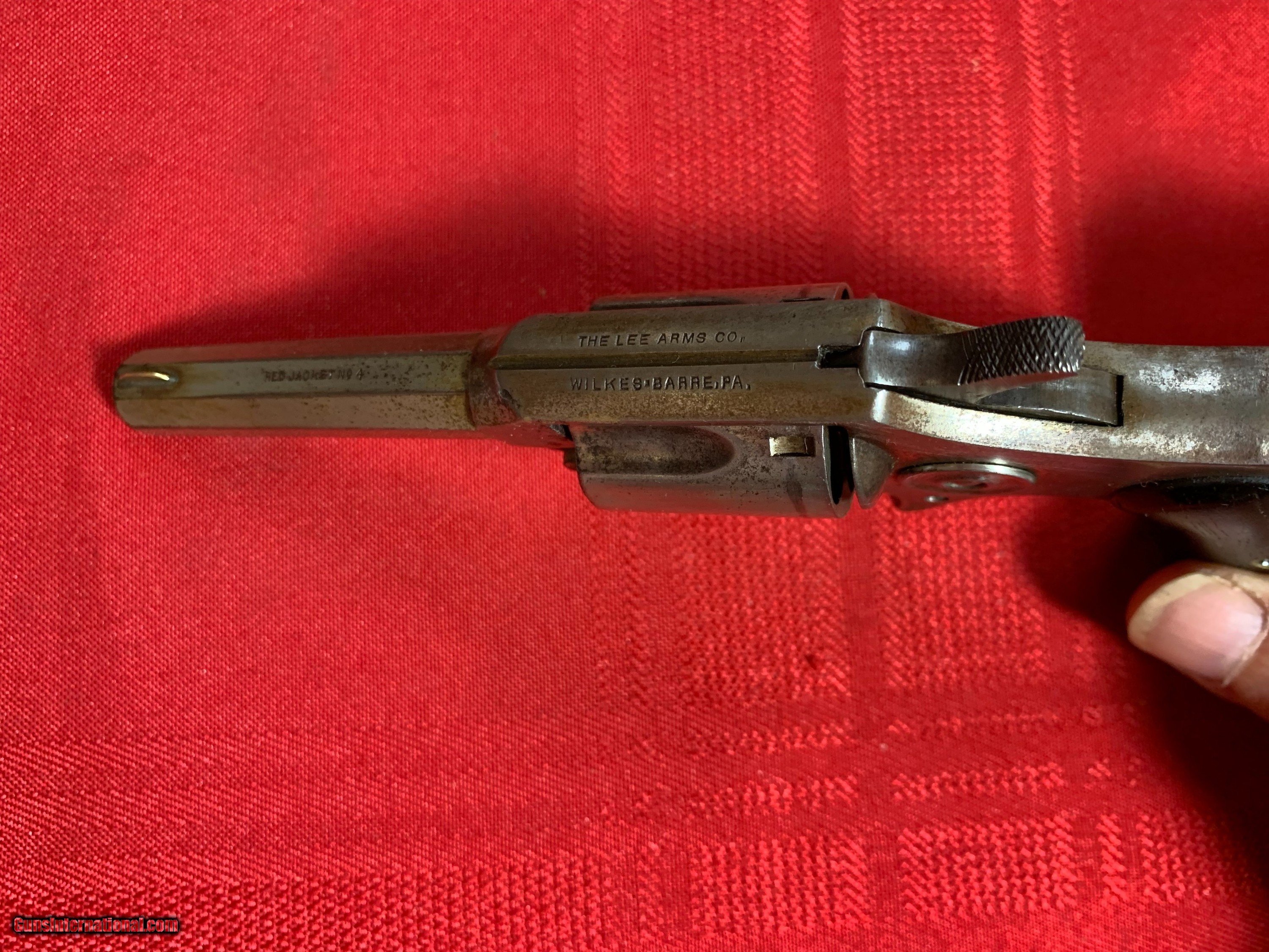 Description: 32 RF revolver made by Lee Arms Co. Wilks Barre, Pa. 5 shot, spur trigger. Functions. Woodgrips. Octogon barrel 2 3/4". Antique. SOLD Antique: Yes Handgun Caliber: .32 Rimfire |