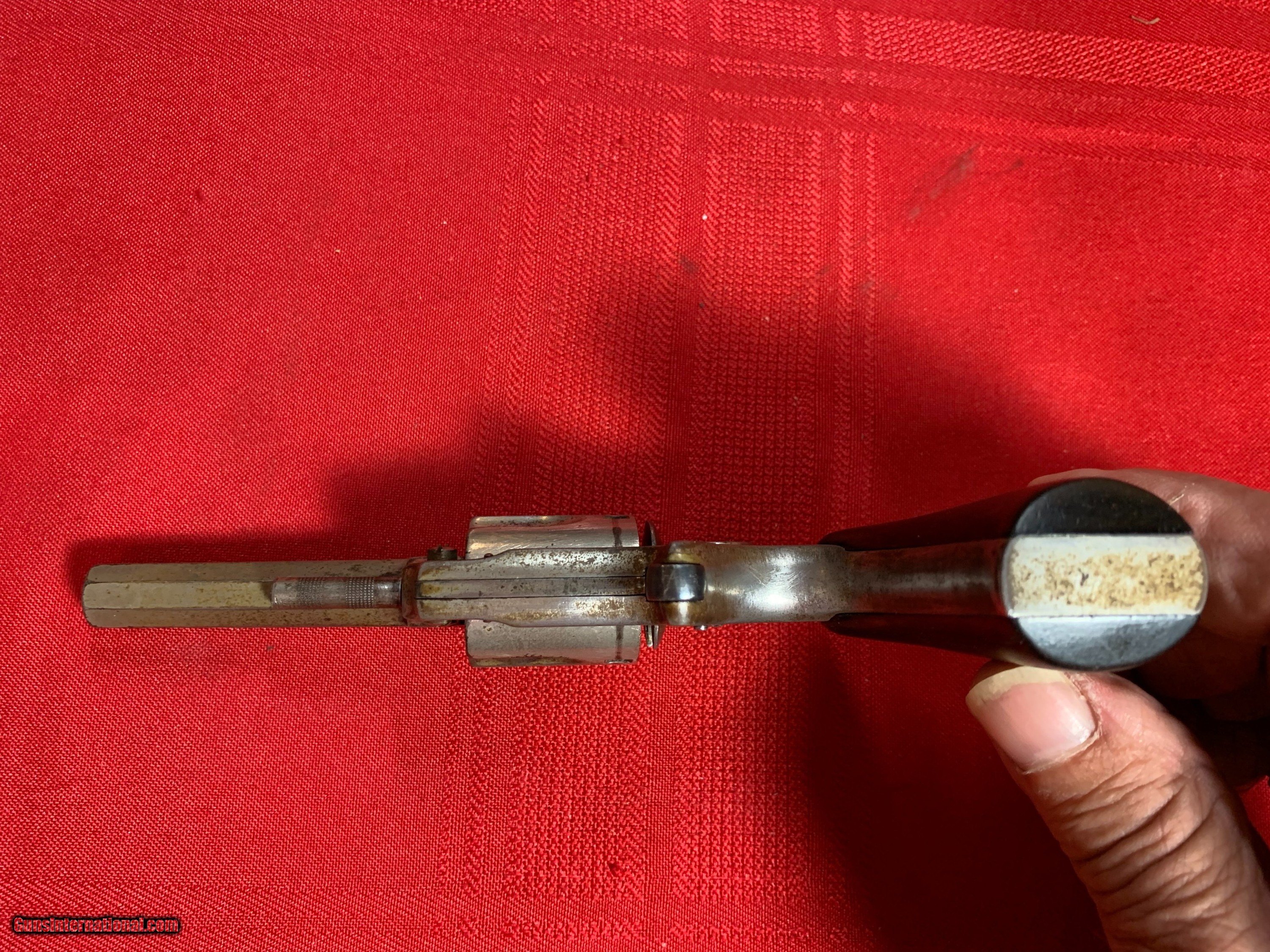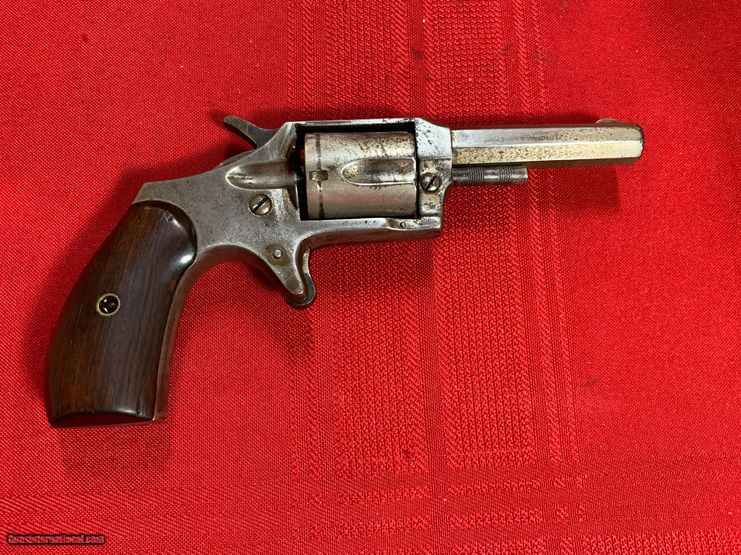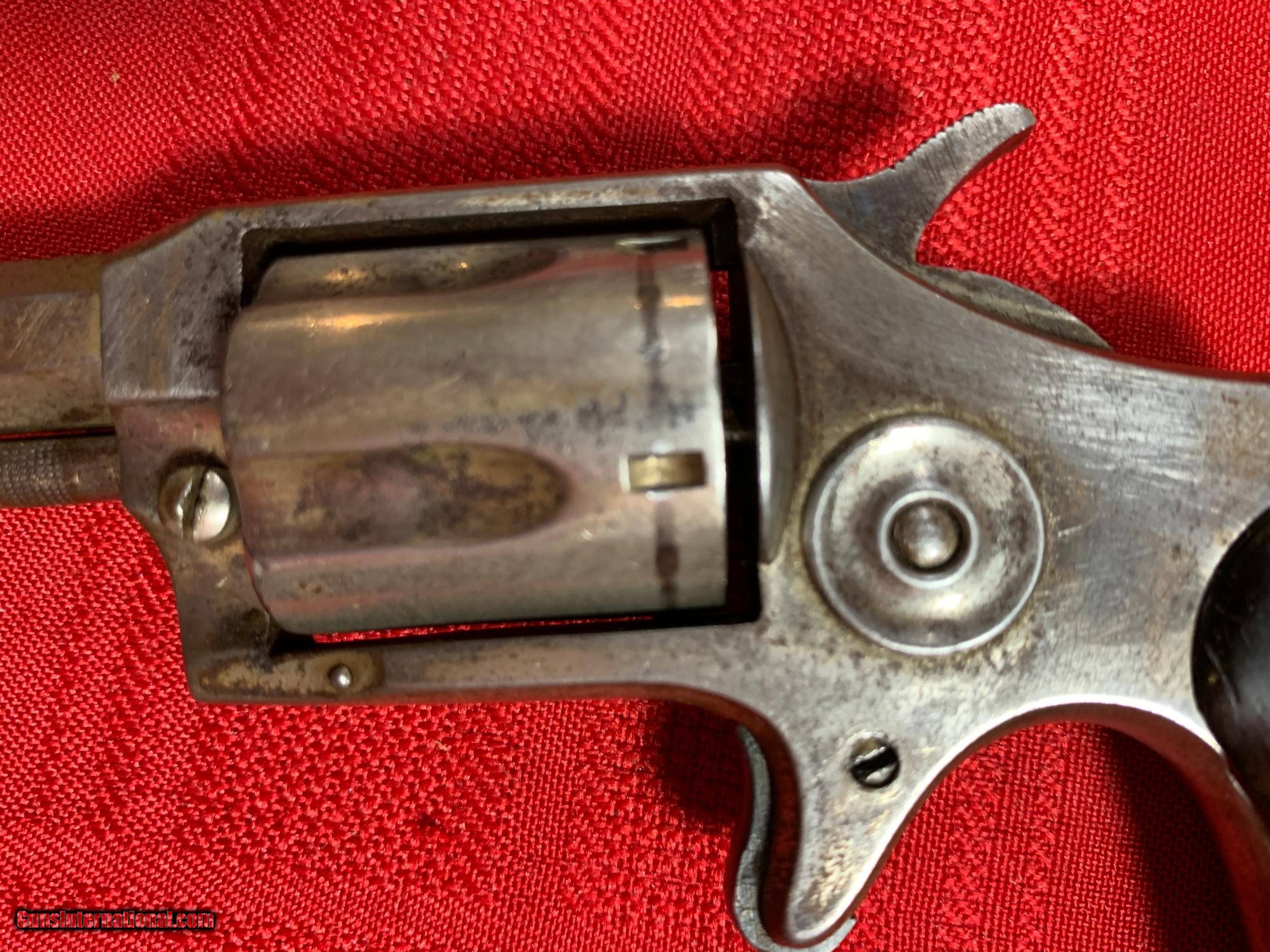 Description: 32 RF revolver made by Lee Arms Co. Wilks Barre, Pa. 5 shot, spur trigger. Functions. Woodgrips. Octogon barrel 2 3/4". Antique. SOLD Antique: Yes Handgun Caliber: .32 Rimfire |