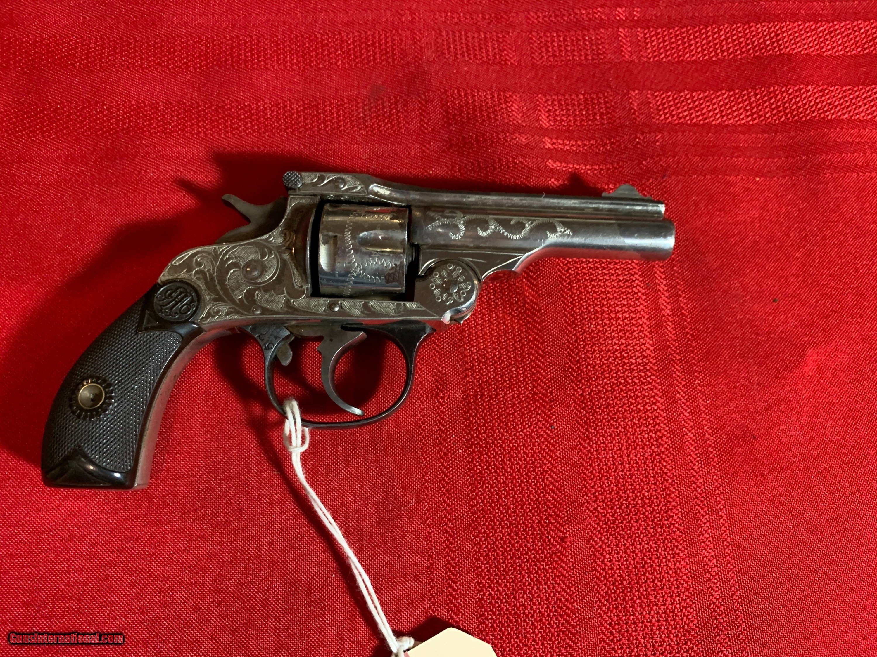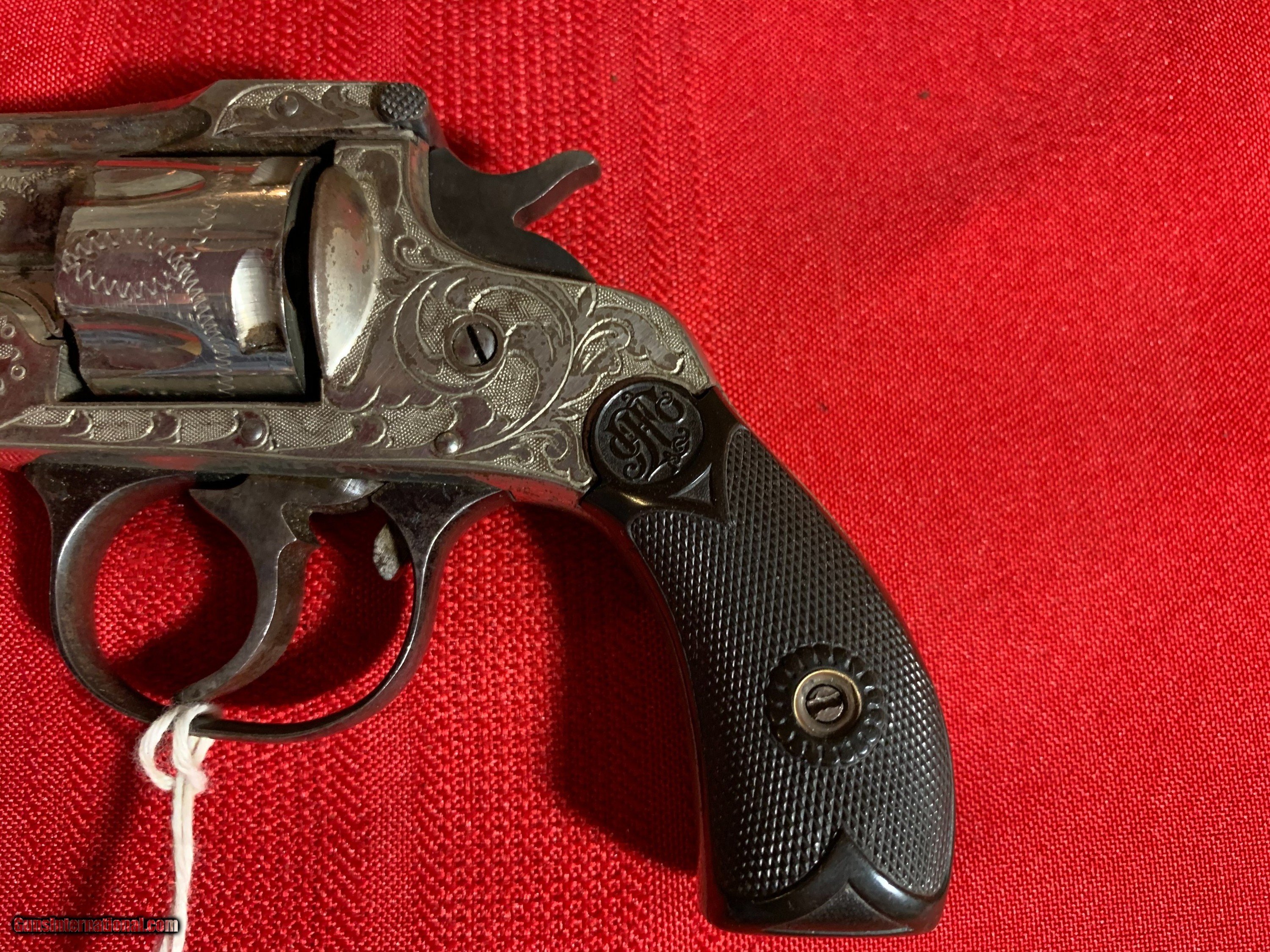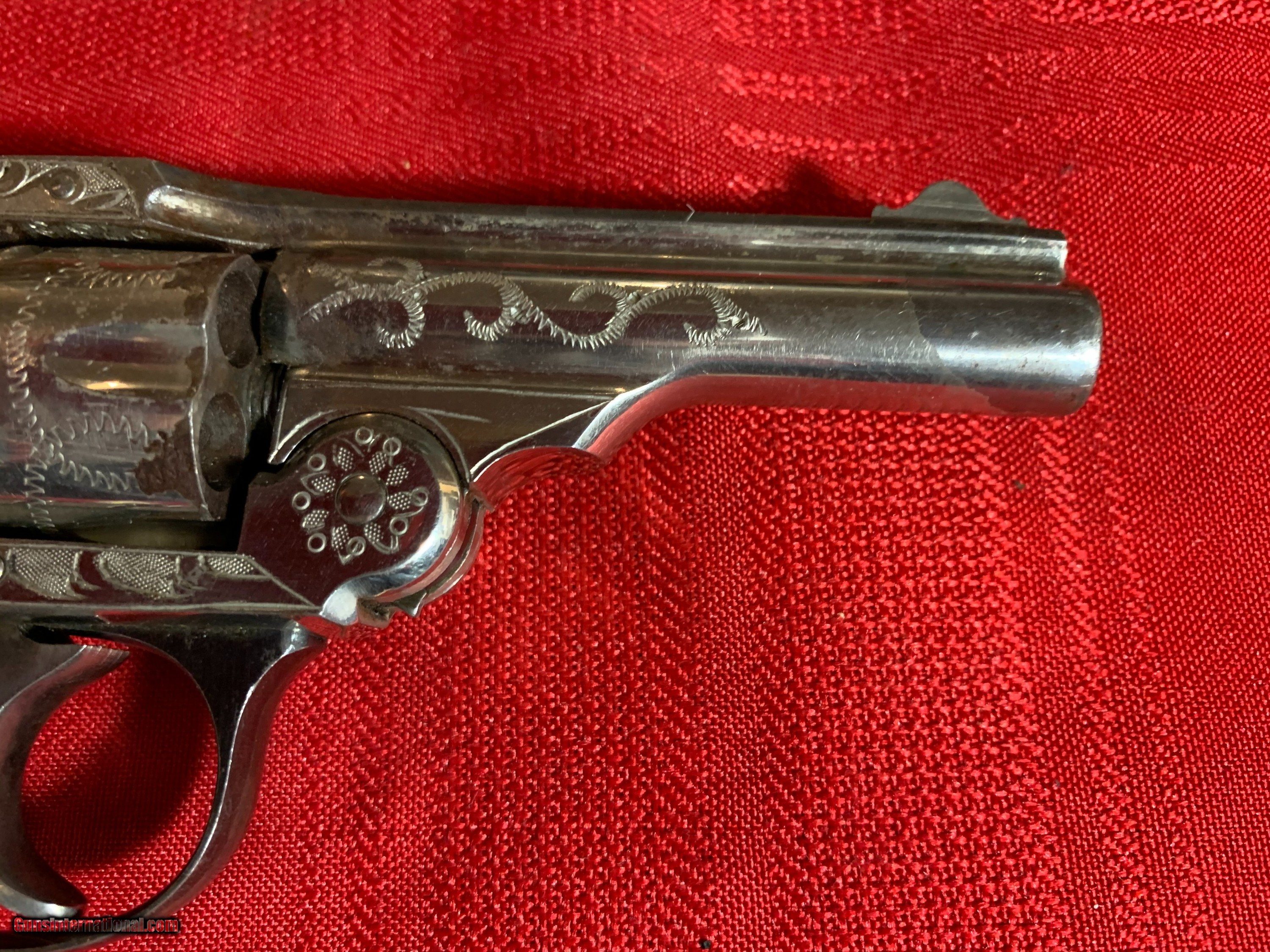 Description: 32 S&W Revolver. Nice nickel plating and engraving. Perfect grips. 3" barrel. Good mechanics. 5 shot. SOLD Curio/Relic: Yes Handgun Caliber: .32 S&W |