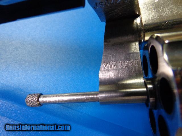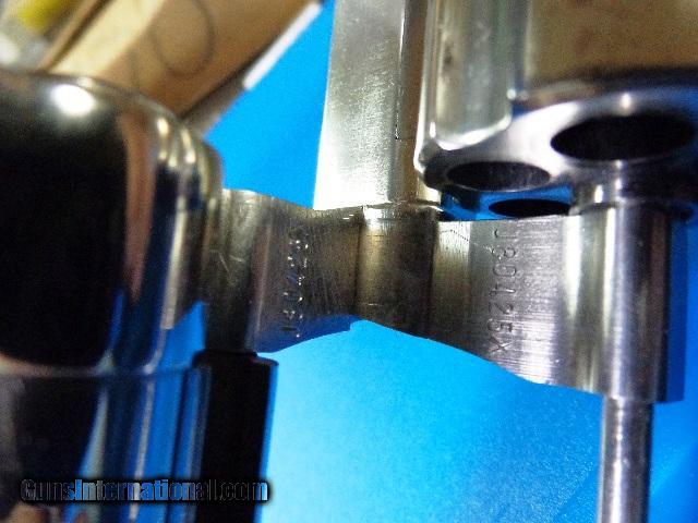 MK III 1969 - 1982 In the late 1960s, Colt began to be concerned with a decline in its market share because of price increases brought about by the high labor costs inherent in its manufacturing processes. In response, an entirely new product line of revolvers dubbed the MK III series debuted in 1969. Intended to be the first major advancement of Colt’s designs since the beginning of the 20th century, the MK IIIs used a new ‘J’ frame and had no parts interchangeability with older models. The new revolvers were considered groundbreaking as they were the first modern revolver designs to employ a state of the art transfer-bar lockwork system. This lockwork was not only more sophisticated, but inherently safer due to its superiority to the older hammer-blocking designs; the revolver could fire only if the trigger was deliberately pulled completely to the rear. It also vastly improved on the earlier design in durability, and offered the advantage of employing sintered iron internal parts rather than expensive forged ones. The sintered parts also allowed for improved fabrication tolerances, and could be given a special heat treatment resulting in a harder more wear-resistant composition. Using these parts virtually eliminated hand fitting, significantly lowering labor costs associated with the assembly and manufacture of the MK III line.[2] The springs used in the Mark III internals were also an improvement. Unlike the older flat style, they were coiled and made entirely of corrosion-resistant stainless steel.[4] The MK III series incorporated a number of models, several of which were updates of existing designs. Classic models included the venerable Colt Official Police chambered in .38 Special as the basic/entry-level offering, and the Trooper in .357 Magnum. SOLD Manufacturer: Colt Model: Trooper Mark III Serial Number: J80425X Caliber Info: .357 Chambers: 6 Condition: Very Good Metal Condition: Nickel |