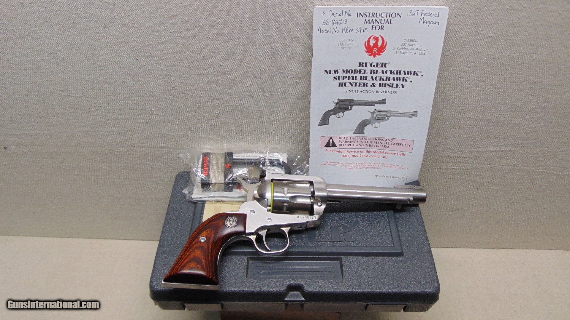 Description: Ruger NM Blackhawk,327 Federal Magnum,5-1/2"Barrel,Stainless Steel,8 Shot,Ruger Laminated Grips,New Unfired, In Correct Box with Papers, Scarce Only Made 2011-2012!! Store Hours-Thurs-Fri-10AM-8PM Sat-9AM-12PM All Other Times Please Leave a Message, Thank You! Lower 48 State Sales Only No California Sales 6% Pa Sales Tax Applicable Shipping $35.00 SOLD Handgun Caliber: .327 Federal Magnum Manufacturer: Ruger Model: NM Blackhawk Serial Number: 38-02013 Barrel Length: 5-1/2 |