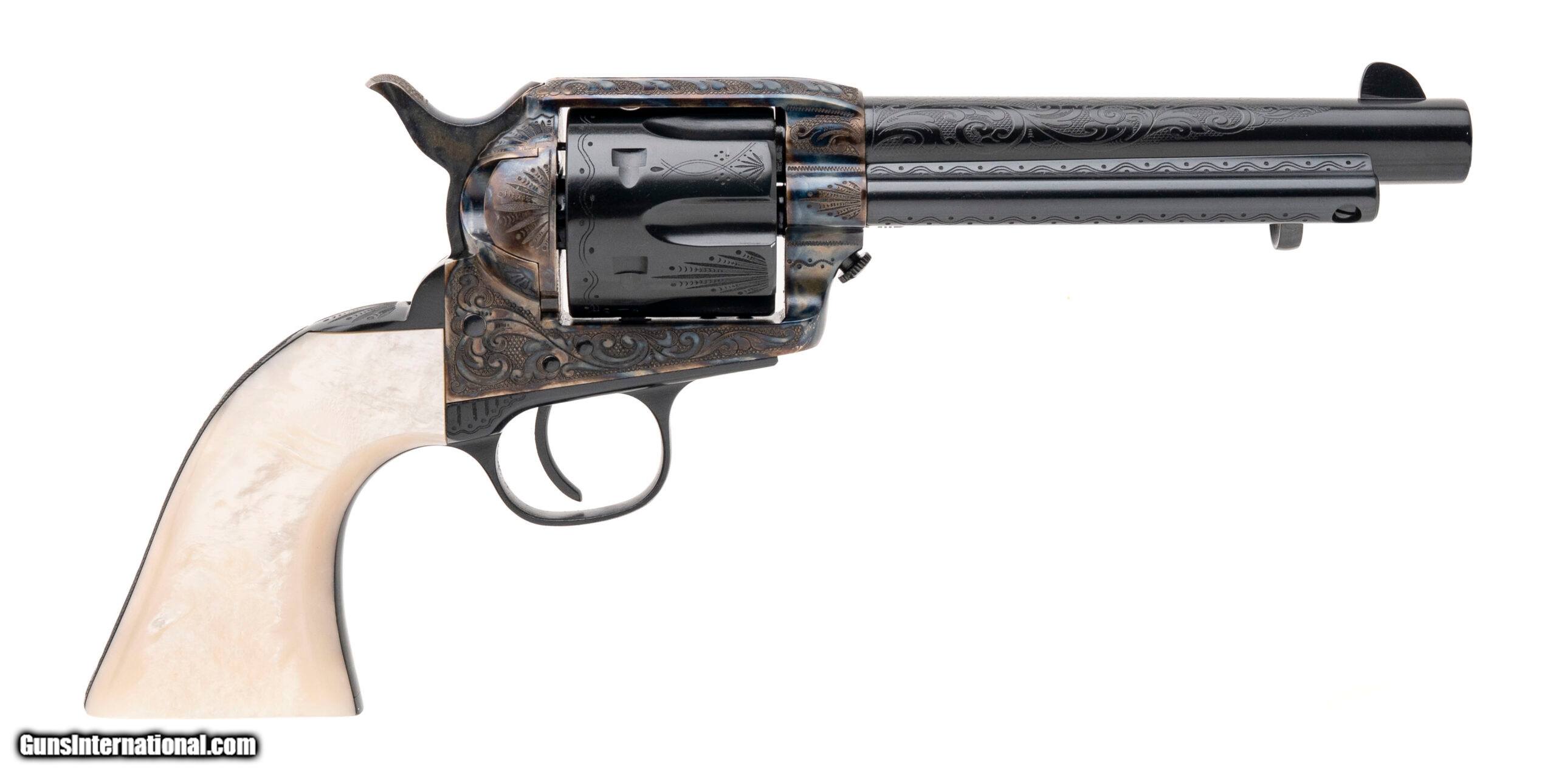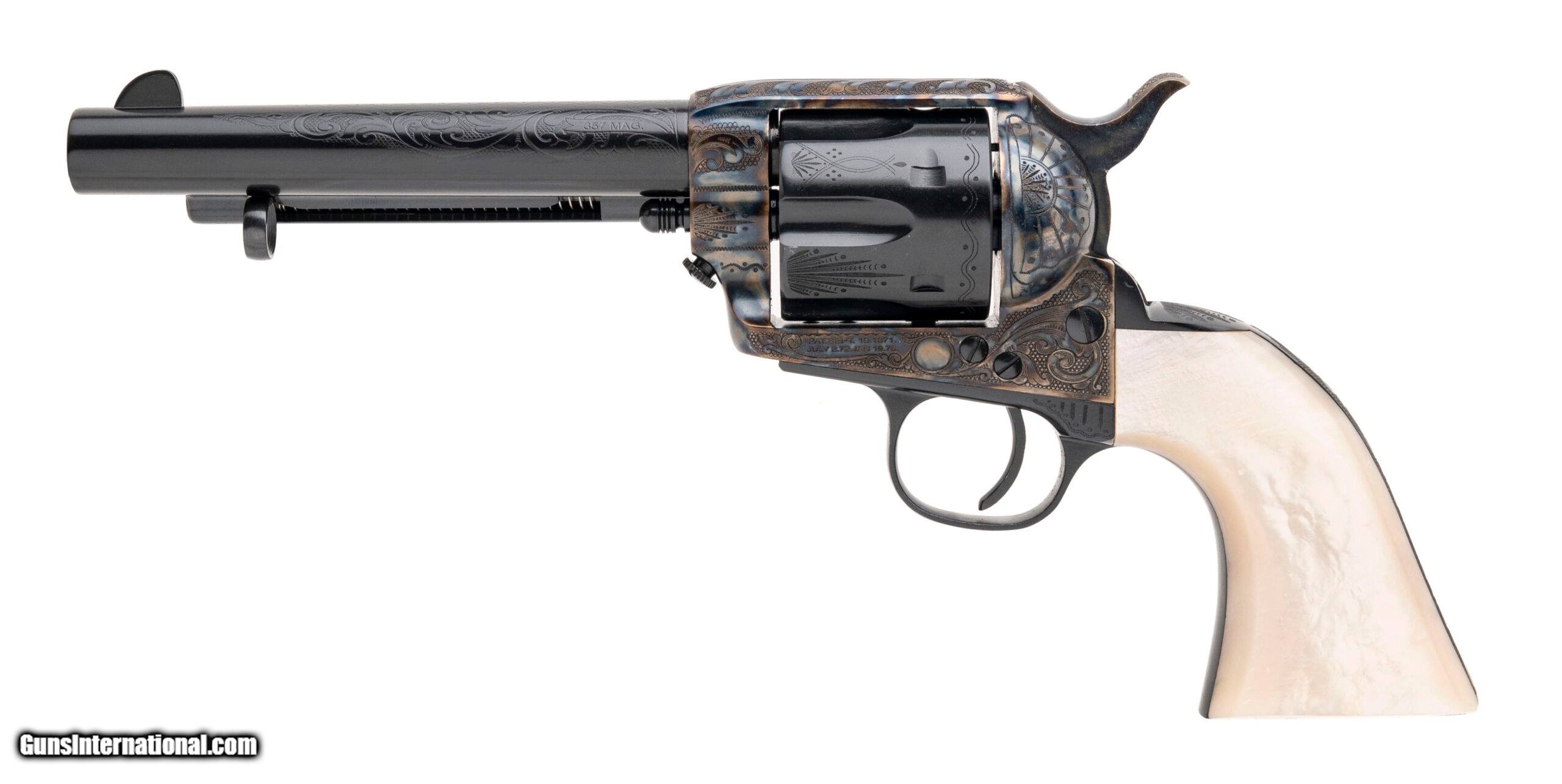 Description: "Serial No. K24947, Modern Production, .357 Magnum, 5.5"" round barrel. Single-Action Only Revolver with a 6rd Cylinder, Engraved Color Case-Hardened Frame & Blue Finished Barrel, and Beautiful Pearl Grips. NEW. UPC: 037084963273 (STOCK PHOTO) Price: $1,299.95 Contact Seller |