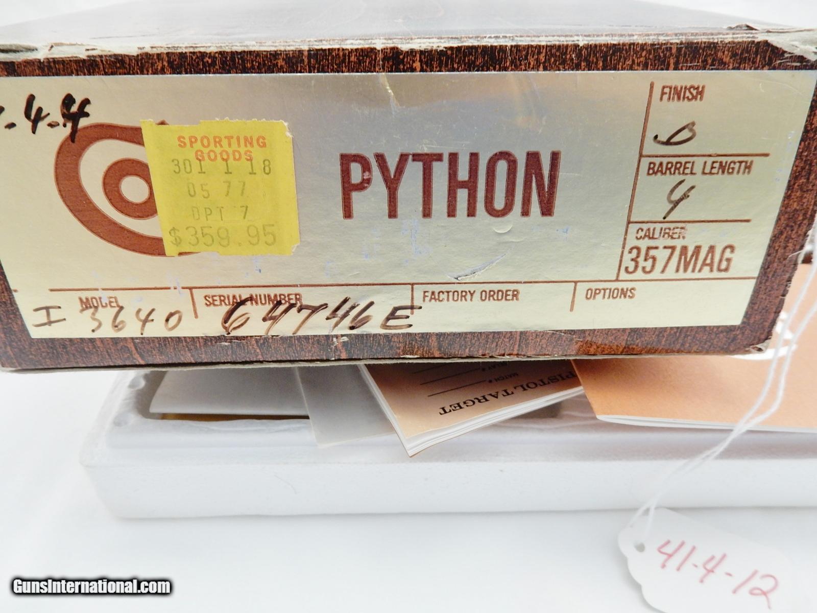 1977 Colt Python 357 4 Inch NIB
