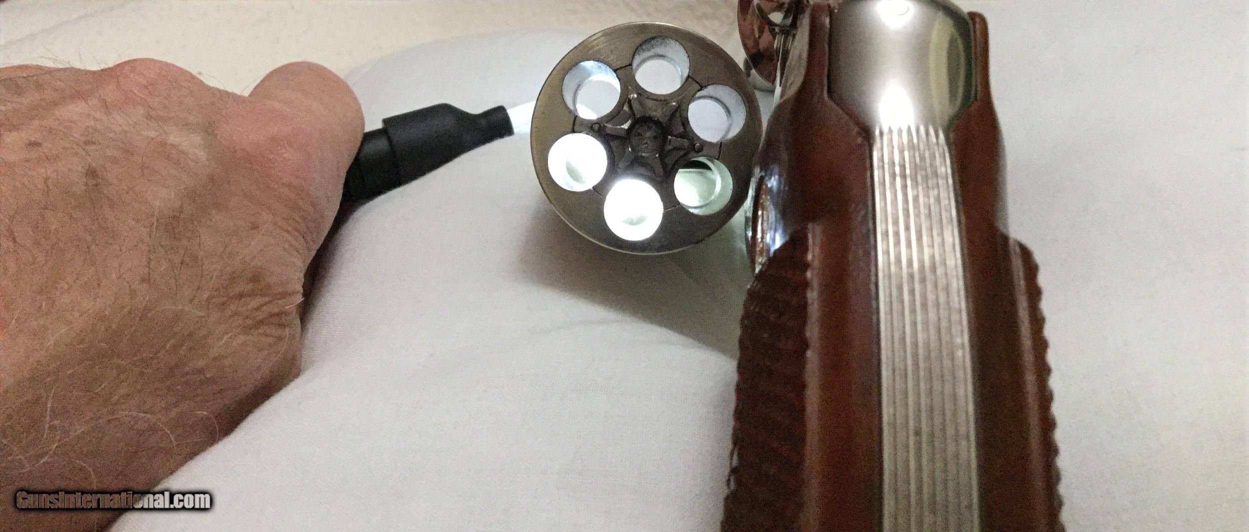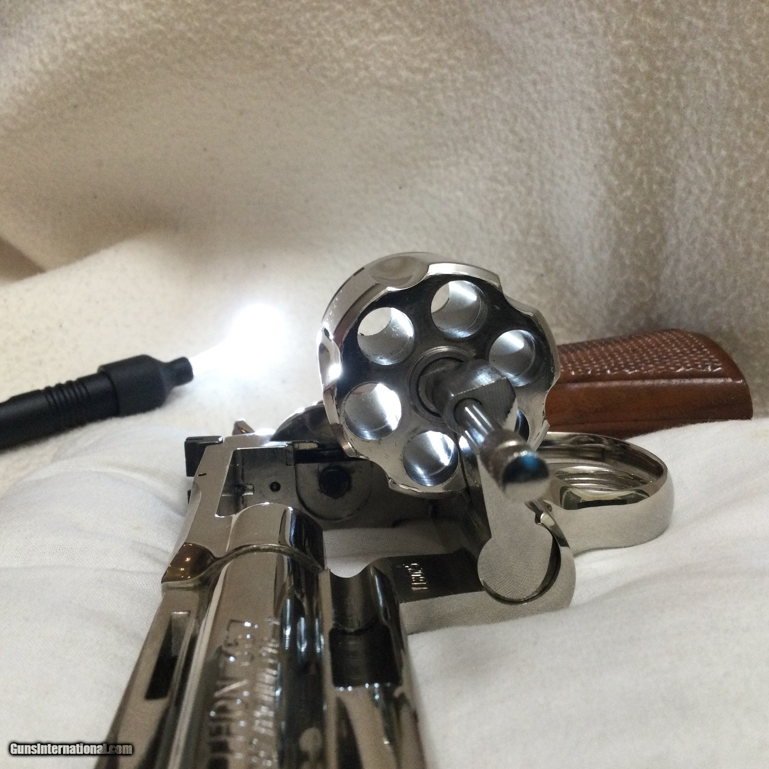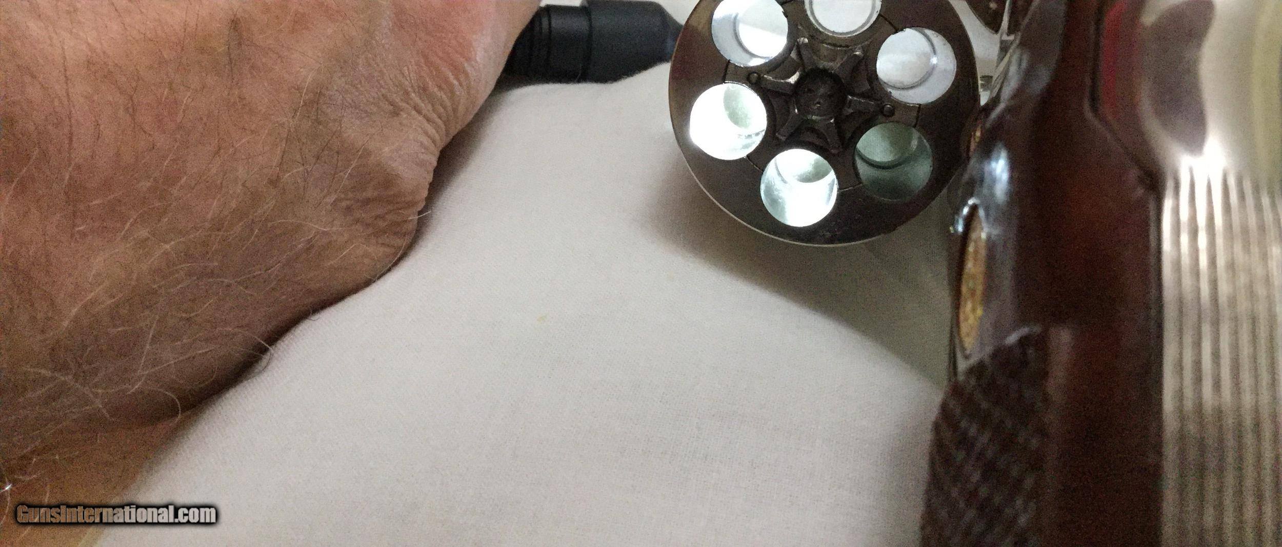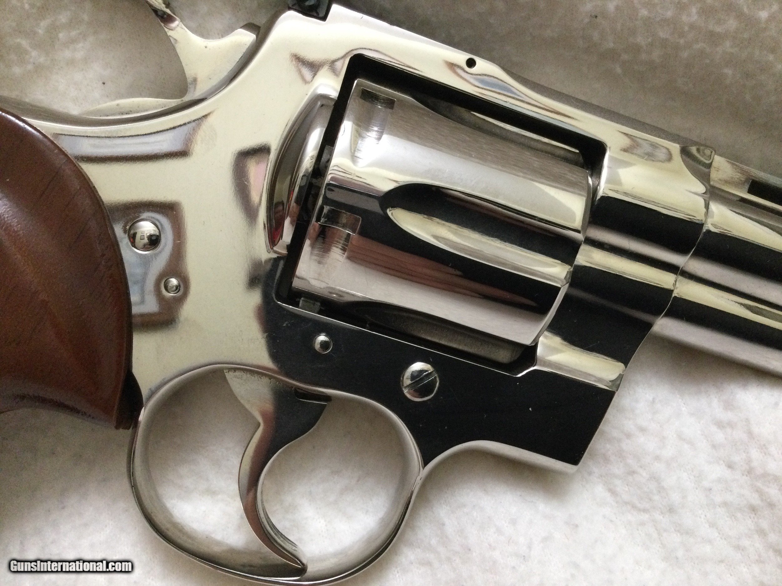 Description: Newly available this georgous Nickel Colt Python with a 6" barrel. Built in 1978 this beauty appears new with an almost indiscernible cylinder drag line and only faint signs of being handled. Please examine the pictures closely to see how nice this revolver is. We encourage you to compare this Colt to other listings. Emails and phone calls are welcome. Money orders preferred but personal checks are accepted but must clear before shipping. Thank you for your interest. SOLD Handgun Caliber: .357 Magnum Manufacturer: Colt Model: Python Serial Number: V18025 Condition: Beautiful Revolver Wood Condition: Very nice stocks Bore Condition: Pristine bore and cylinders |