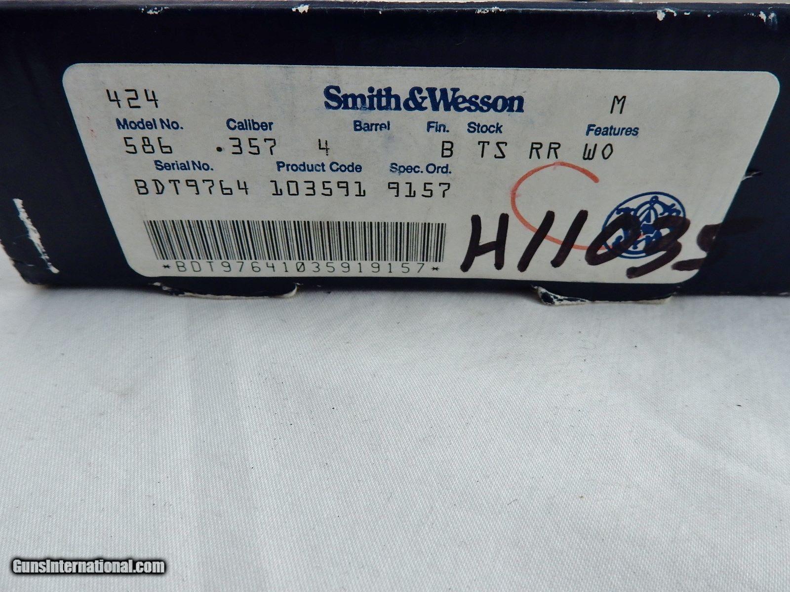 Description: This is a Smith Wesson 586-3 357 with a 4 inch barrel. This gun has a factory bead finish with only 2500 made. Gun is 99%+ in the box. Serial # isBDT97xx. Buyer pays 35.00 shipping. Thank you. 43-5-16 SOLD |