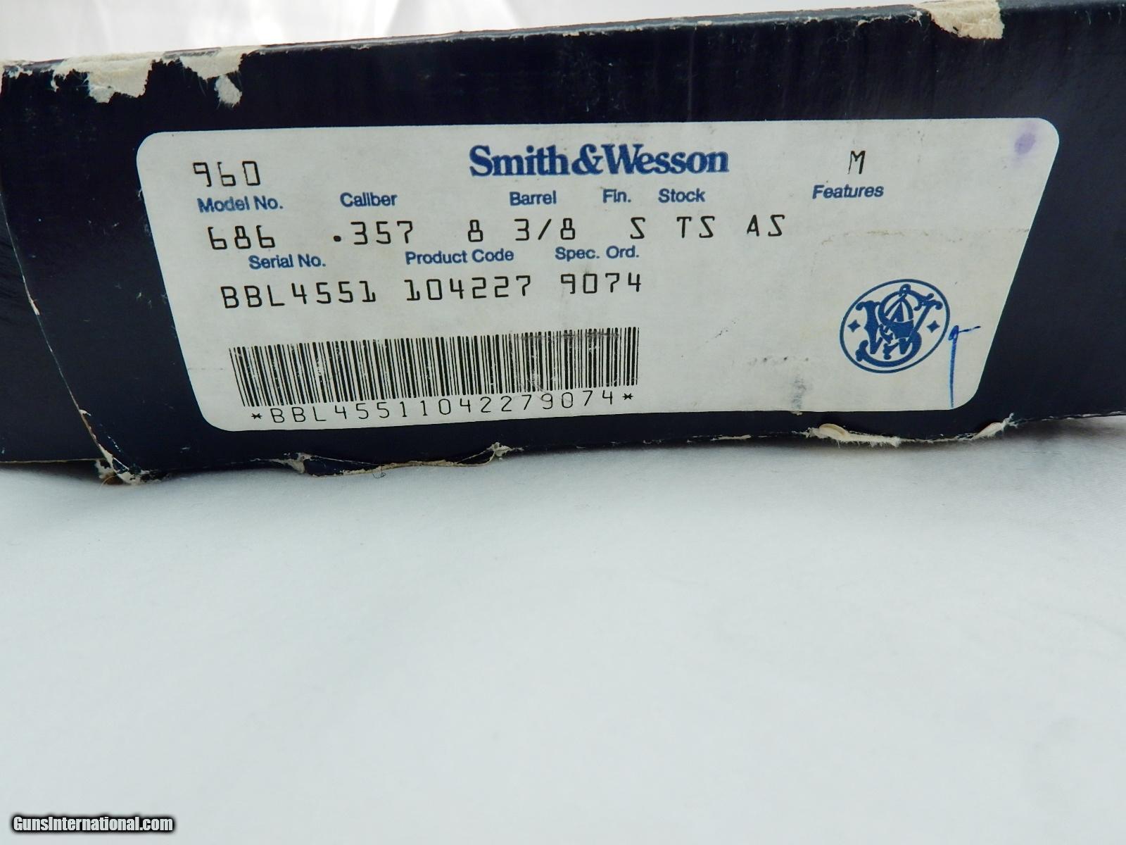 Description: This is a Smith Wesson 686-3 357 with a 8 3/8 inch barrel. This gun is 99%+ in the box. Box in poor condition. Serial # is BBL45xx. Buyer pays 35.00 shipping. Thank you. 39-18-13 SOLD |