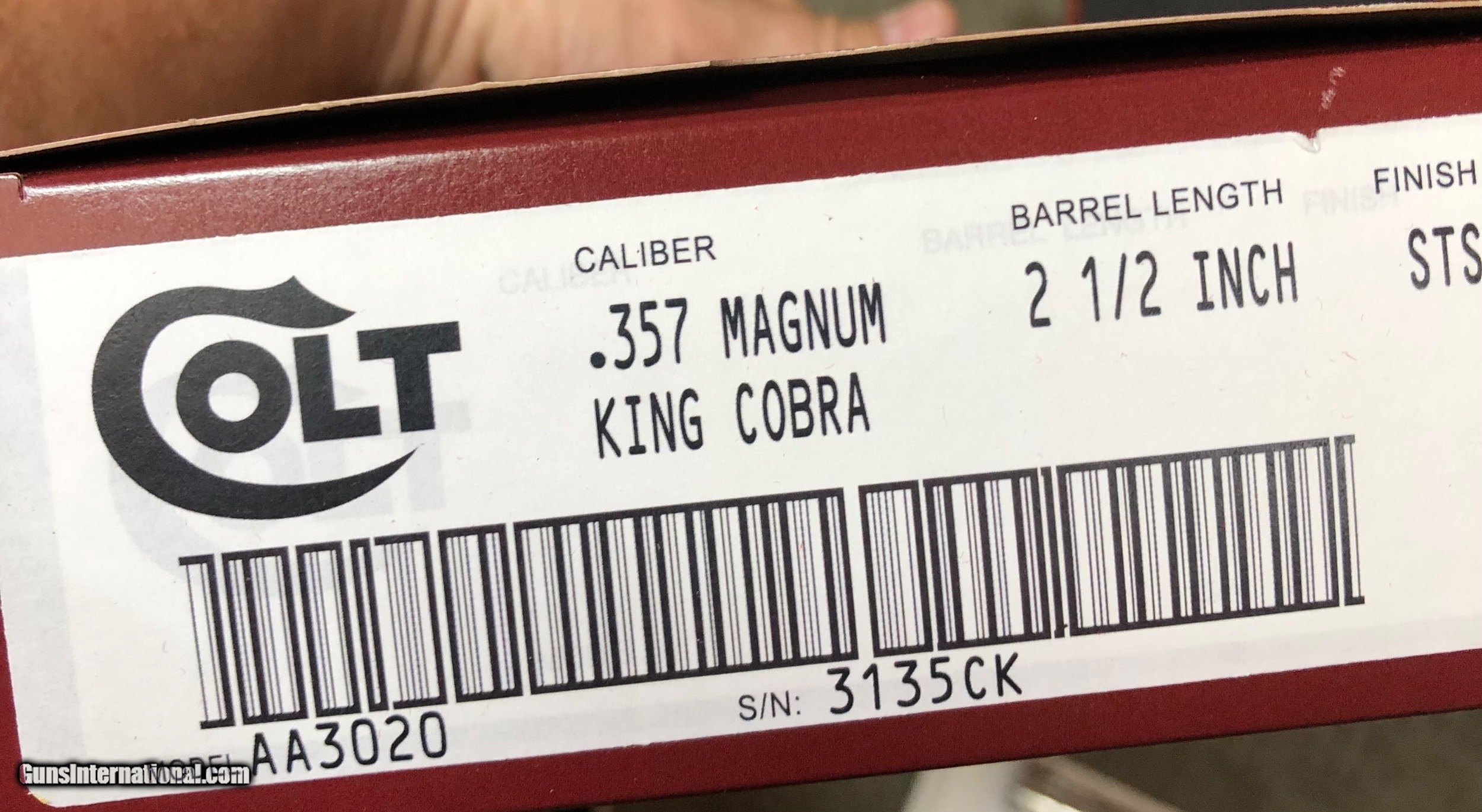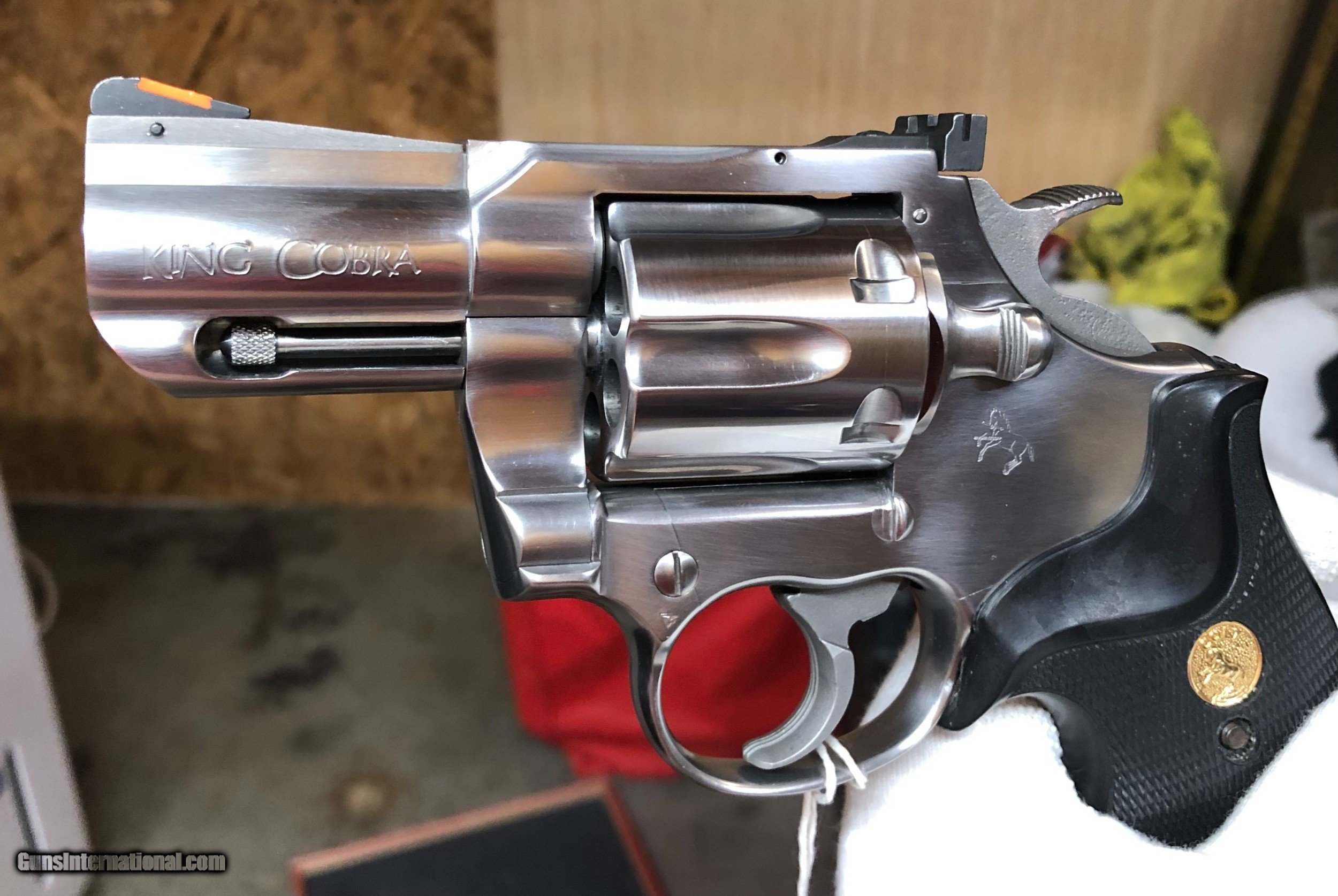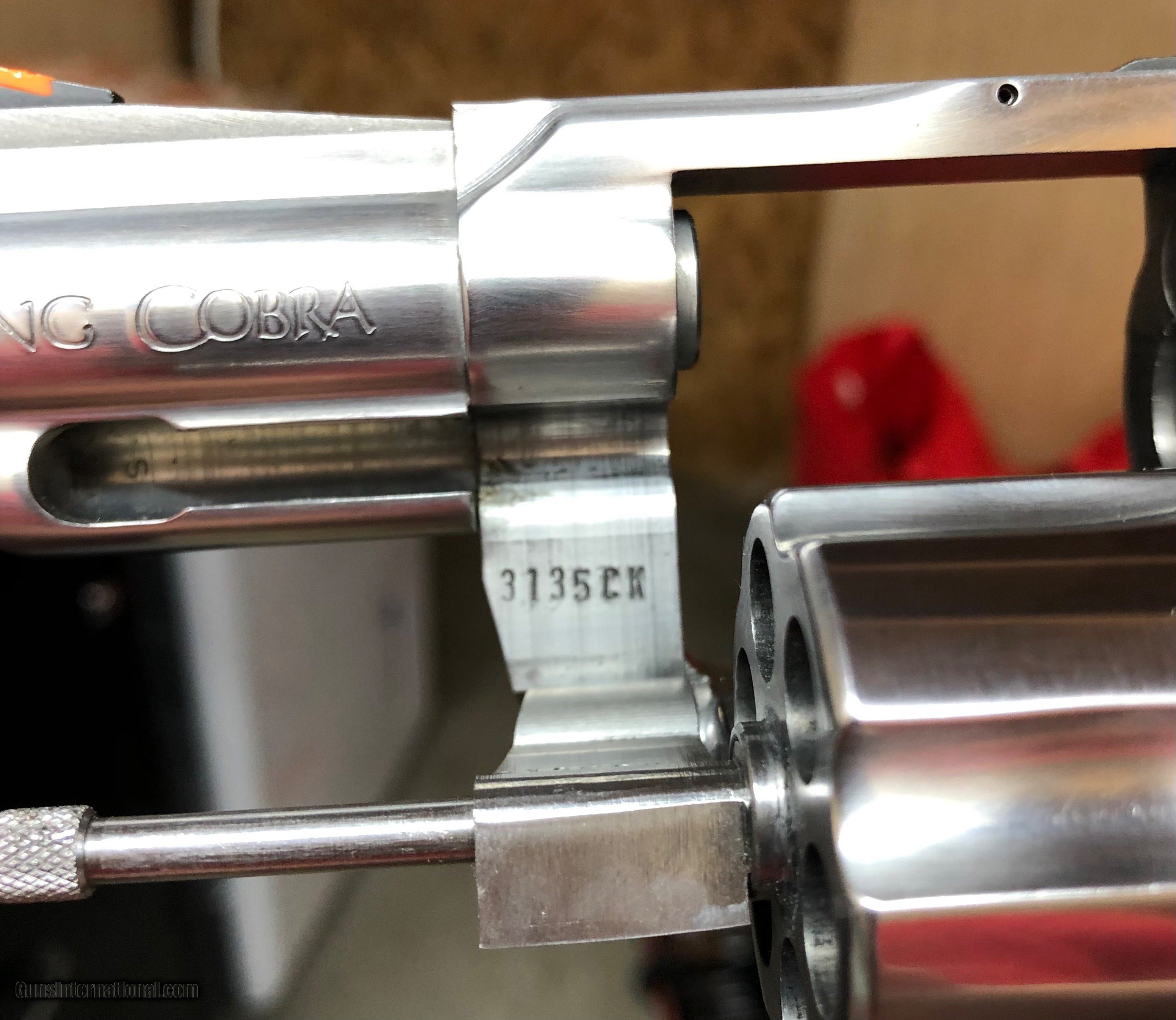 Description: Few guns have the "wow" factor like a 2 1/2 inch stainless king cobra. This stainless 357 magnum has the original numbered box, foam sleeve, and papers. Target sights and grips. Gun has been shot but not much, almost invisible turn line. Just an incredible piece. Please email with questions. Shipping included (west coast add $75). Cards add 3% SOLD Manufacturer: Colt Model: King cobra Barrel Length: 2.5 inch Condition: Used Metal Condition: Excellent Bore Condition: Excellent Action: Da, sa Finish: Stainless Sights: Target Manufacture Date: 1988 Case: Yes Item Location: 37075 |