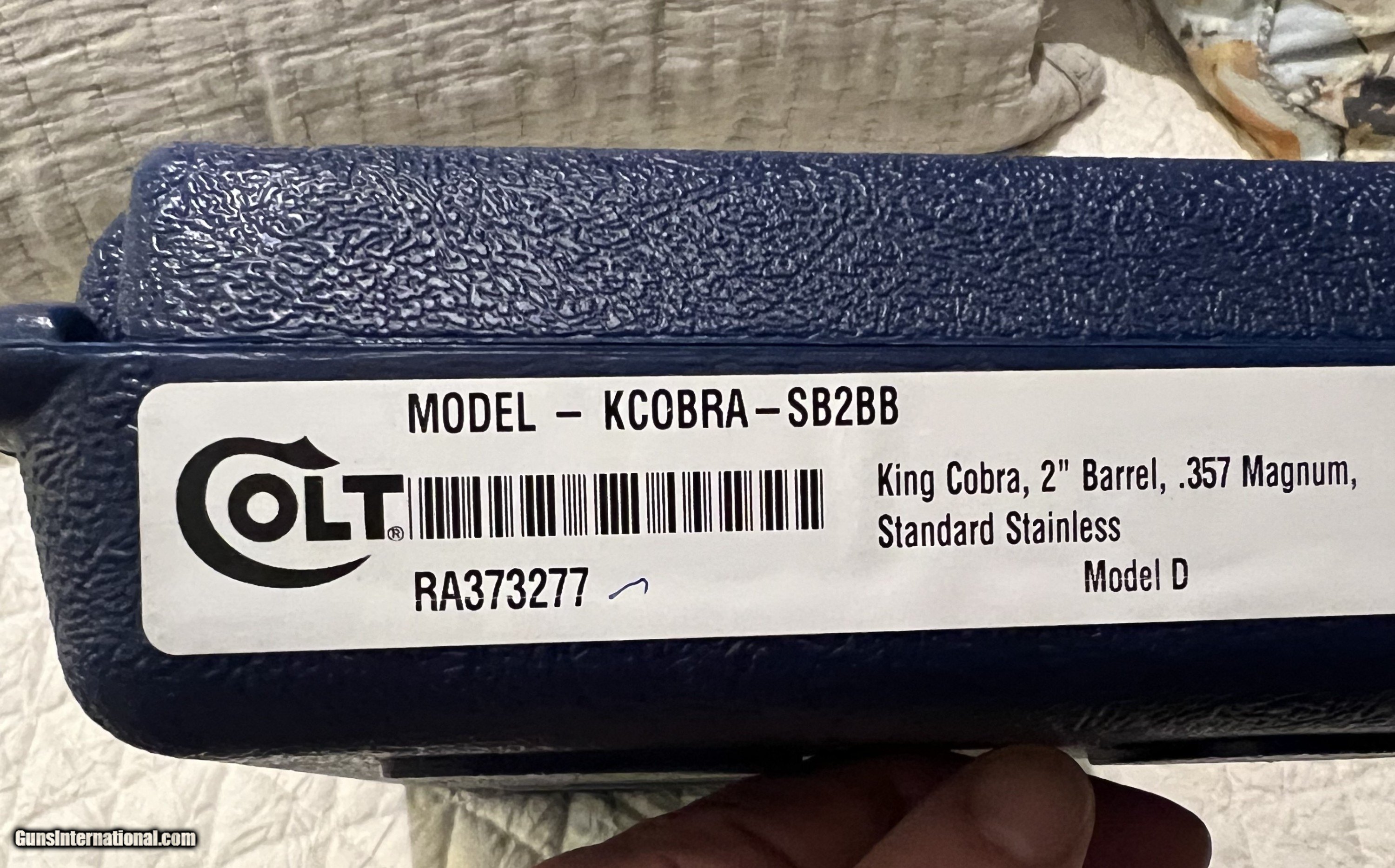 Description: "As New" King Cobra (purchased new in 2024). Only Six test rounds fired! Spent the past 18 months in my temperature controlled safe. Includes original case and instruction booklet. Insured shipping paid by seller (west cost add $75.00). Handgun Caliber: .357 Magnum Manufacturer: Colt Model: King Cobra Serial Number: RA373277 Barrel Length: 2.125 Condition: New Metal Condition: New Bore Condition: New Action: sa & da Finish: Stainless Steel Weight: 26 oz Manufacture Date: 2021 Case: Colt Item Location: Mt Pleasant, SC Grips: rubber (Colt) Price: $875.00 Contact Seller |