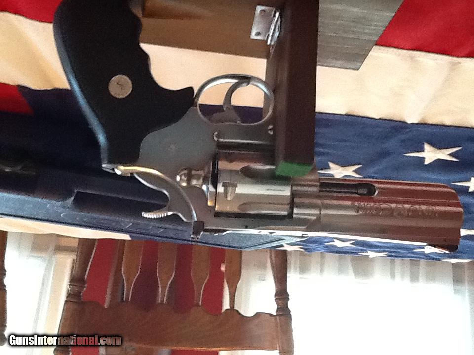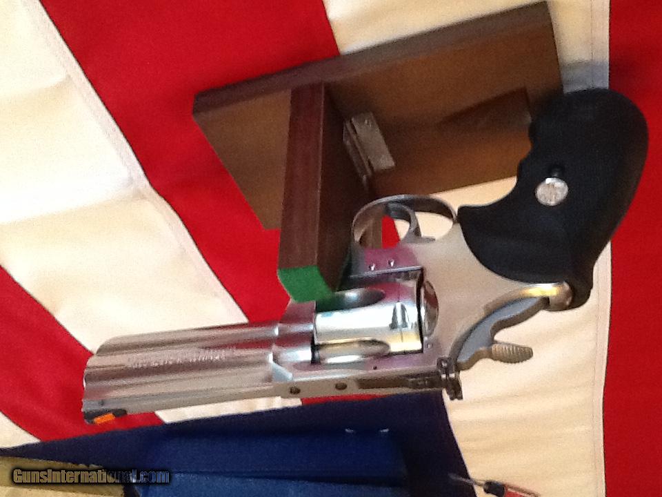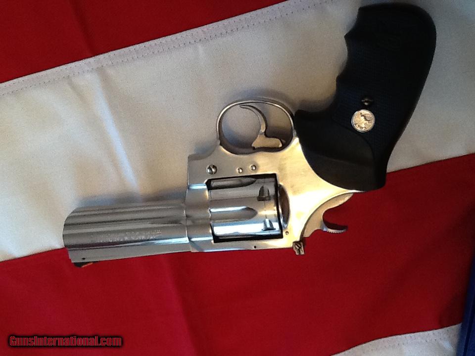 Description: 1997 colt king cobra sts 4" drilled and tapped,modelAA3040EDT enhanced,adustable rear sight,red ramp front,has been fired,not much ,has drag line on cylinder,small scratch on top of barrel,just below the front sight,only detraction,action smooth and crisp,lock up tight,bore bright and shiny,its been taken good care of,has been a safe queen for decades,original grips,also perfect,blue colt case,not original to gun,plus all paper workFFL to FFL only,1700.00 plus 45.00 ins ship ps adding a kydex,felt lined holster with speedloader pouch SOLD Manufacturer: colt Model: AA3040EDT Serial Number: k58172 Caliber Info: 357 Chambers: 6 Condition: excellent Finish: matte stainless Manufacture Date: 1997 |