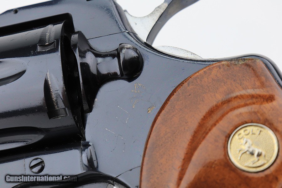 Description: This is a very nice, original Colt Python from 1975. It has about 93-94% of the original blue remaining with most of the wear on either side of the muzzle, and a little more along the underside. Unfortunately, there are also thin initials scratched near the cylinder release latch. Minty bore. Proper timing/lockup. Excellent wood grips. SOLD Handgun Caliber: .357 Magnum |
