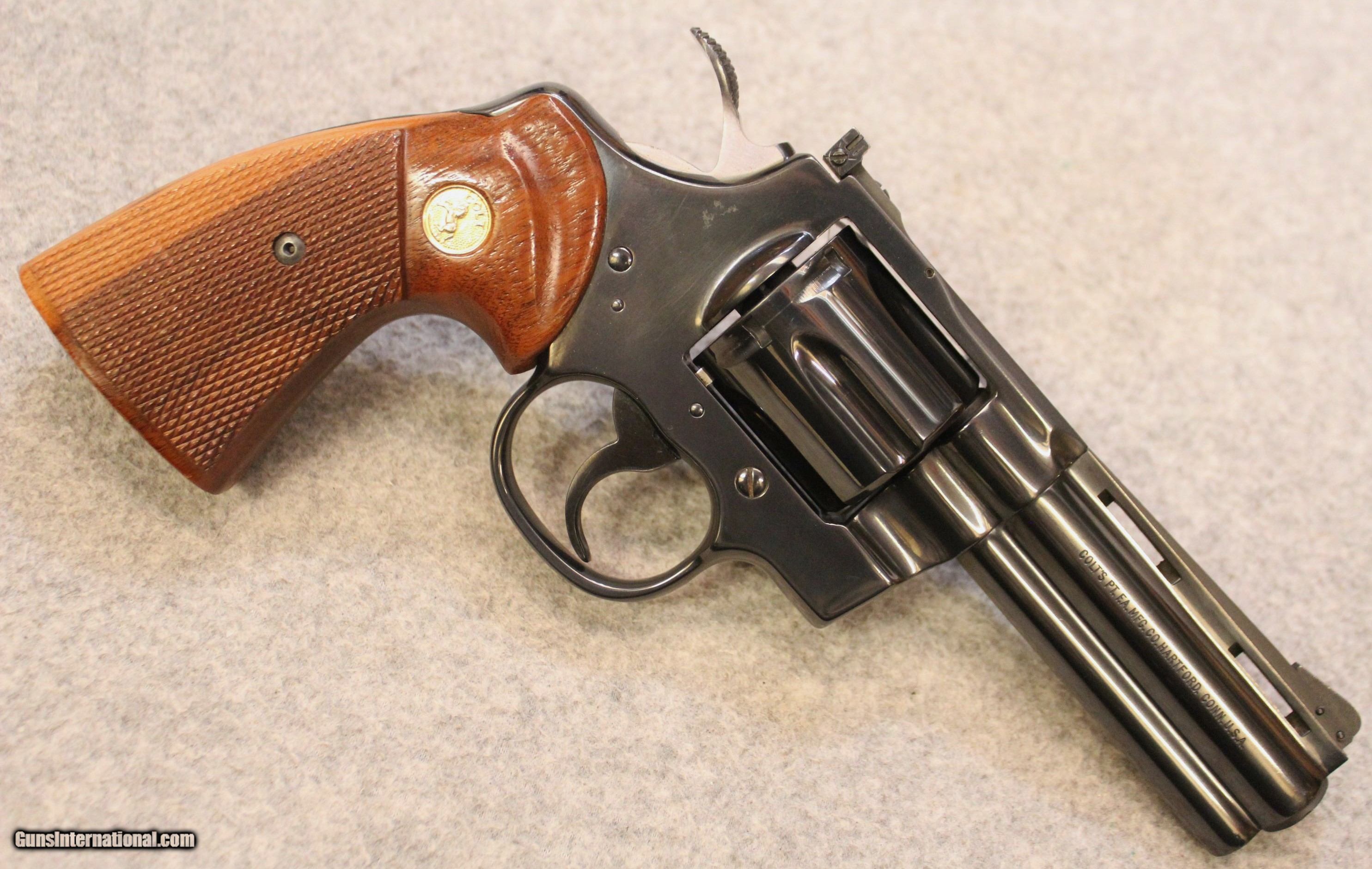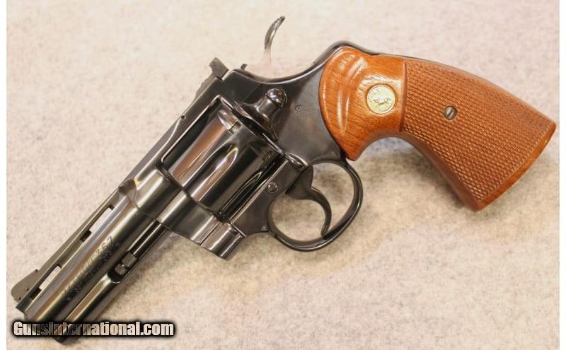 Description: This Colt Python chambered in .357 Mag features, blued finish, DA/SA trigger, vented ribbed barrel, and Colt wood checkered grips. .357 Magnum Metal Condition: Great Wood Condition: Great Bore Condition: Bright Barrels: 4 Weight: 2.4 lbs. Item Location: Hoffman Estates, IL Price: $2,349.99 Contact Seller |