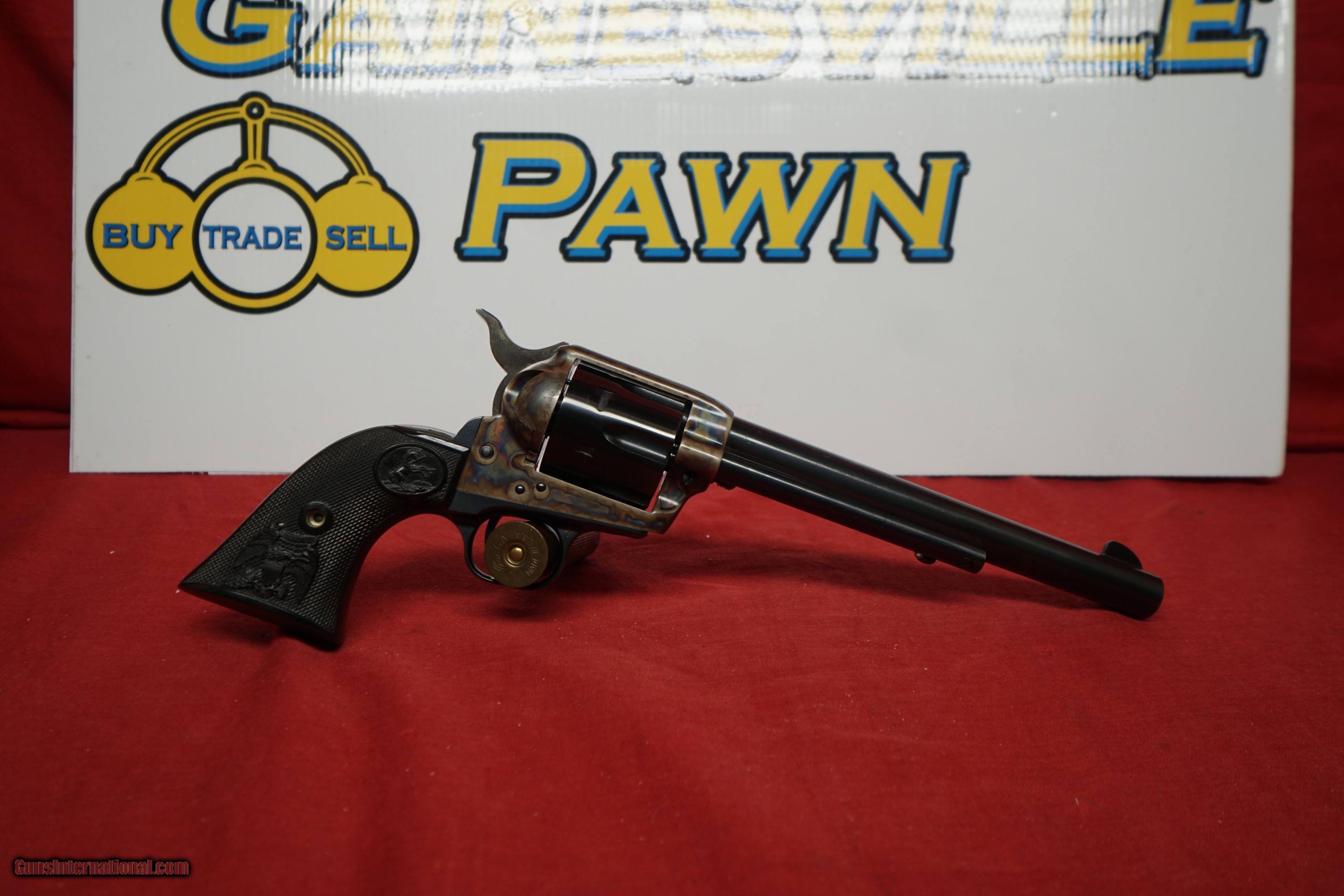 Description: Another great item from Gainesville Pawn! Up for sale is a Colt Single Action Army 3rd Gen. This gun is chambered in 357 Magnum. This gun is in very good condition with some minor signs of wear present. This pistol comes with the factory box. The bore of this pistol is shiny with good rifling. Please see photos. *Please be aware that all items are sold “AS IS”. Ask questions BEFORE buying.Feel free to call us at our store (352) 240-6452 or email us at gainesvillepawn(at)gmail(dot)com with ANY questions. We do not accept trades or offers through through Guns International We only entertain trades and offers through our store. $35 shipping and handling. Insurance extra. We only accept USPS money orders and major credit cards for payment. 3% convenience fee for credit cards. WE collect Florida state sales tax for in state sales. Please be aware that this item is for sale in our store as well as the occasional gun show so it may be sold at any time. YOUR DEALER MUST EMAIL US A SIGNED COPY OF THEIR FFL TO gainesvillepawn(at)gmail(dot)com BEFORE WE SHIP ANY FIREARM. Please check us out at Gainesvillepawn.co for a full selection of our firearms SOLD Handgun Caliber: .357 Magnum Manufacturer: Colt Model: SAA Serial Number: SA05676 Barrel Length: 7.5 inches Condition: Very good Metal Condition: Very good Wood Condition: Very good Bore Condition: Very good |