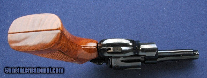 Description: This 3 1/2" 27-2 is in high excellent condition overall. Tight lock up, just a little high edge wear, mint oiled bore and cylinders, gorgeous grips. Red ramp front sight, factory white outline rear. Service width hammer and trigger. Custom cased with a couple of speedloaders. Sorry no original box or papers. $55 shipping to the lower 48, 3% surcharge for using a CC. If you choose to pay with a personal check, we will hold the item for up to 10 days to make sure that it clears. Please expedite such pymts as we will hold an item on your word for 5 days. SOLD |