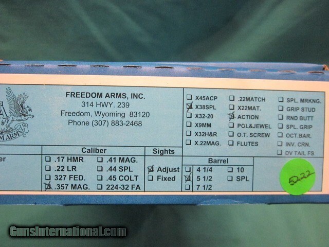 Freedom Arms Model 97 Premier DUAL cylinder .357mag/.38 special 5 1/2" new in box