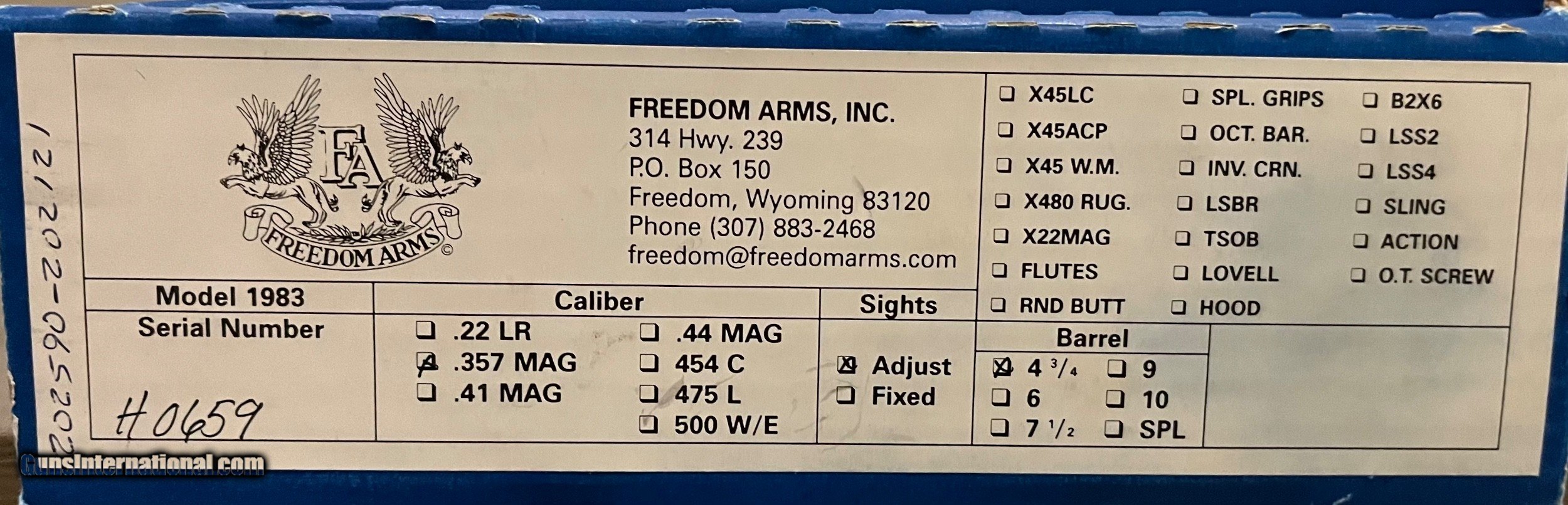 FREEDOM ARMS PREMIER 83 .357 MAG. (NIB)