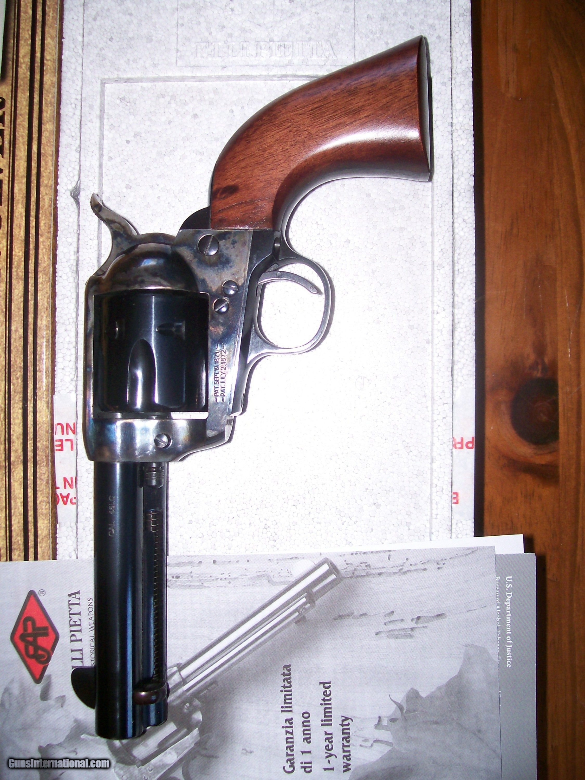Description: a pietta great western 45 colt with 4&3/4 inch barrel this gun is as new having been shot less than 50 rounds, bore and everything is mint,very nice smooth action and trigger. in original box with all paper work and come with a nice clean set of dies in 45 colt. the dies are lee and on bonanza making a 4 die set lee carbide size die,lee powder thru expander lee seating crimp and a bonanza seat&crimp ! no sales to any restritive state or calif. shippind from my dealer to yours for $25.00 sale pending SOLD |