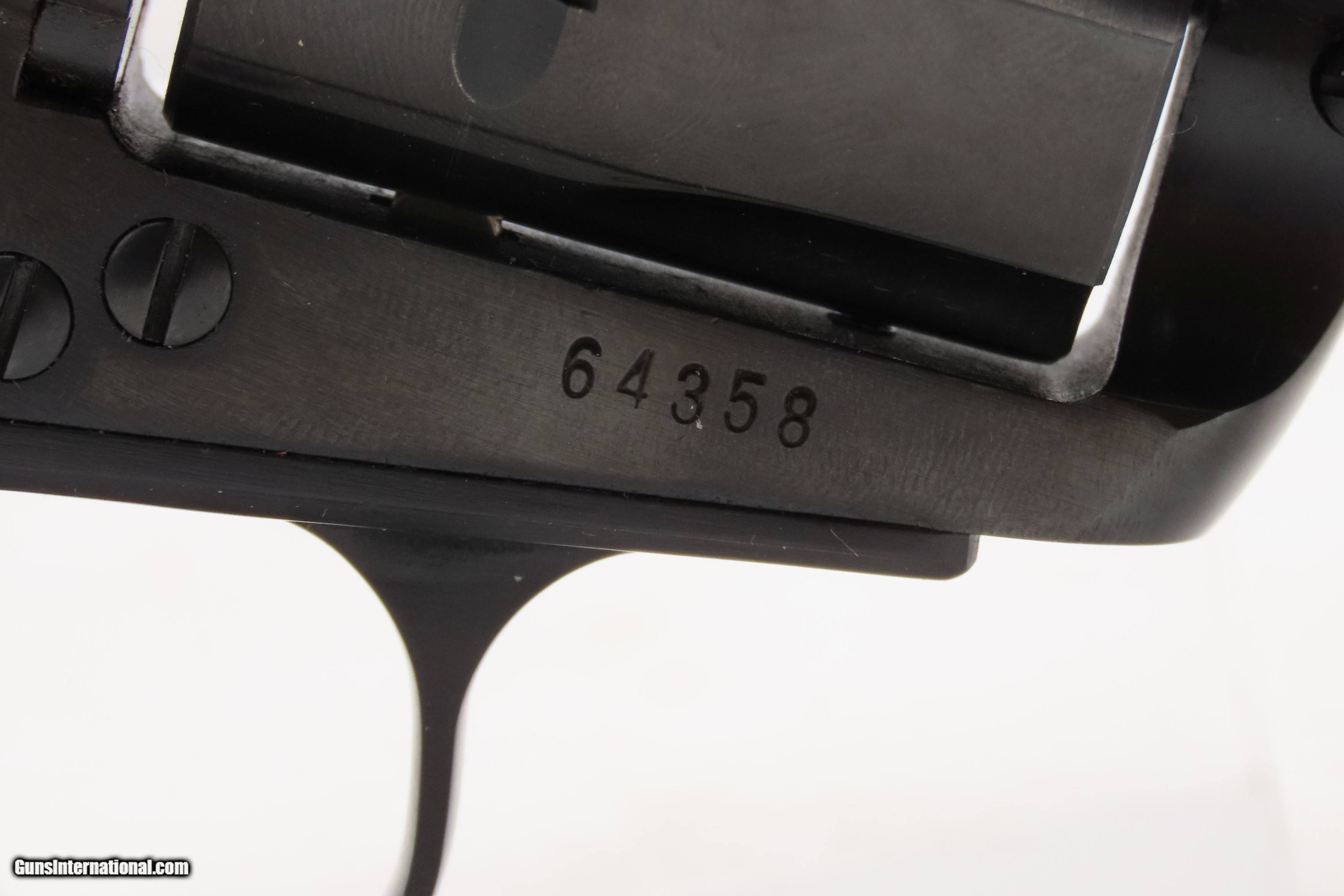 Description: MATCHING Factory Boxed RUGER BLACKHAWK .357 MAGNUM Six-Shot Revolver C&R Desirable “THREE-SCREW” Design with STAG GRIPS Here Ancestry Guns presents a C&R Ruger Blackhawk Revolver made by Sturm, Ruger & Company chambered in .357 Magnum, made in Southport, Connecticut in 1965. In the early 1950s, Westerns were popular in movies and television. Colt had discontinued the iconic Single Action Army prior to World War II, and few single-action revolvers were available to meet market demand for cowboy-style revolvers. In 1953, the new firm of Sturm, Ruger & Company introduced the Ruger “Single-Six”, a .22 Long Rifle rimfire single-action revolver. The Single-Six proved to be a popular seller, leading Ruger to develop and market a centerfire revolver similar to the Single Action Army, which thy labeled the “Ruger Blackhawk”. Ruger introduced the Blackhawk in 1955 and chambered it with the powerful .357 Magnum cartridge. The Blackhawk was a simple and strong design, and it sold well. In 1956, as Smith & Wesson was introducing the new .44 Magnum, Ruger quickly developed a variant of the Blackhawk in the new cartridge. Ruger achieved wide popularity with this firearm. The Blackhawk was both cheaper and more readily available than the Smith & Wesson Model 29 revolver. Interestingly, according to popular legend, Ruger was able to field a .44 Magnum revolver at nearly the same time as Smith & Wesson due to a Ruger employee finding expended .44 Magnum cartridge cases at a scrapyard and deducing that Smith & Wesson was about to launch a new cartridge. The Blackhawks made between 1955 and 1962 are known today as the "Flattop" models, because their adjustable rear sights were not protected by "ears" extending up from the frame as later became standard. From 1962 through 1972, Ruger made the "Three Screw" Blackhawk in various calibers, so called by the number of screws visible on the side of the revolver. This example comes with the factory box that is hand numbered to match, along with the manual, additional parts, and an extra set of grips. The overall condition is excellent. Robust action. Original finishes. Bright bore with crisp rifling. Markings are sharp. Solid replacement stag rips, and the original wooden grips are included. Fine original factory box. Own the original! This firearm is classified as a Curio & Relic. Barrel is 4-5/8 inches. Caliber: .357 Magnum Overall condition as seen in photos. Very Fast. Very Safe. FREE SHIPPING. Will need to be sent to your local FFL or C&R licensee. This firearm is classified as a Curio & Relic. $1450 #259776 Curio/Relic: Yes Price: $1,450.00 Buy Now Pay with