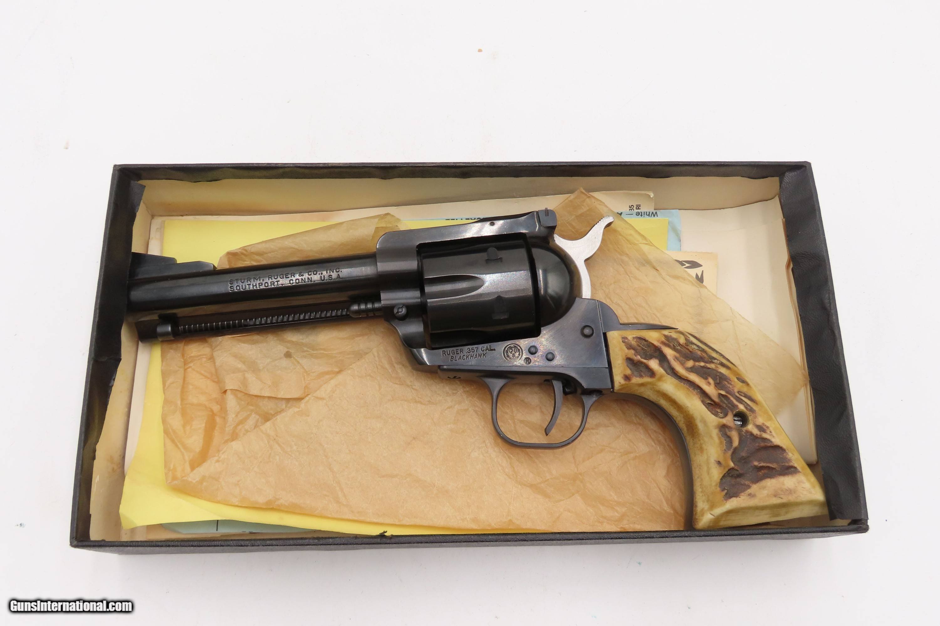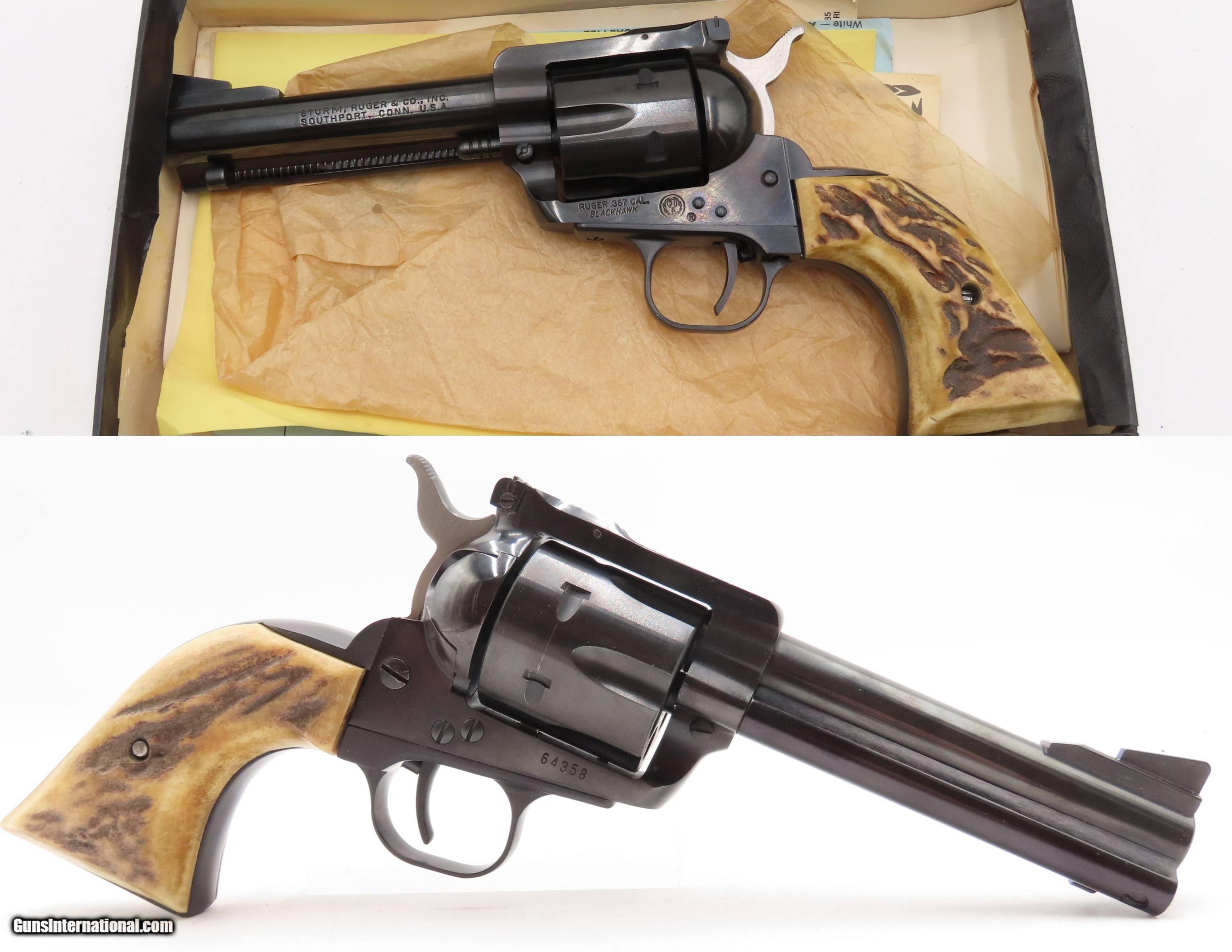MATCHING Factory Boxed RUGER BLACKHAWK .357 MAGNUM Six-Shot Revolver C& Desirable “THREE-SCREW” Design with STAG GRIPS