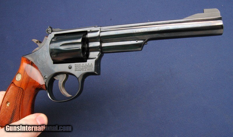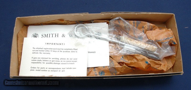 Description: Absolutely mint, owner says he never shot it from new. No sign of same on front of the cylinder. No blue wear, minimal partial turn line. Grips perfect with sharp checkering. Includes the excellent condition original numbered box with all paperwork, wax paper and cleaning kit. $40 shipping to the lower 48, 3% surcharge for using a CC. If you pay with a personal check, you can expect us to hold the item for up to 10 days to ensure that the check clears. SOLD Handgun Caliber: .357 Magnum |