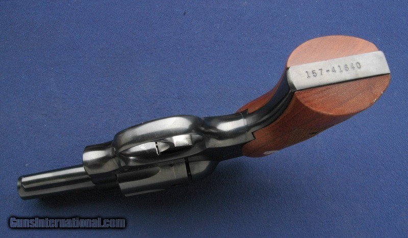 Description: In collector condition, this Security Six has the desirable short 2 3/4" barrel, deep blue finish and walnut grips. It has been fired 50 rounds, and has a very slight turn line. It comes in it's original box with the manual and numbered outer box. Spotless clean and functions perfectly. This is a really nice gun that is rarely found in this condition. Serial number goes back to 1981. An excellent handgun to use, carry or collect, in top condition. $35 shipping to the lower 48, 3% surcharge for using a CC. If you pay with a personal check, you can expect us to hold the item for up to 10 days to ensure that the check clears. SOLD Handgun Caliber: .357 Magnum |