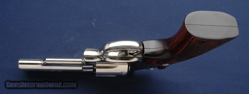 Description: Very nice S&W 19-6 nickel gun with fancy S&W laminate grips, mint bore and cylinders, tight lock up, smooth face combat trigger, 4" barrel. Tiny bit of flaking around 1 flute on the cylinder. Will make a great shooter and a carry classic in the right retro holster. Note- owner came in today and removed the Wood grips that were on it for these pics, replaced them with Pachmayr Gripper rubber finger groove grips. $35 shipping to the lower 48, 3% surcharge for using a CC. If you choose to pay with a personal check, we will hold the item for up to 10 days to make sure that it clears. Please expedite such pymts as we will hold an item on your word for 5 days. SOLD |