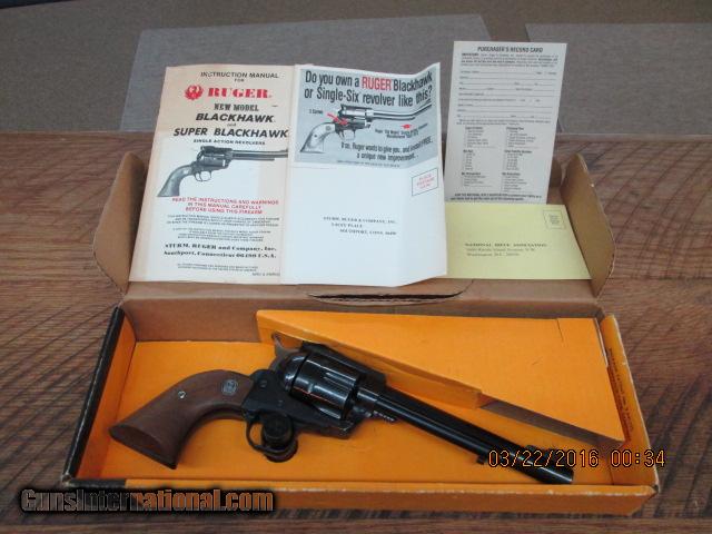 Description: RUGER BLACKHAWK 357 CAL NEW MODEL MFG. 1980 BLUED 6 INCH COLD FORGED BARREL CAPACITY: 6 ACTION: SAO WALNUT GRIP WITH LOGO RAMPED FRONT SIGHT AND ADJUSTABLE REAR SIGHT. 99% Shipping IS 40 DOLLARS: ALL CHECKS TAKE TEN DAYS TO CLEAR AND MONEY ORDERS TAKE 5 DAYS. ANY QUESTIONS CALL DANNY (828)698-8804 GOD BLESS SOLD Manufacturer: RUGER Model: 357 BLACK HAWK Serial Number: 35-546XX |