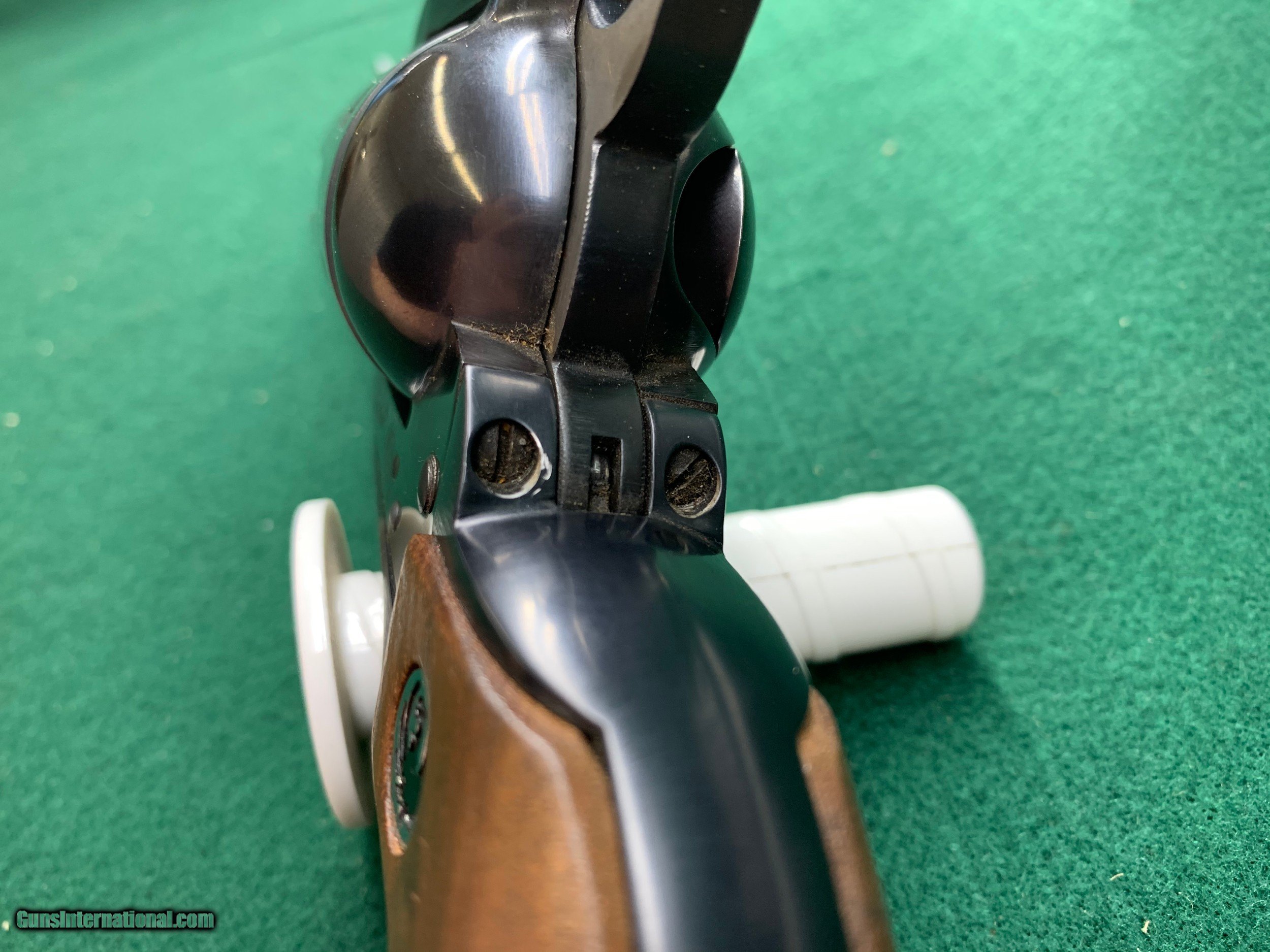 Description: Ruger Blackhawk .357 mag 3 Screw manufactured in 1967. Revolver is in excellent shape. Has little to no wear overall. Very light holster wear on end of barrel. Small cylinder rotation showen. Few small small scratches in wood grips. Overall this gun is in excellent shape with original bluing. Item is for sale in store as well as online. For any questions or concerns feel free to contact us at 417-778-7153 or by email altonautopartsgmail. Detailed pictures listed below. SOLD Manufacturer: Ruger Model: Blackhawk Serial Number: 92137 Caliber Info: .357mag Sights: Adjustable Manufacture Date: 1967 Item Location: Alton, mo |