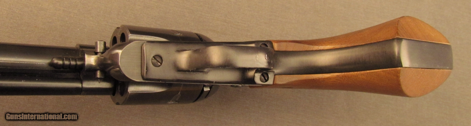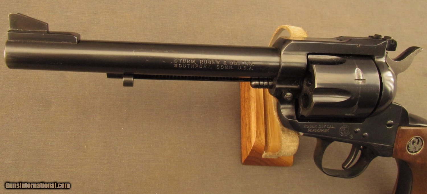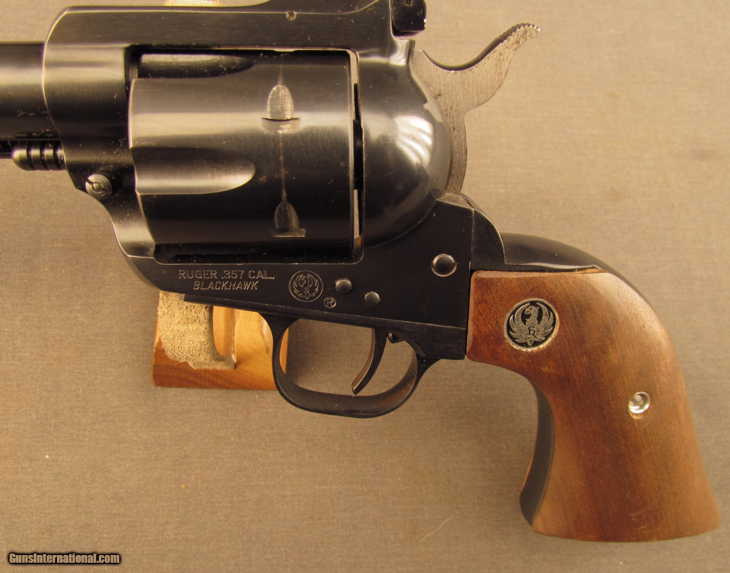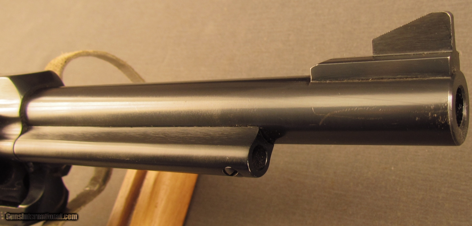 Description: S# 31-10859, 357 magnum , 6 1/2 inch barrel, bright excellent bore. This 1972 manufactured revolver remains in excellent condition with 90% blue showing a few light scratches and typical high edge wear from use. Hammer sides show some light staining and bottom of trigger guard show a few dings. Wood grips show a few minor dings and light wear. The transfer bar safety is installed, gun times perfectly and locks up well. An excellent Blackhawk 357 with no barrel warning. FFL SOLD Manufacturer: Ruger Model: Blackhawk Serial Number: 31-10859 Caliber Info: .357 Mag Gauge Info: .357 Mag |
