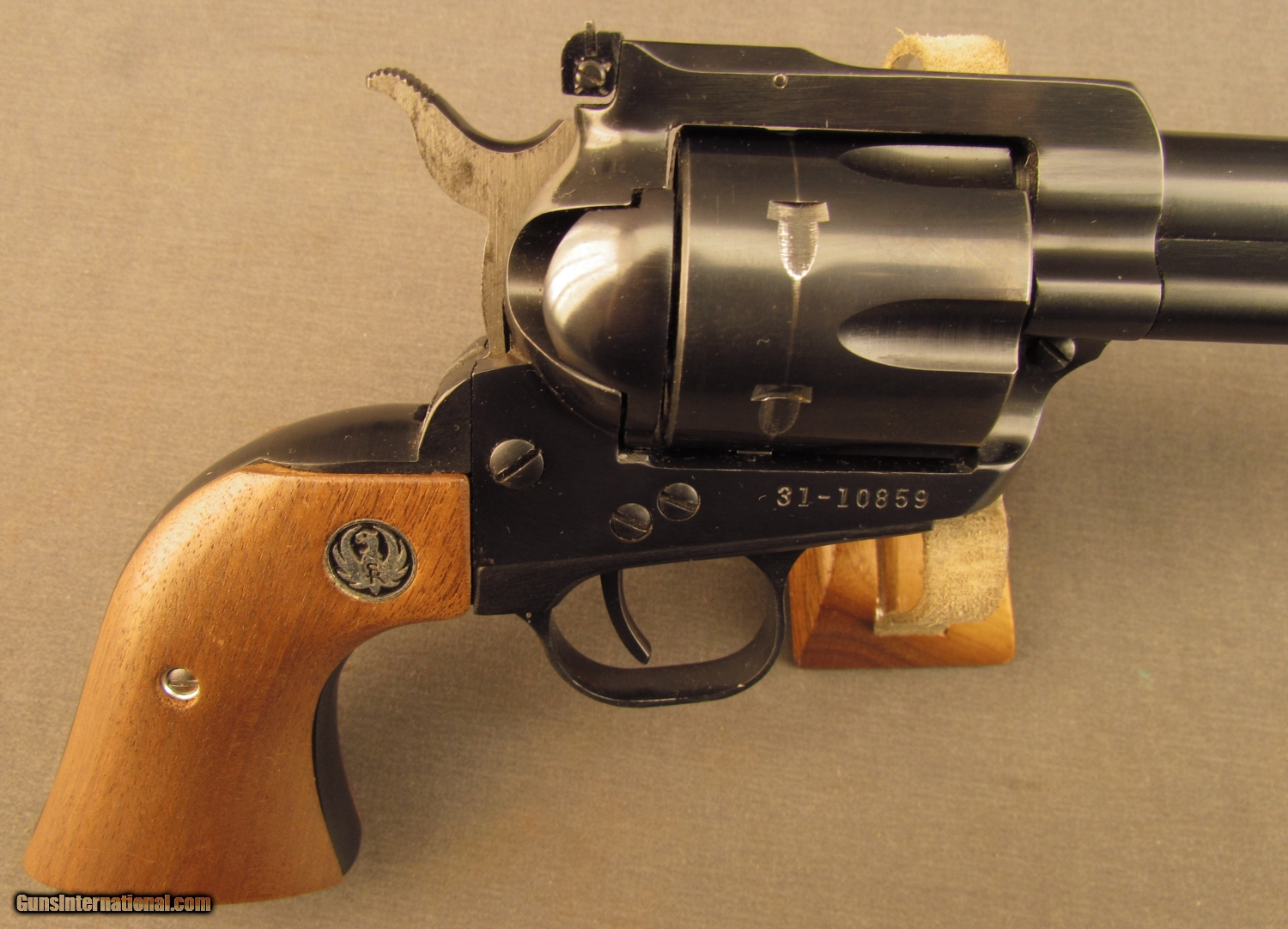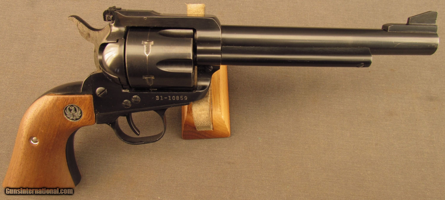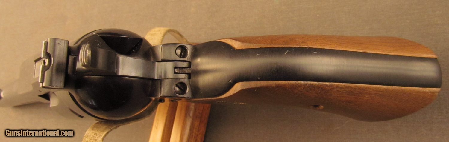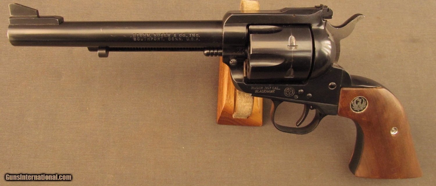 Description: S# 31-10859, 357 magnum , 6 1/2 inch barrel, bright excellent bore. This 1972 manufactured revolver remains in excellent condition with 90% blue showing a few light scratches and typical high edge wear from use. Hammer sides show some light staining and bottom of trigger guard show a few dings. Wood grips show a few minor dings and light wear. The transfer bar safety is installed, gun times perfectly and locks up well. An excellent Blackhawk 357 with no barrel warning. FFL SOLD Manufacturer: Ruger Model: Blackhawk Serial Number: 31-10859 Caliber Info: .357 Mag Gauge Info: .357 Mag |